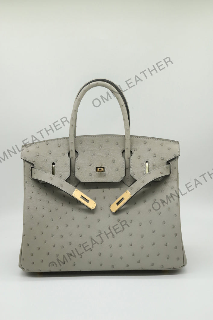 London 30 Birkin Style Ostrich Leather Grey Color Gold Hardware