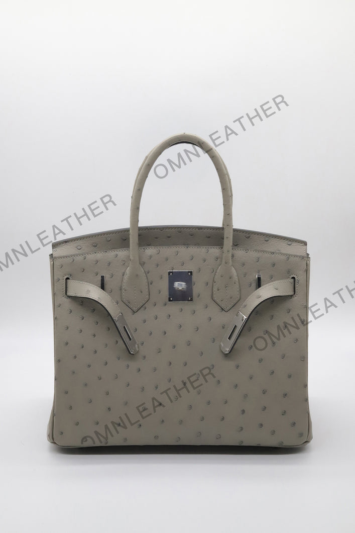 London 30 Birkin Style Ostrich Leather Grey Color Silver Hardware