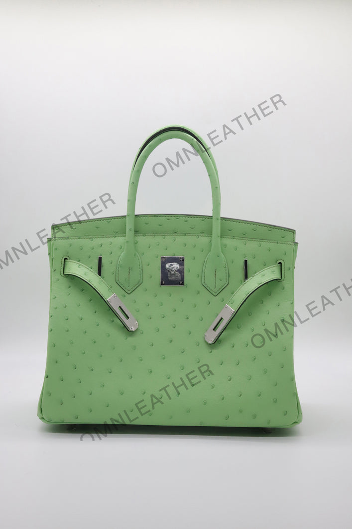 London 30 Birkin Style Ostrich Leather Green Color Silver Hardware