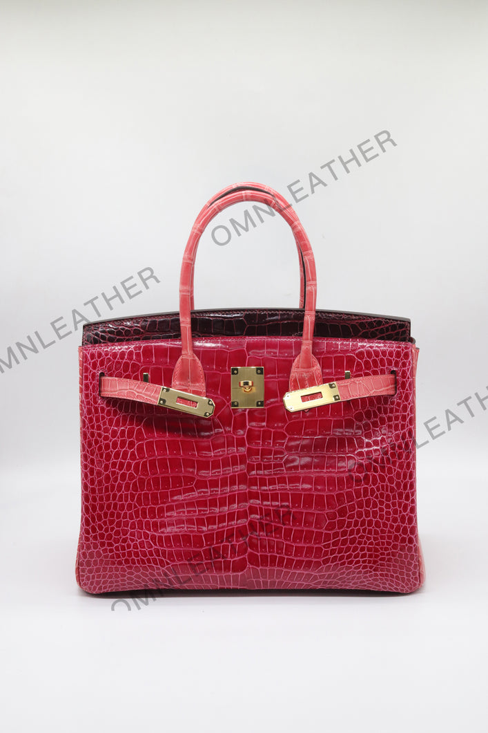 London 30 Birkin Style HCP Saltwater Croc Leather Glossy Red Mix Color Gold Hardware
