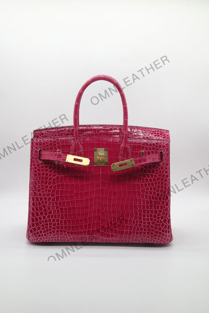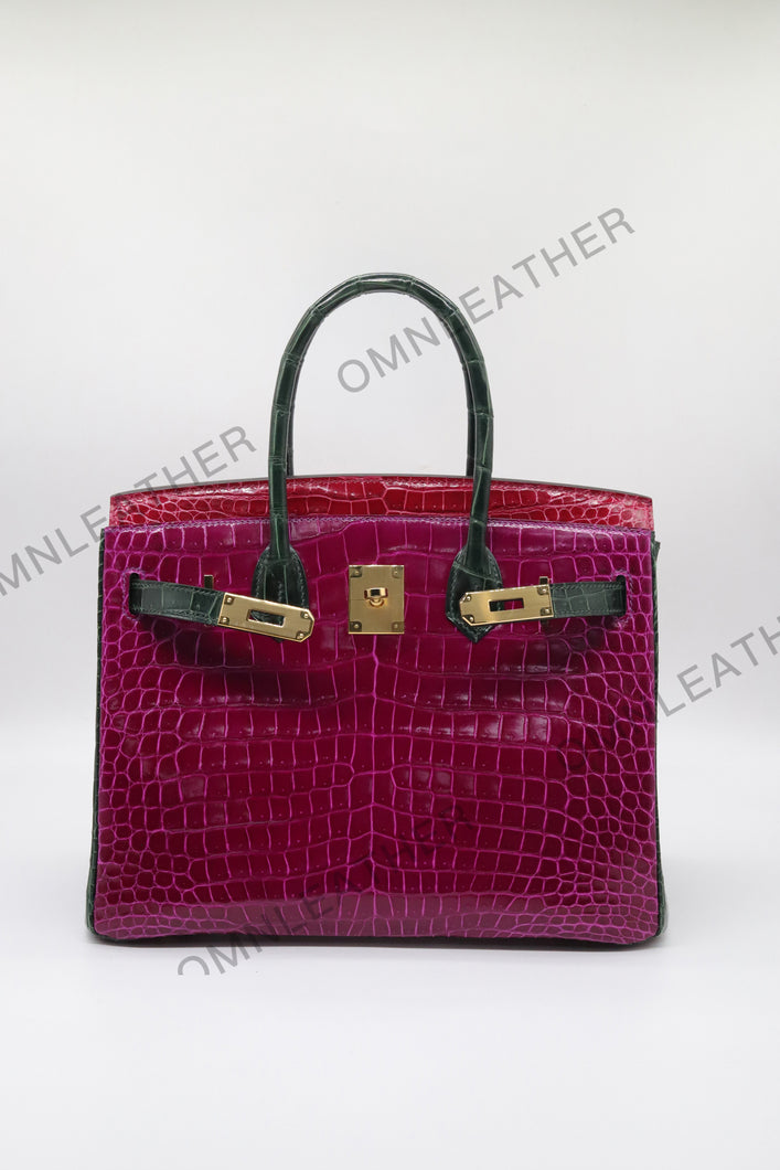 London 30 Birkin Style HCP Saltwater Croc Leather Glossy Purple Mix Color Gold Hardware