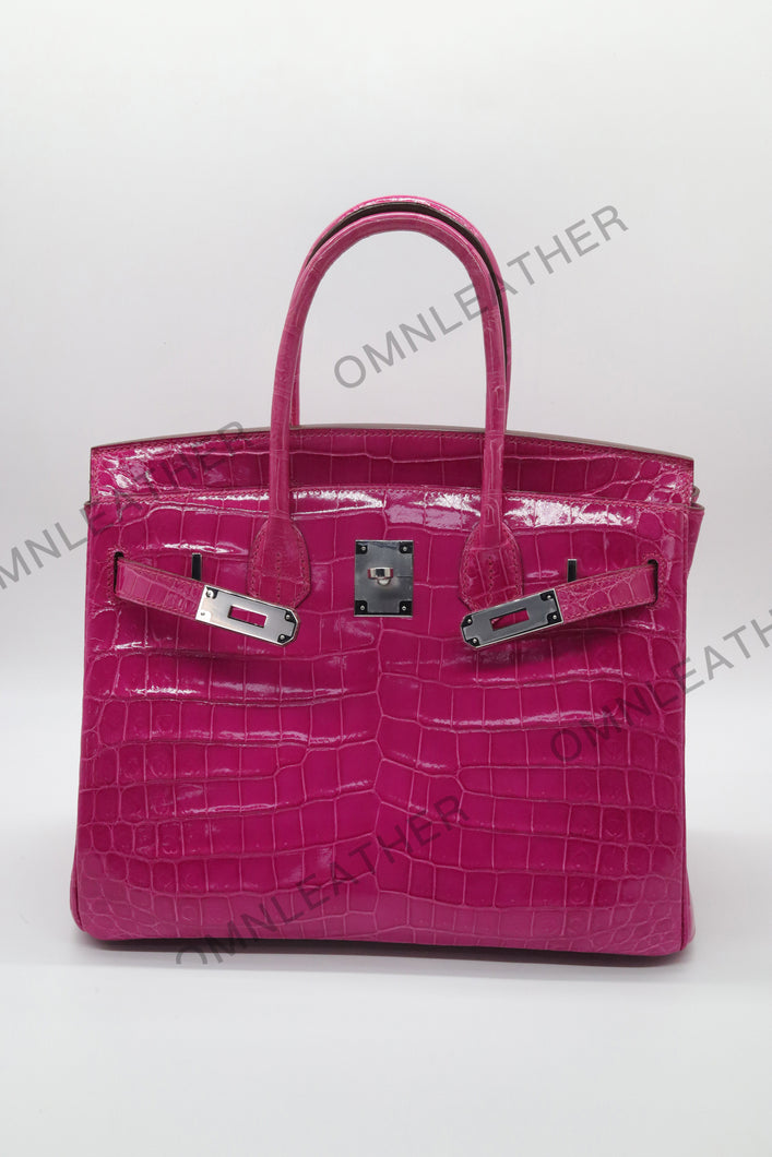 London 30 Birkin Style Nile Croc Leather Glossy Purple Color Silver Hardware