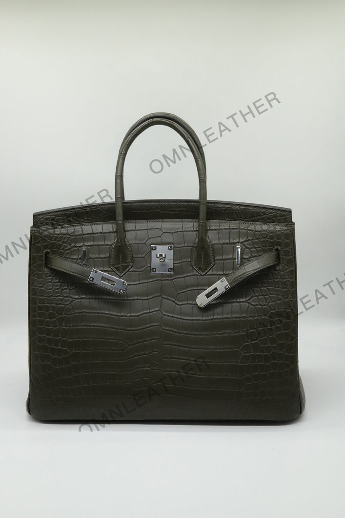 London 35 Birkin Style HCP Saltwater Croc Leather Opaque Olive Green Color Silver Hardware