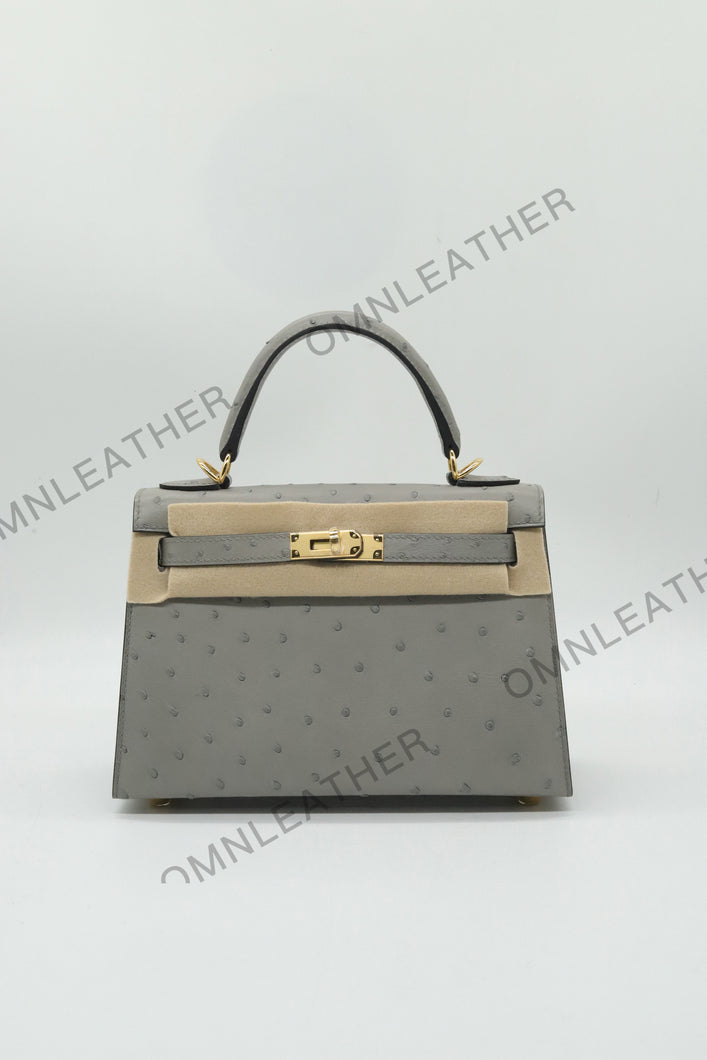 Verona 22 Kelly Style Ostrich Leather Grey Color Gold Hardware