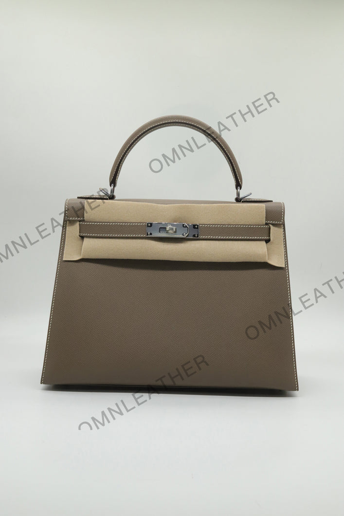 Verona 28 Kelly Style Fully Handmade Epsom Leather Etoupe Color Silver Hardware