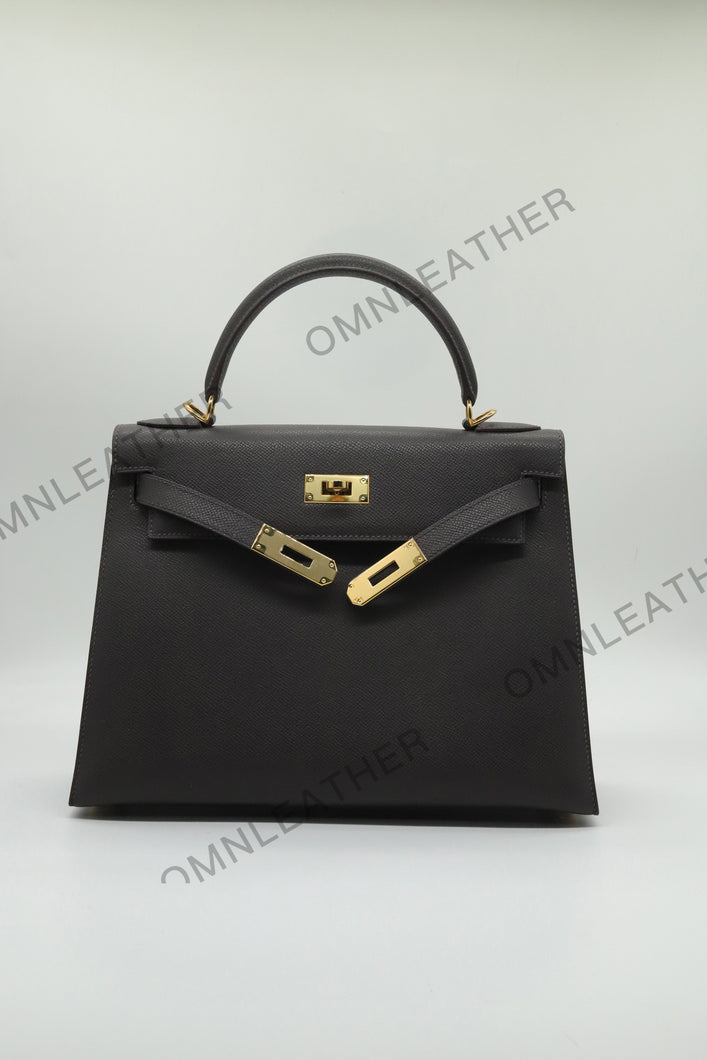 Verona 28 Kelly Style Fully Handmade Epsom Leather Ebony Color Gold Hardware