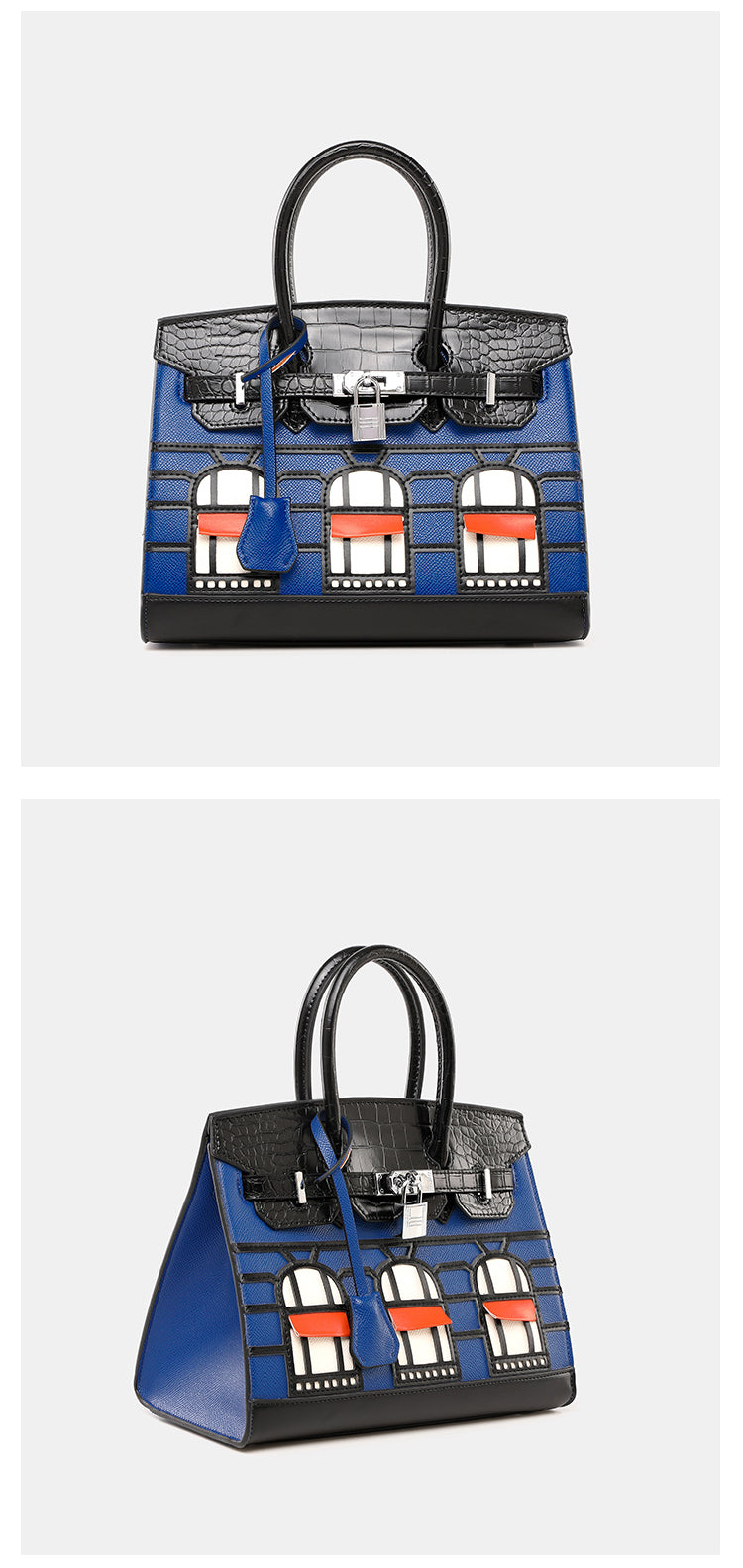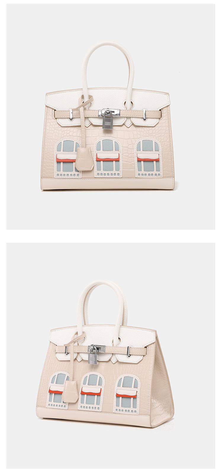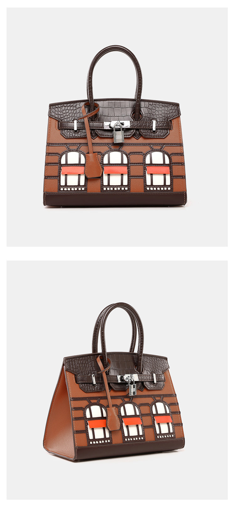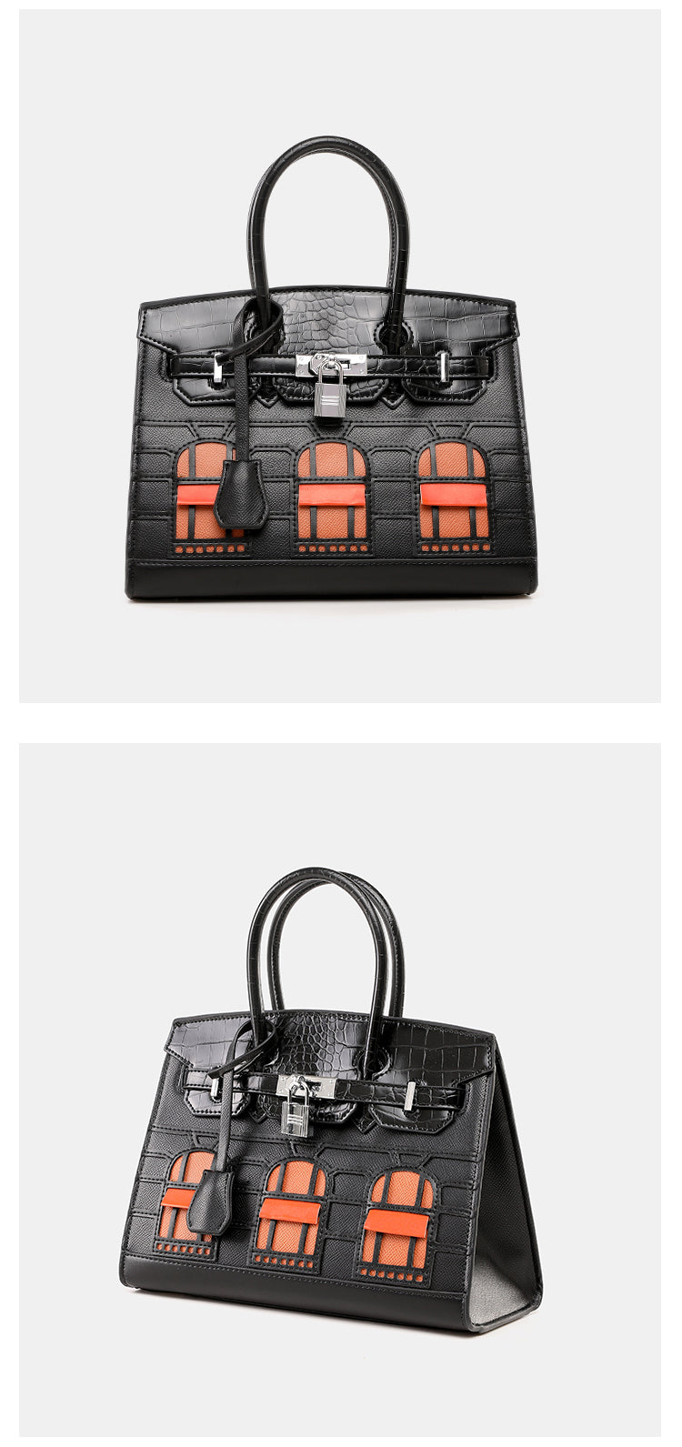 Classic style top handle bag housing effect with single flap, wrap through strap with lock, Attachable Shoulder Strap