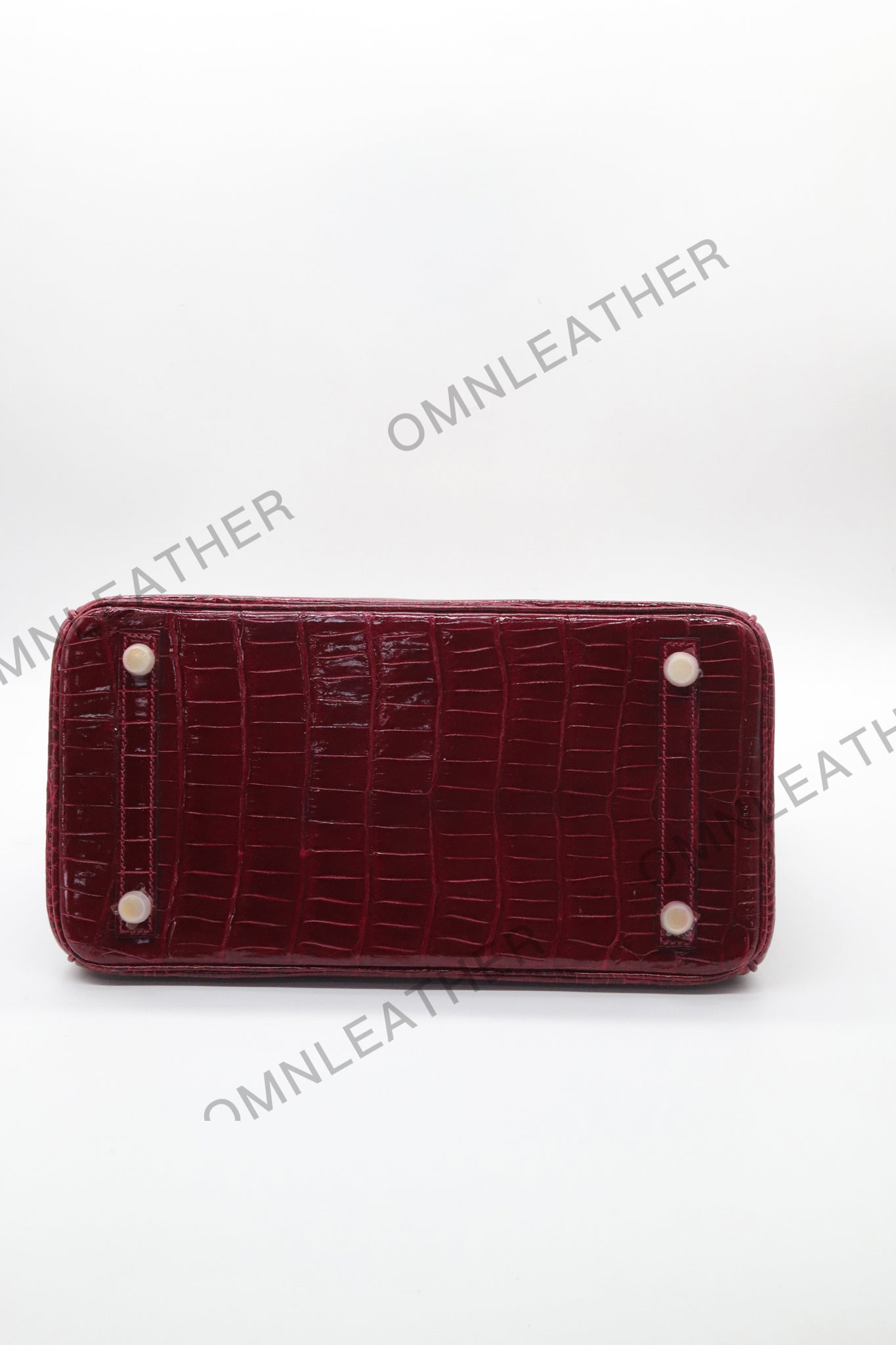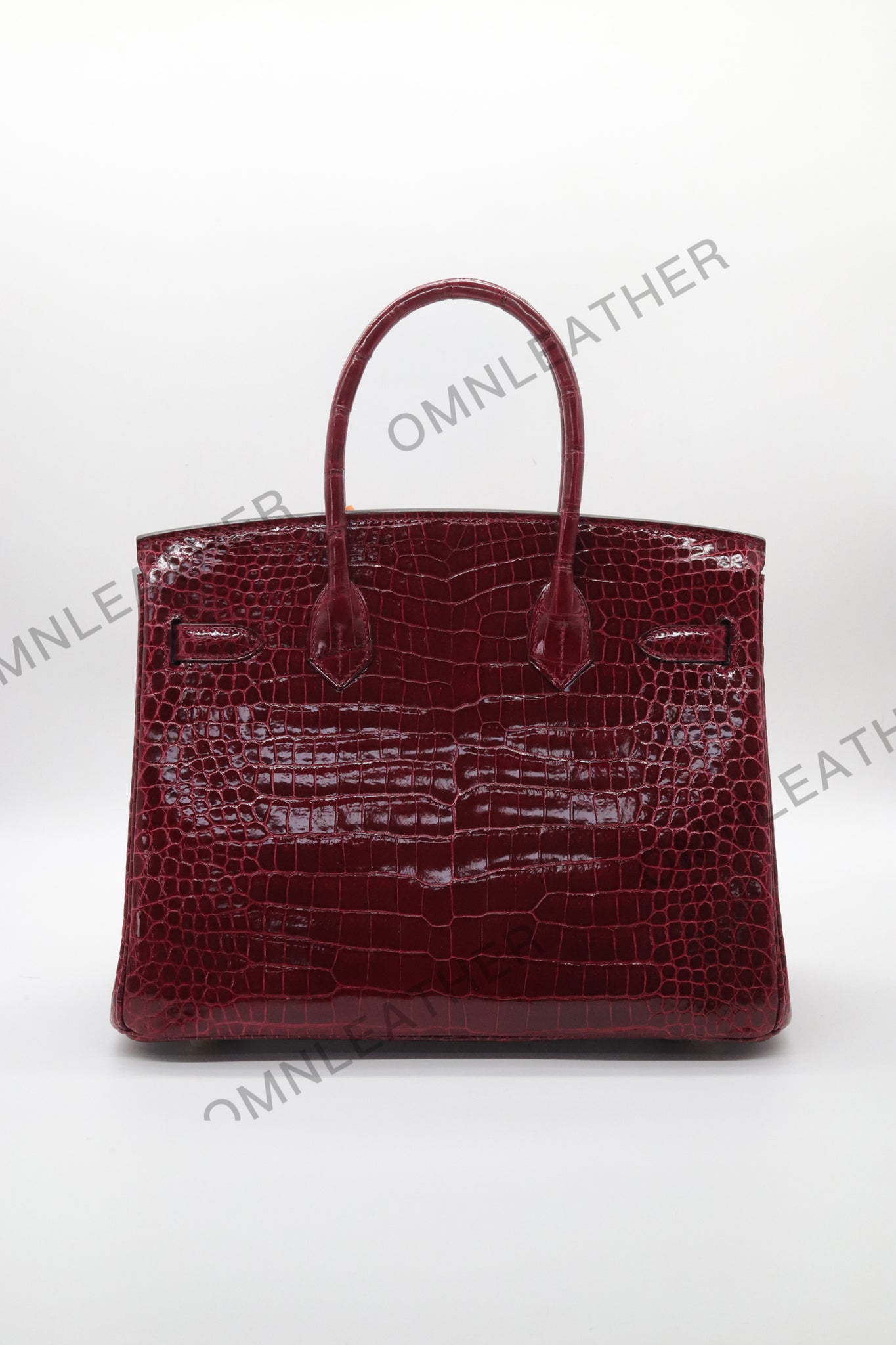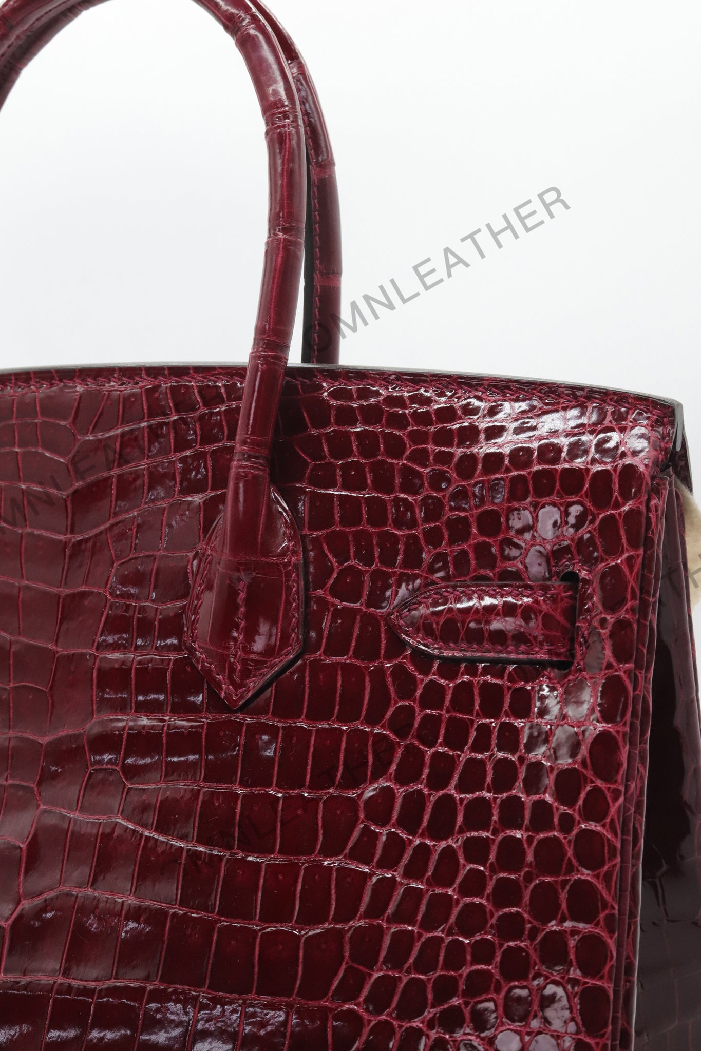 London 30 Birkin Style HCP Saltwater Croc Leather Glossy Burgundy Color Gold Hardware