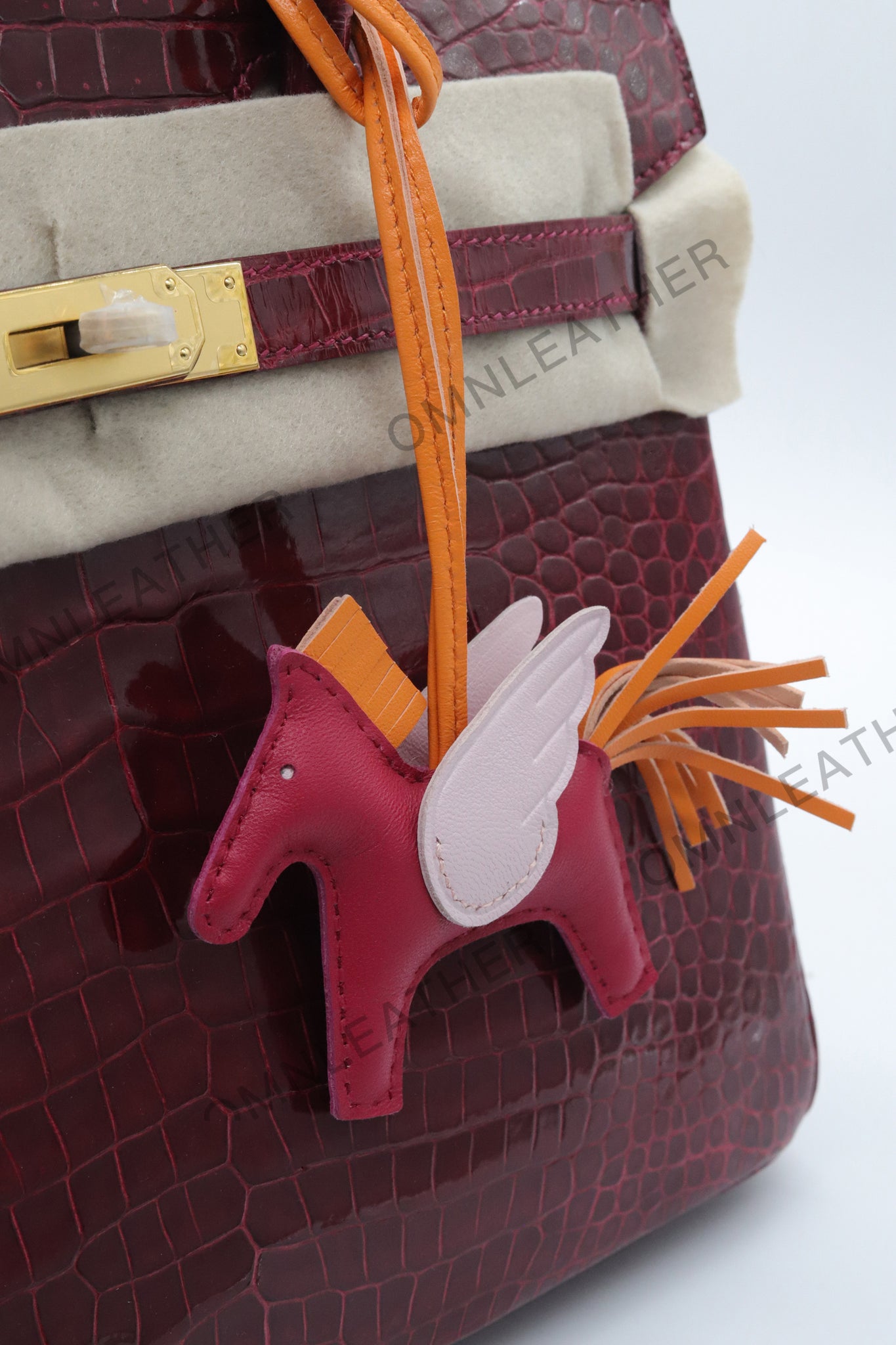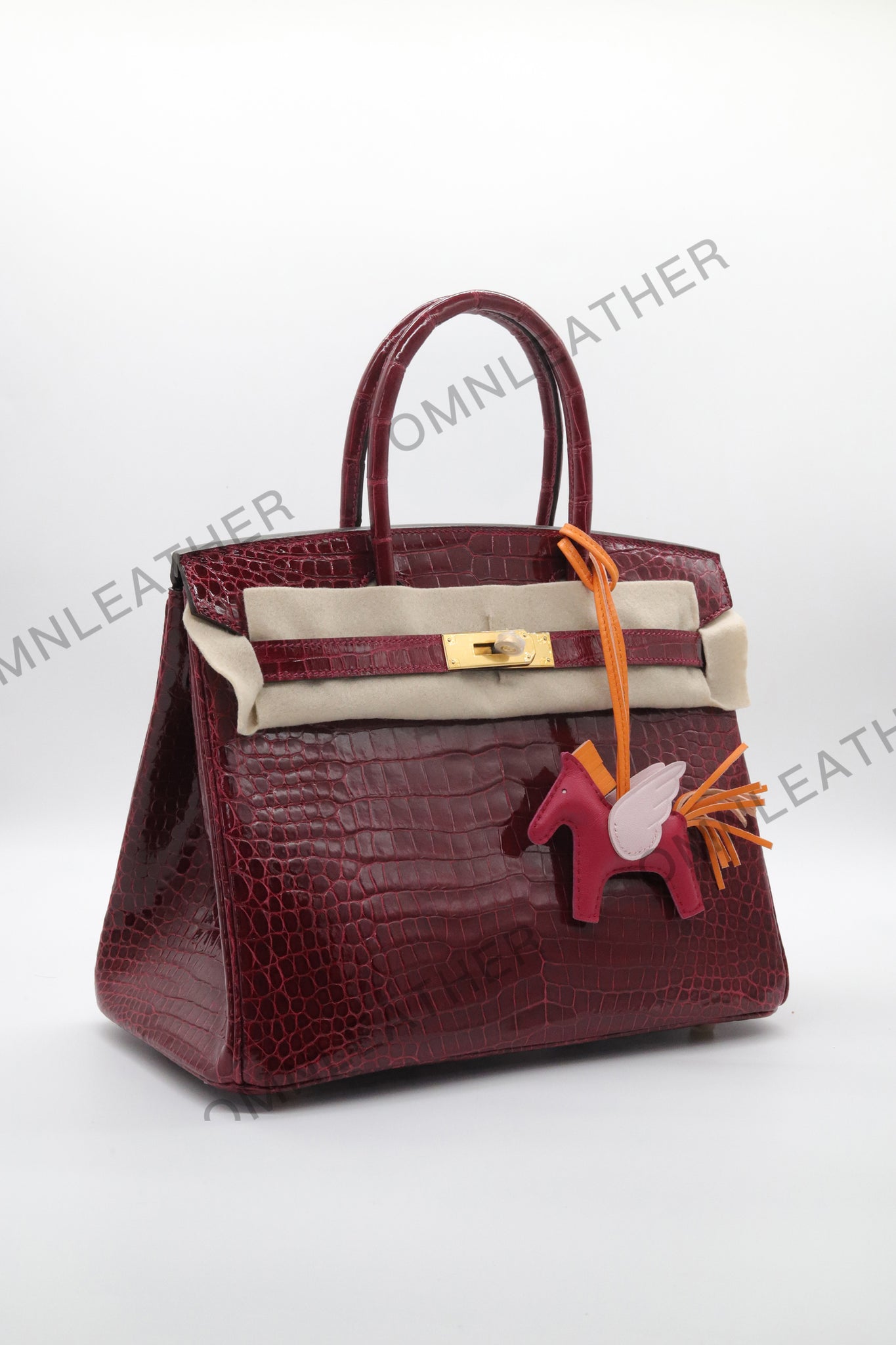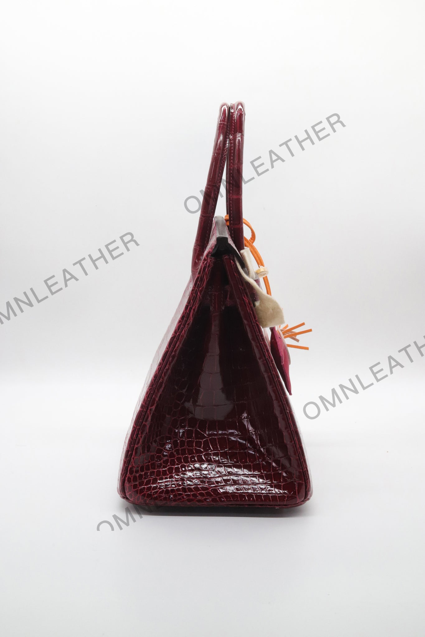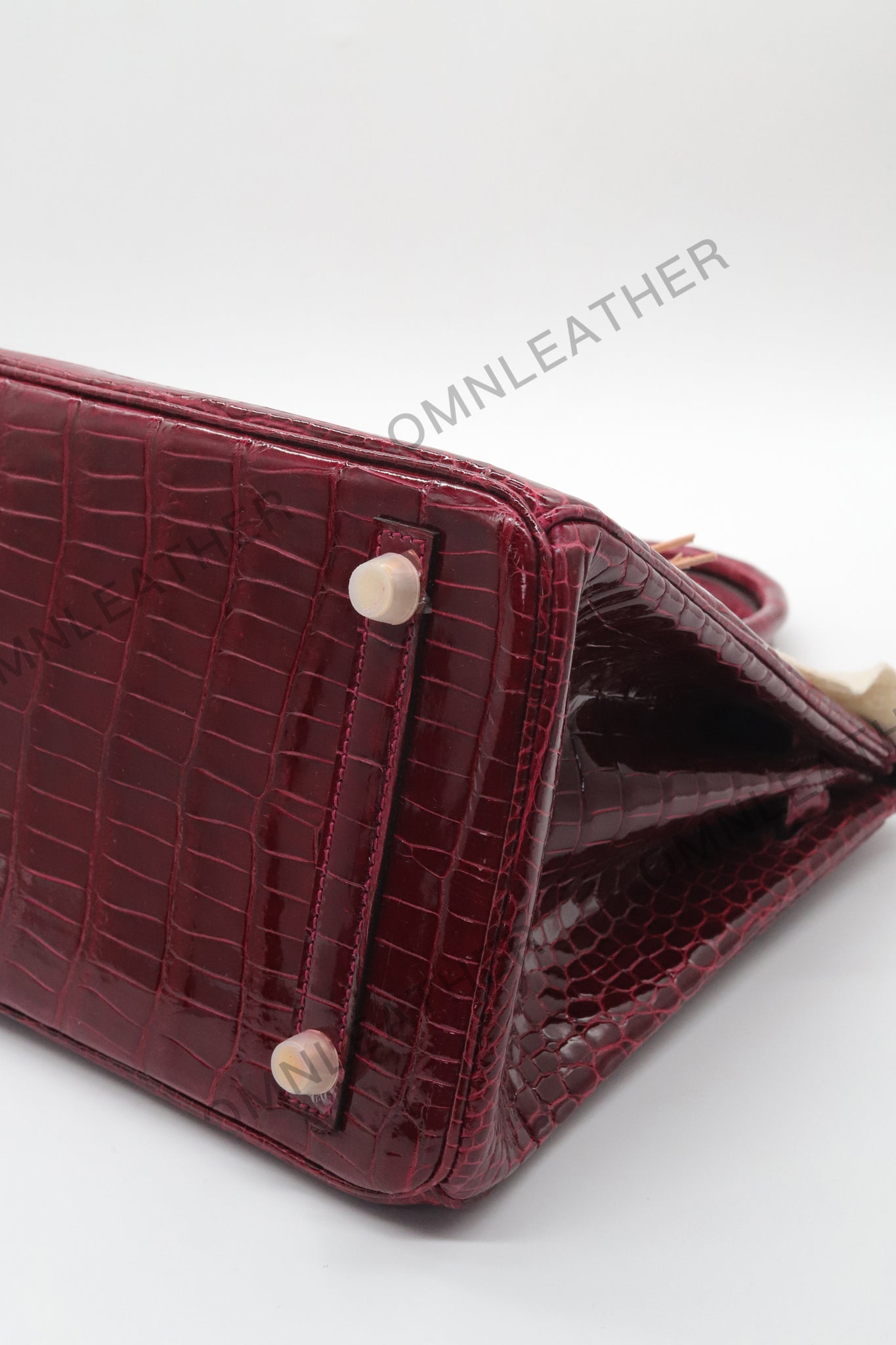 London 30 Birkin Style HCP Saltwater Croc Leather Glossy Burgundy Color Gold Hardware