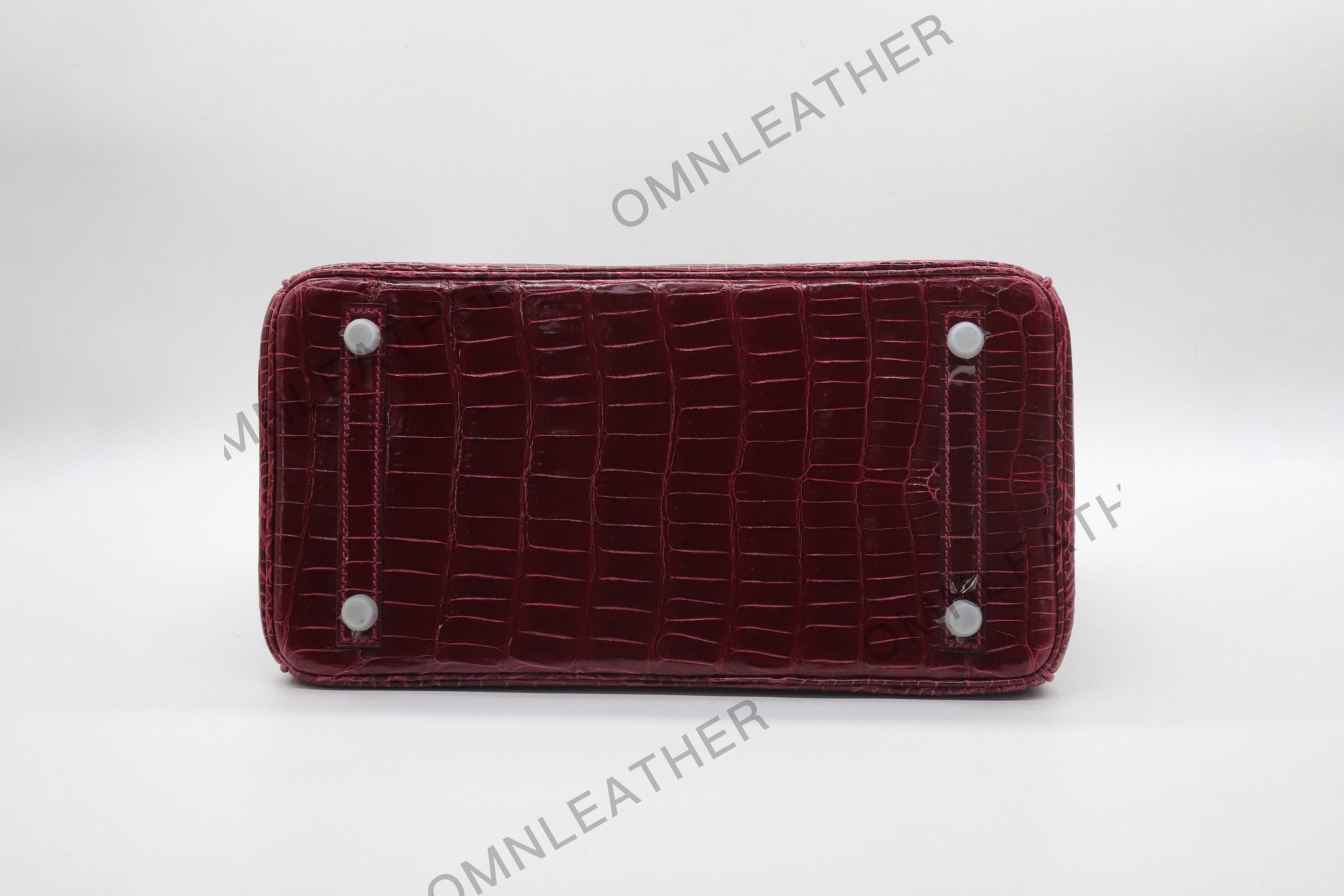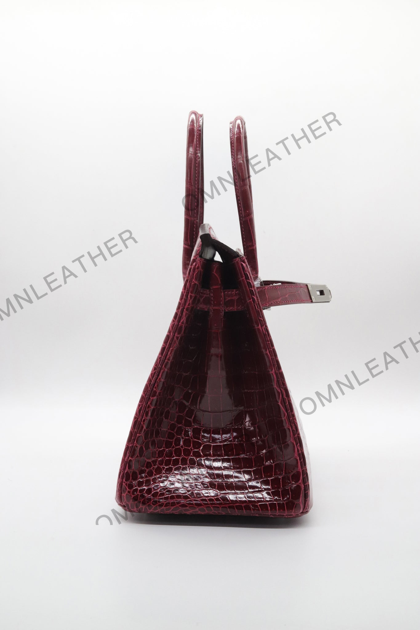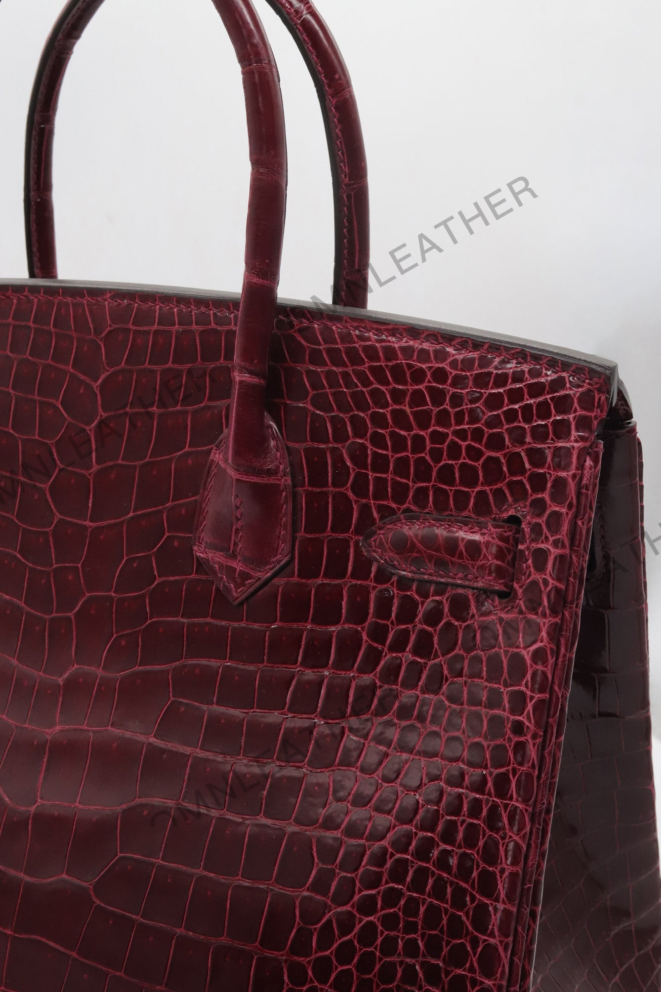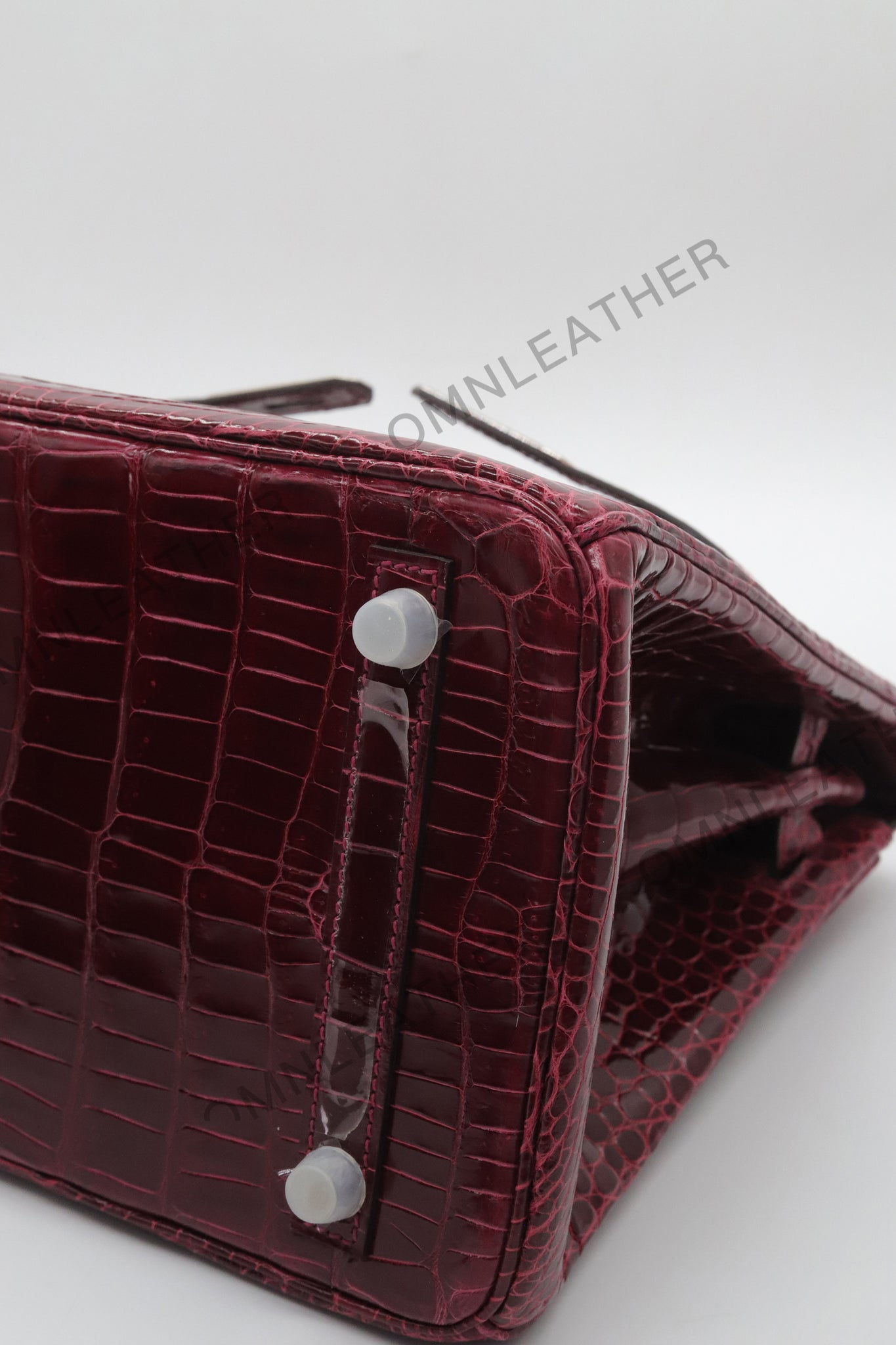 London 30 Birkin Style HCP Saltwater Croc Leather Glossy Burgundy Color Silver Hardware