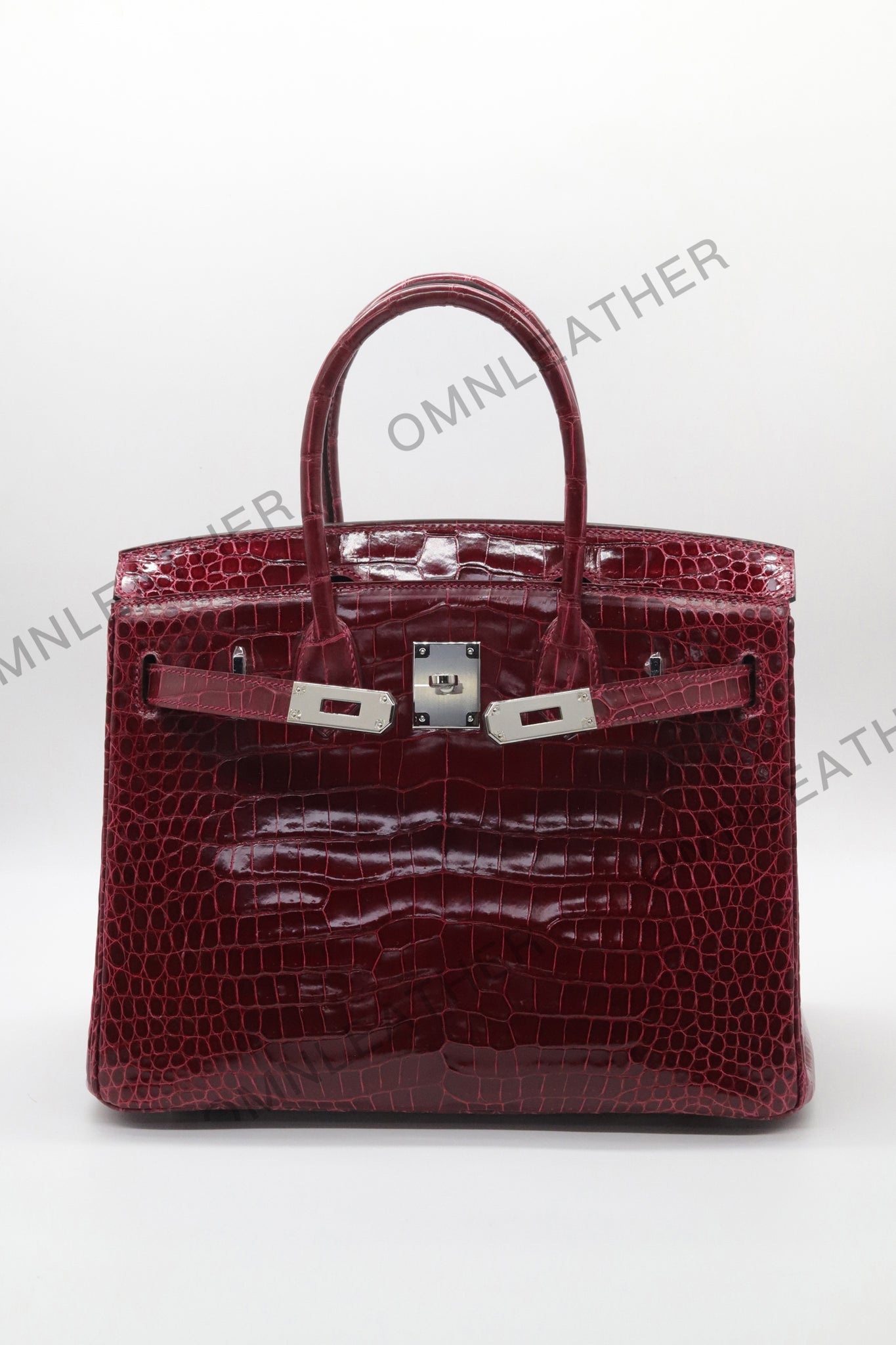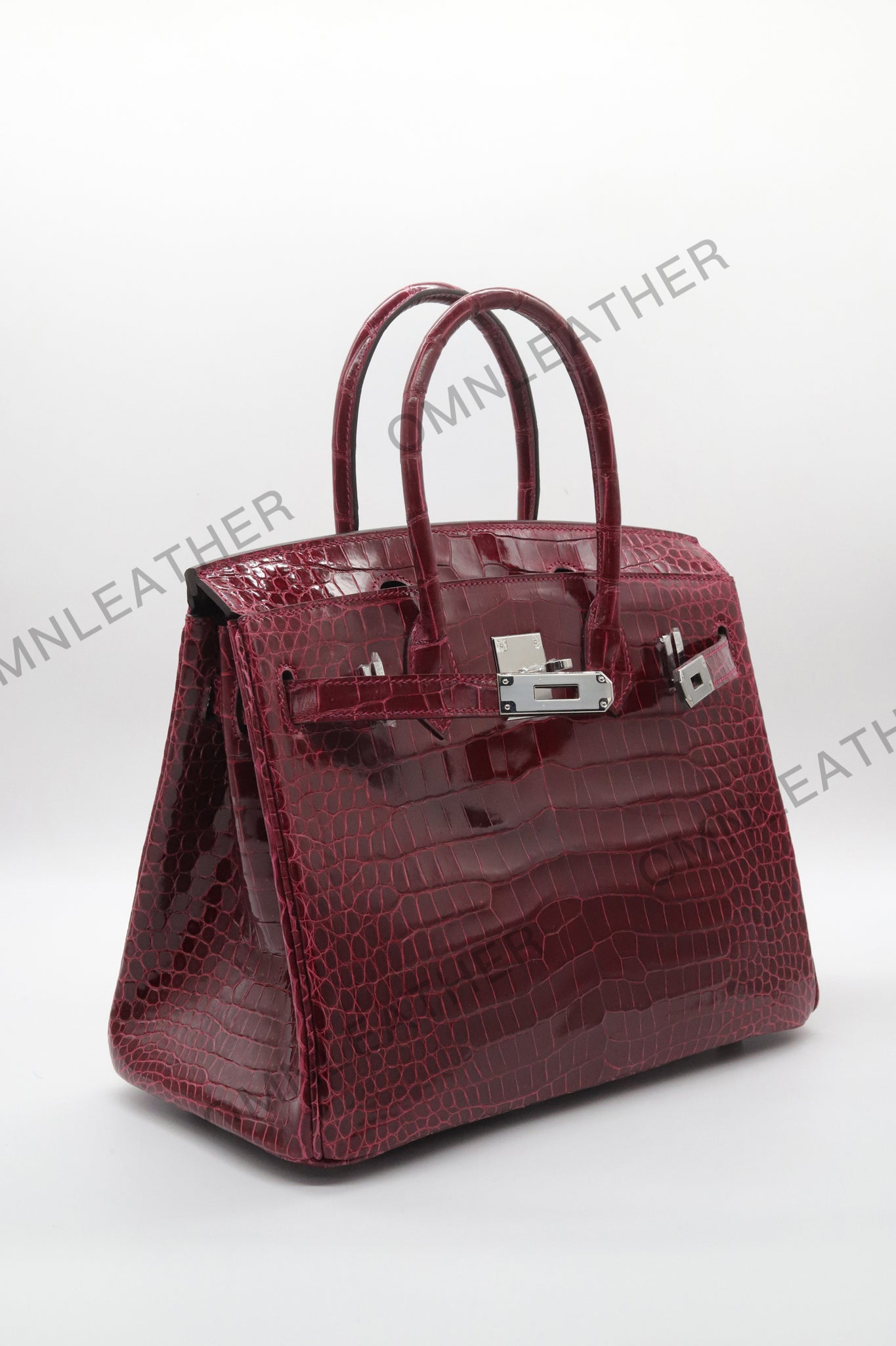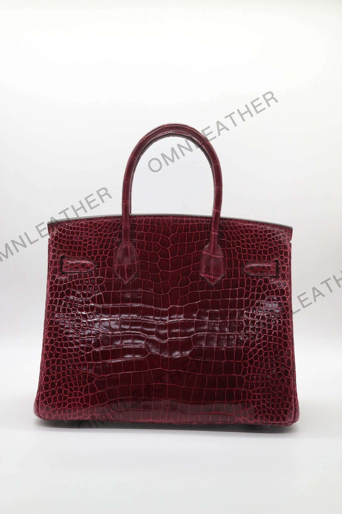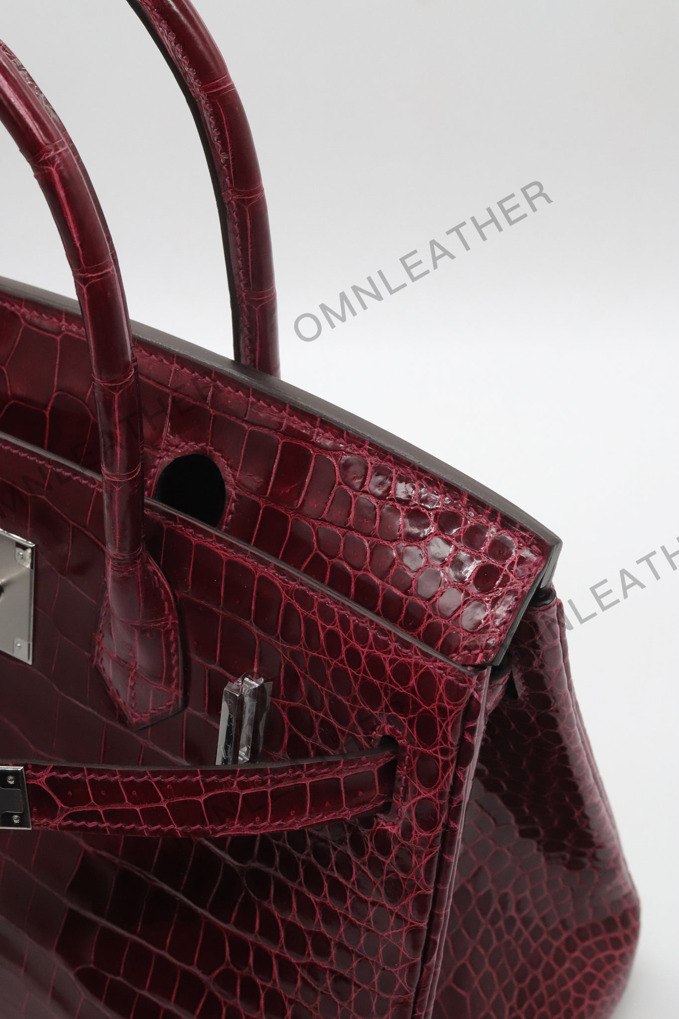 London 30 Birkin Style HCP Saltwater Croc Leather Glossy Burgundy Color Silver Hardware