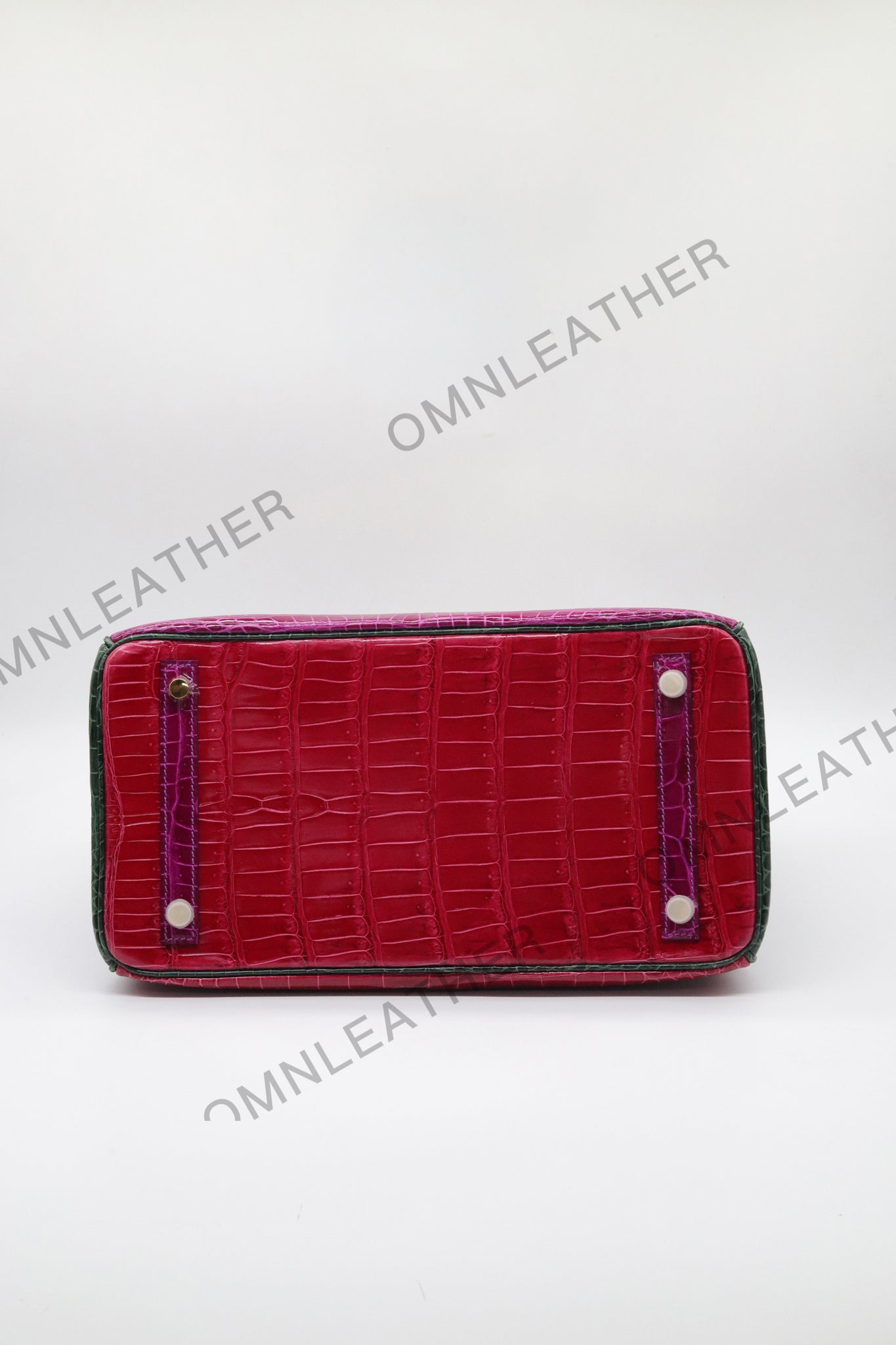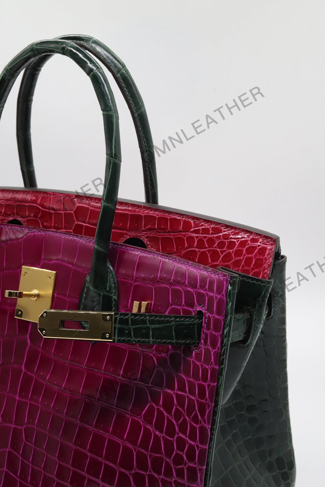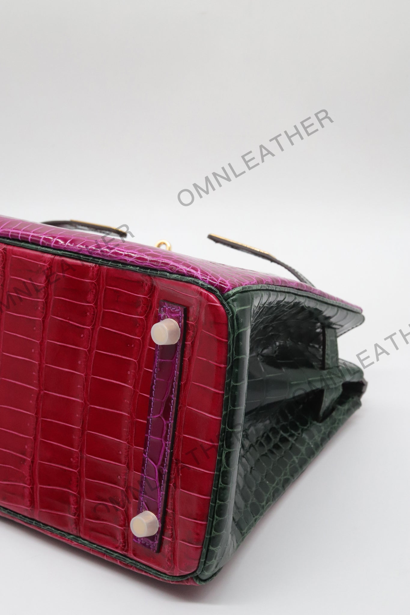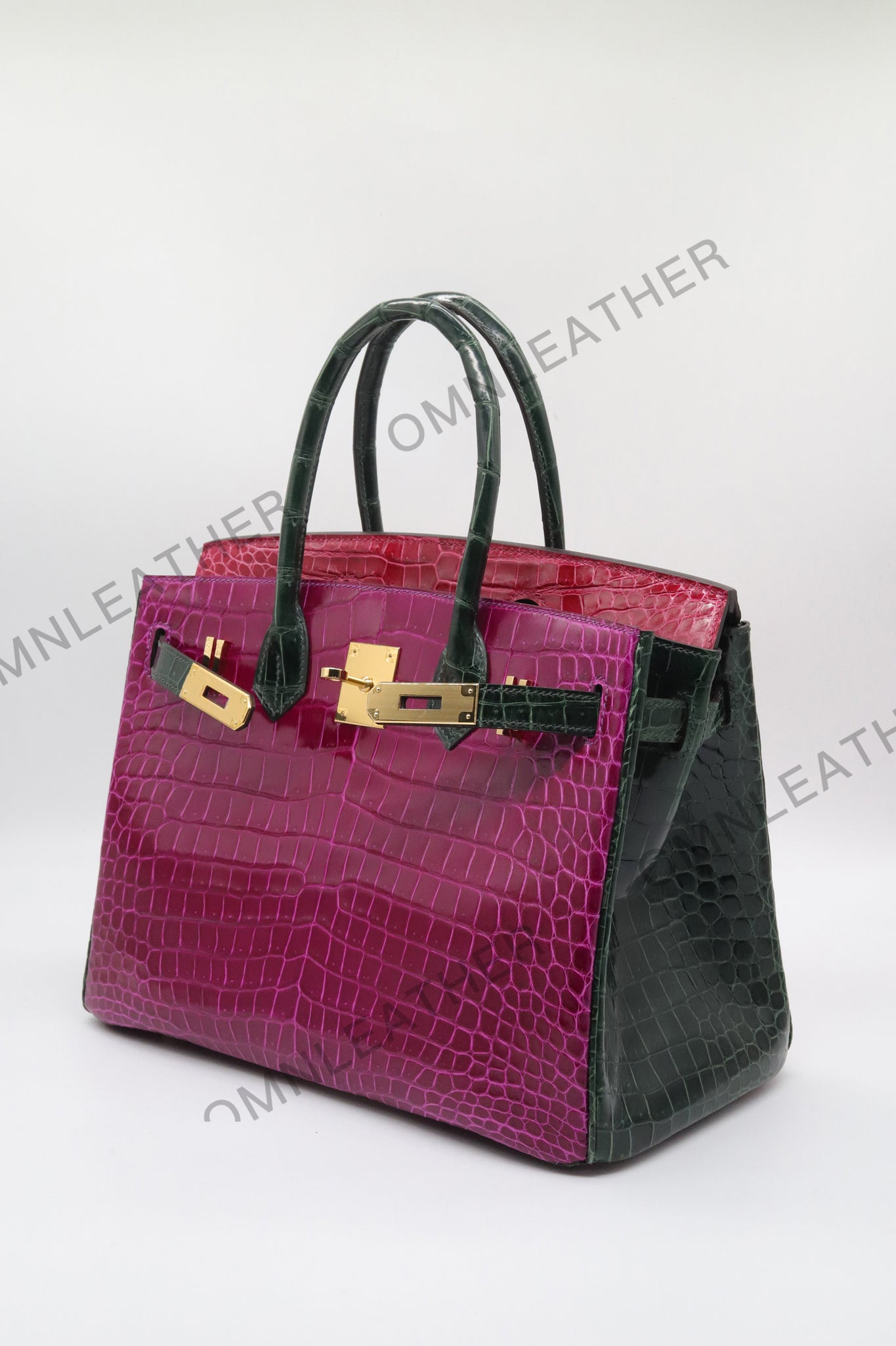 London 30 Birkin Style HCP Saltwater Croc Leather Glossy Purple Mix Color Gold Hardware