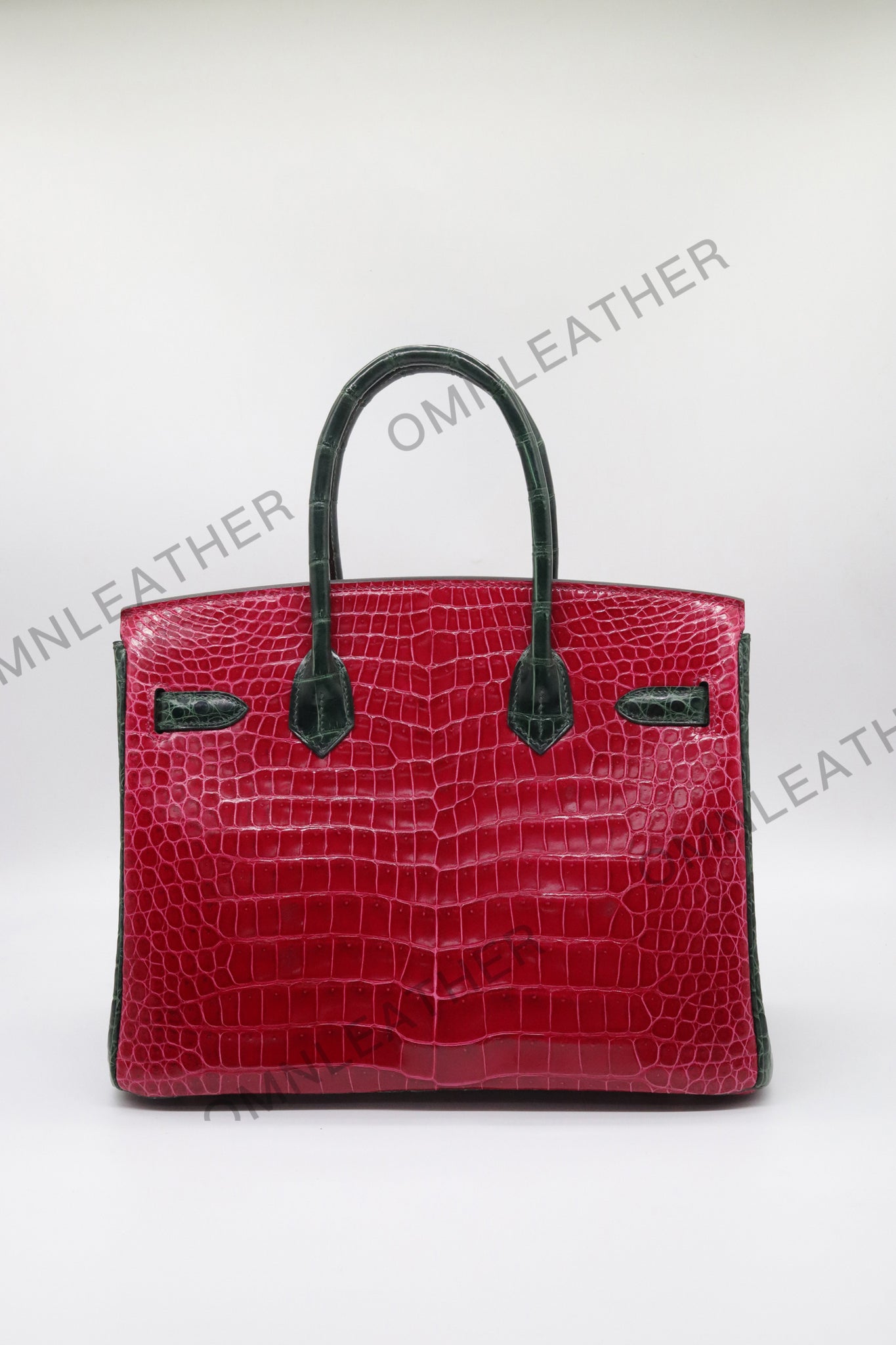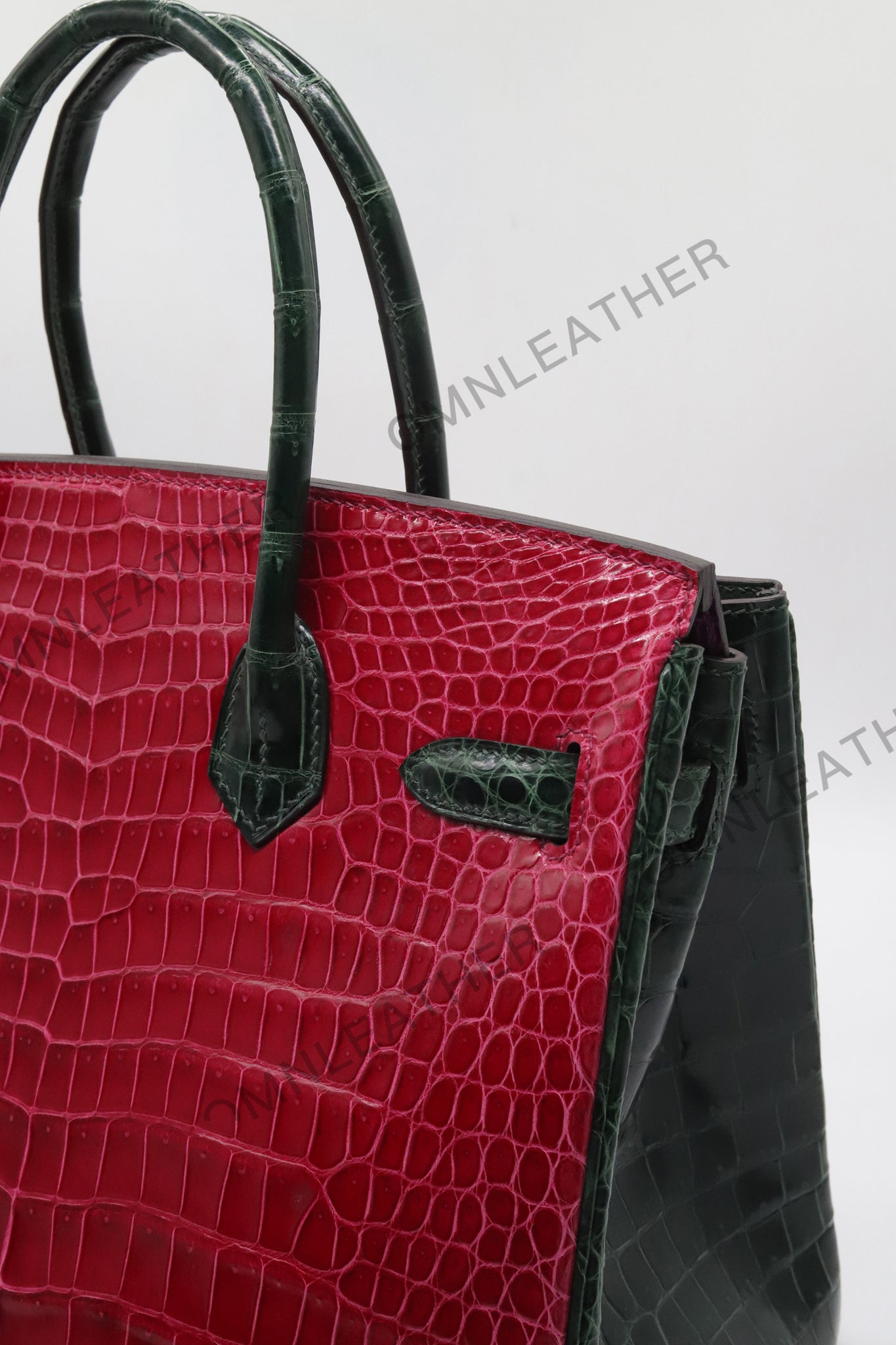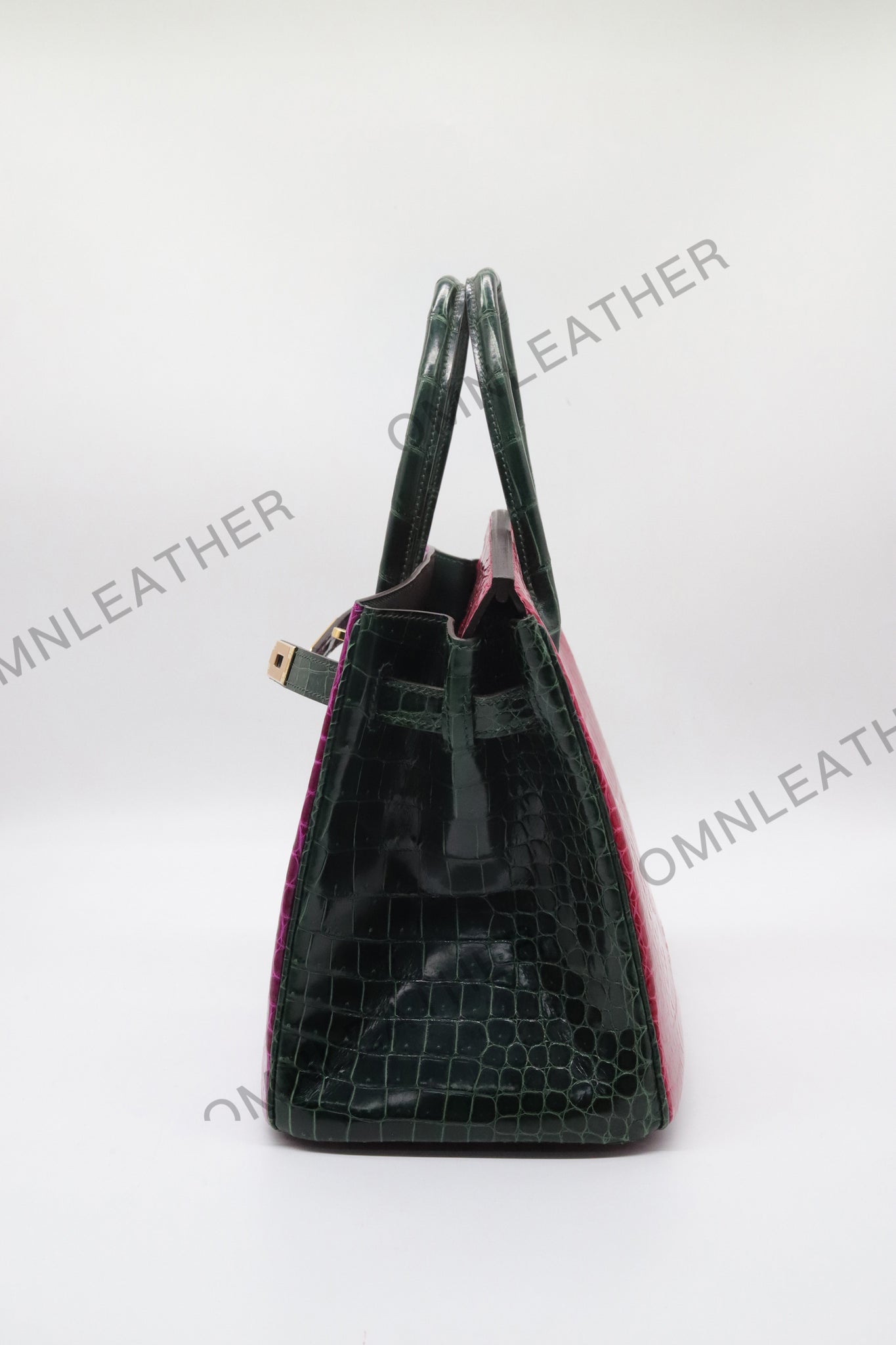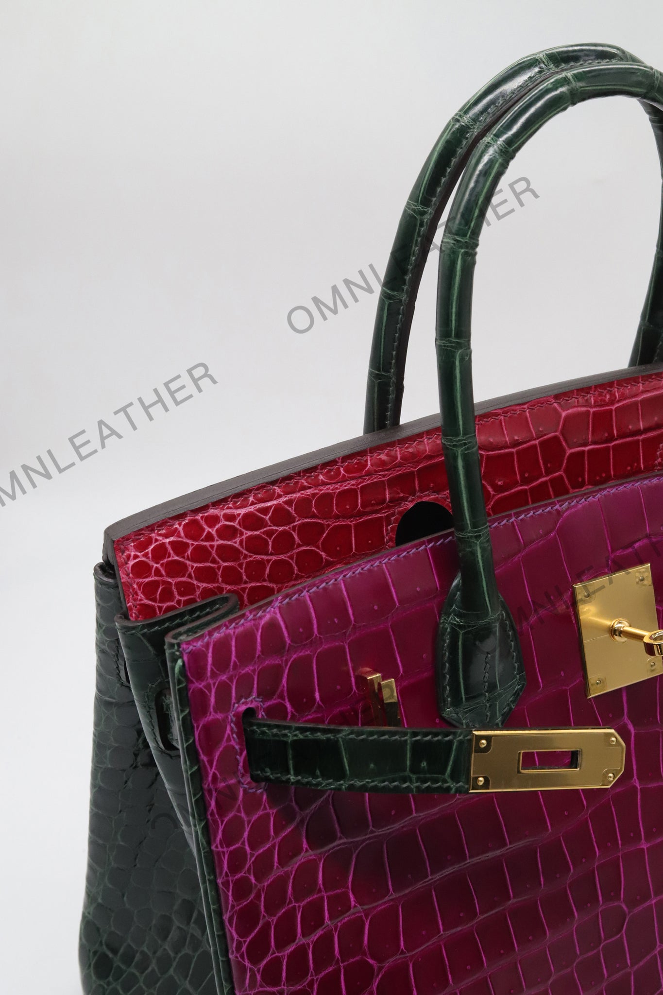 London 30 Birkin Style HCP Saltwater Croc Leather Glossy Purple Mix Color Gold Hardware