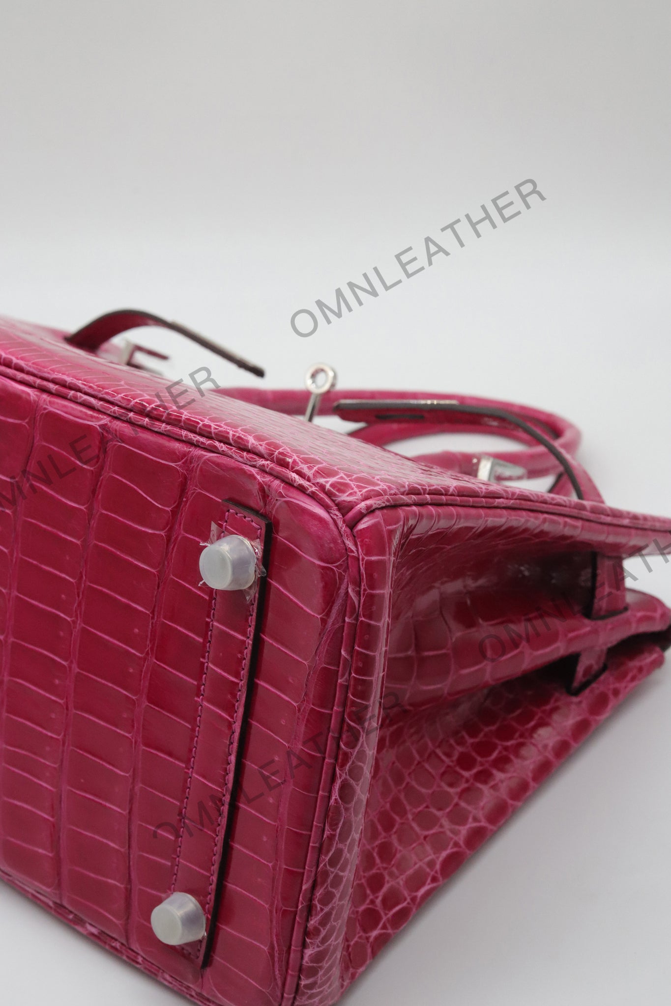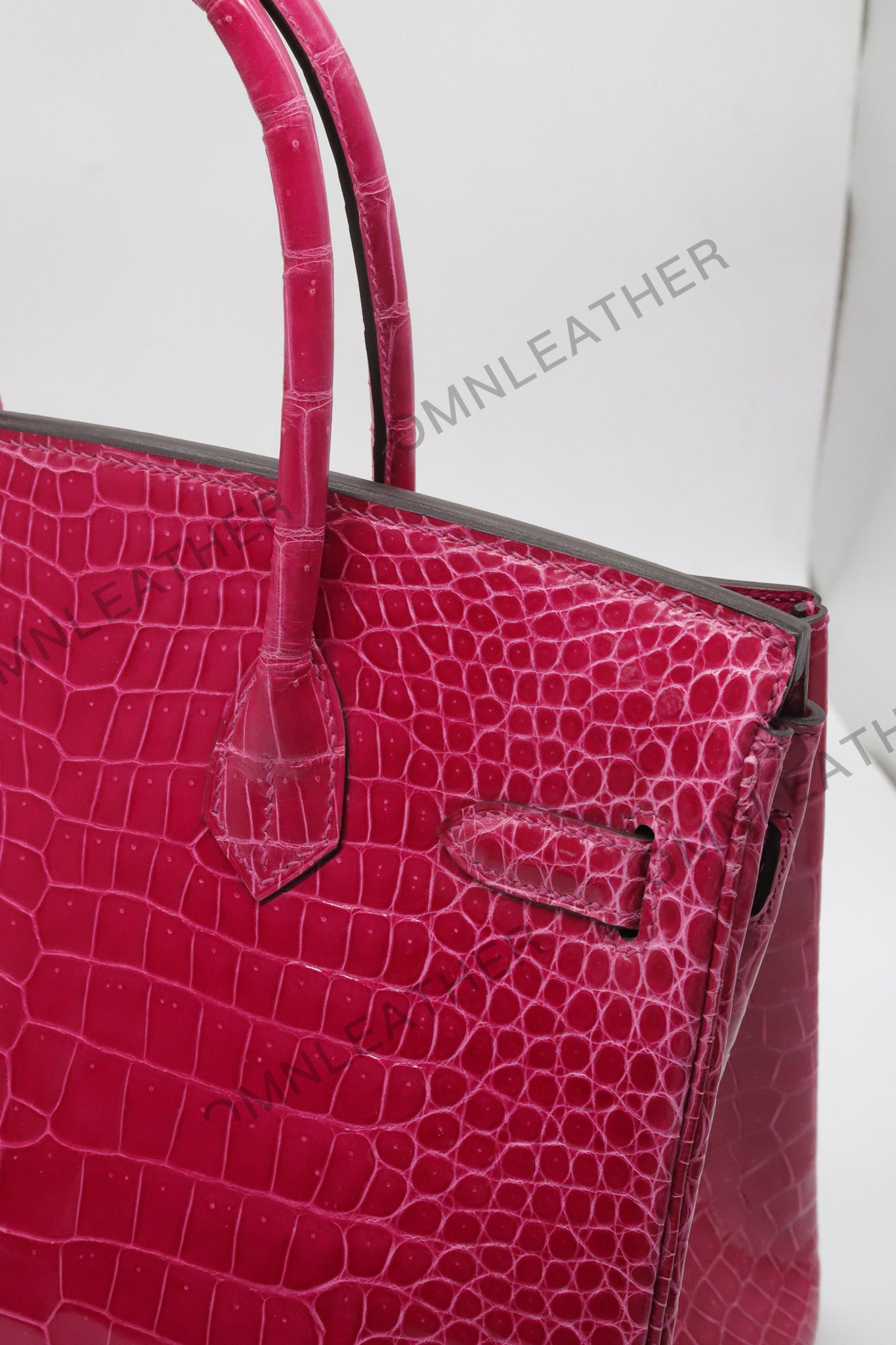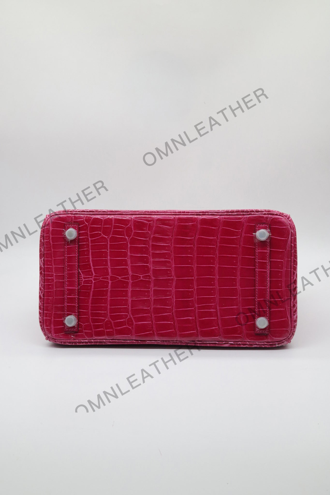 London 30 Birkin Style HCP Saltwater Croc Leather Glossy Red Color Silver Hardware