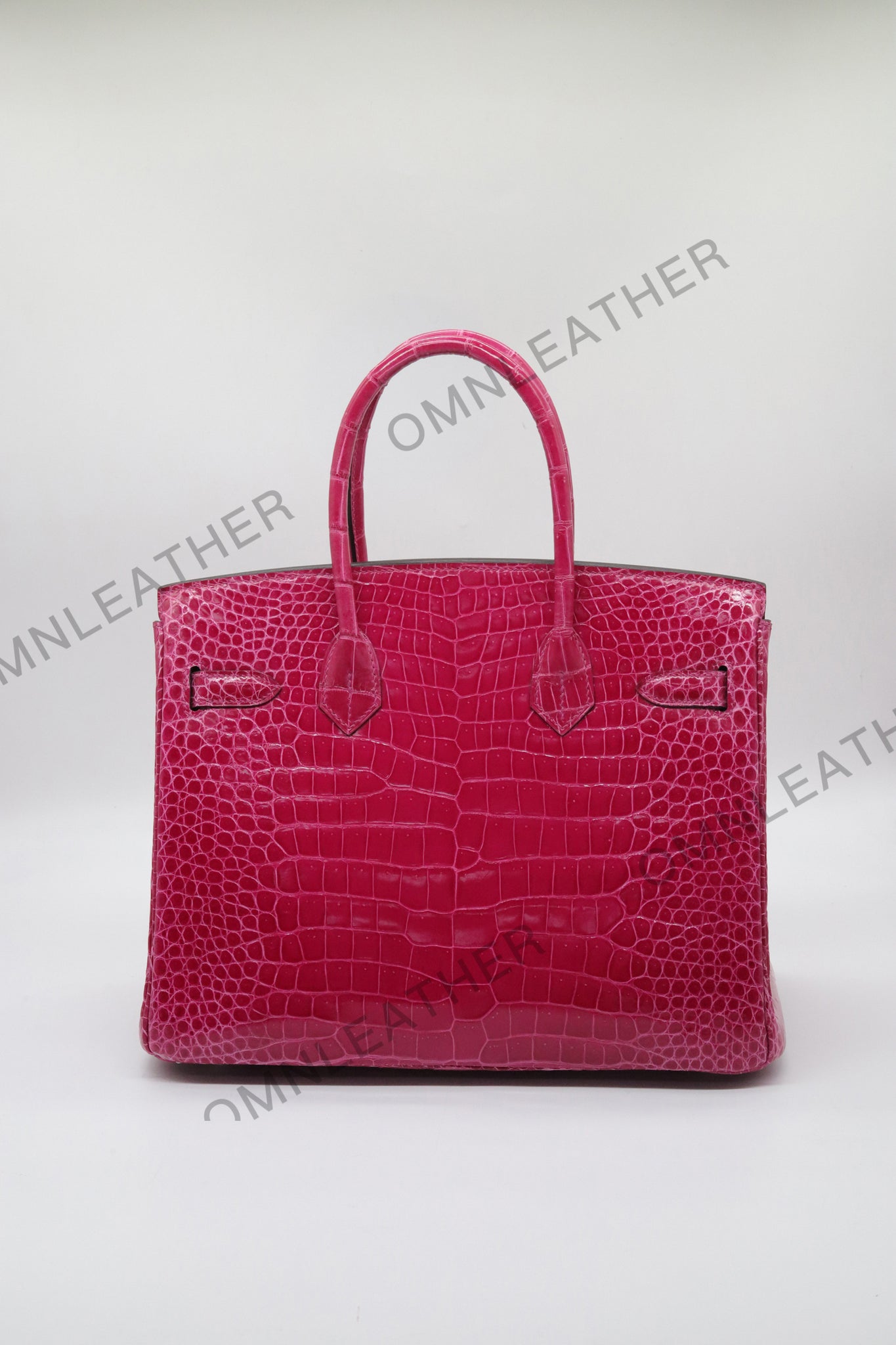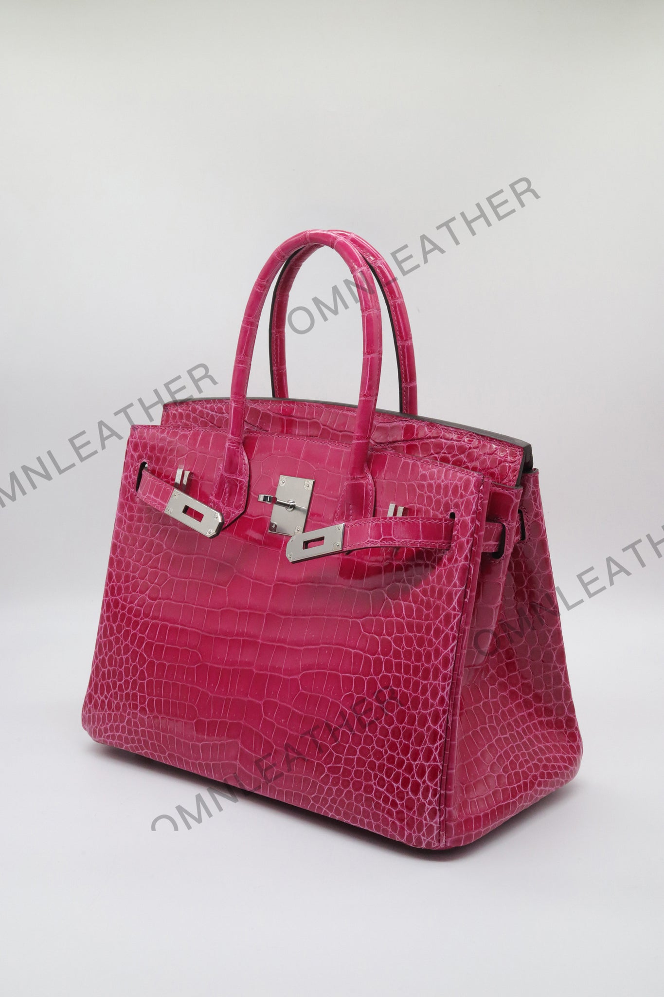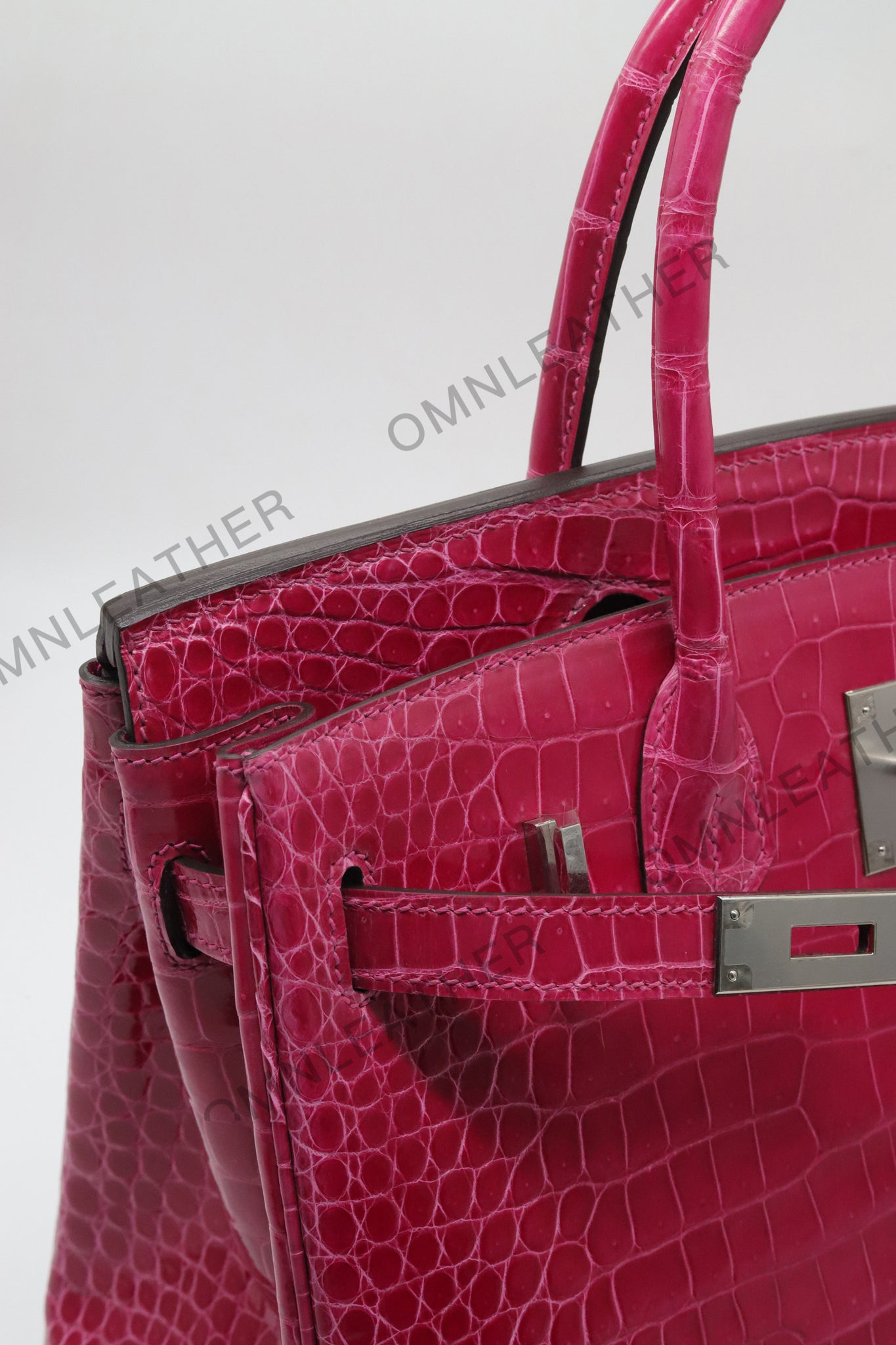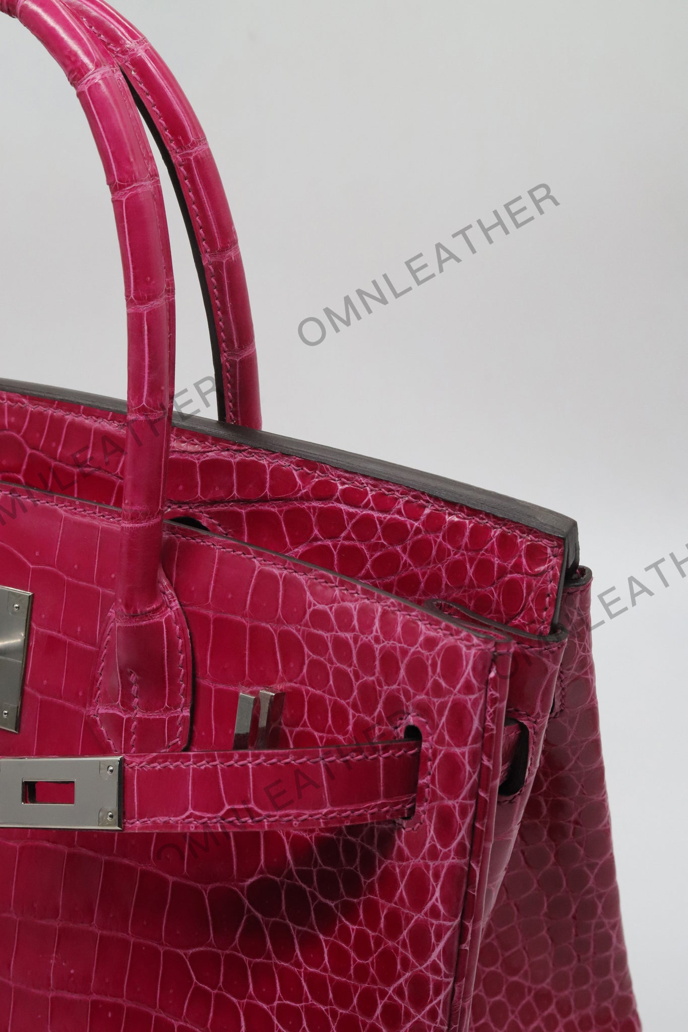 London 30 Birkin Style HCP Saltwater Croc Leather Glossy Red Color Silver Hardware