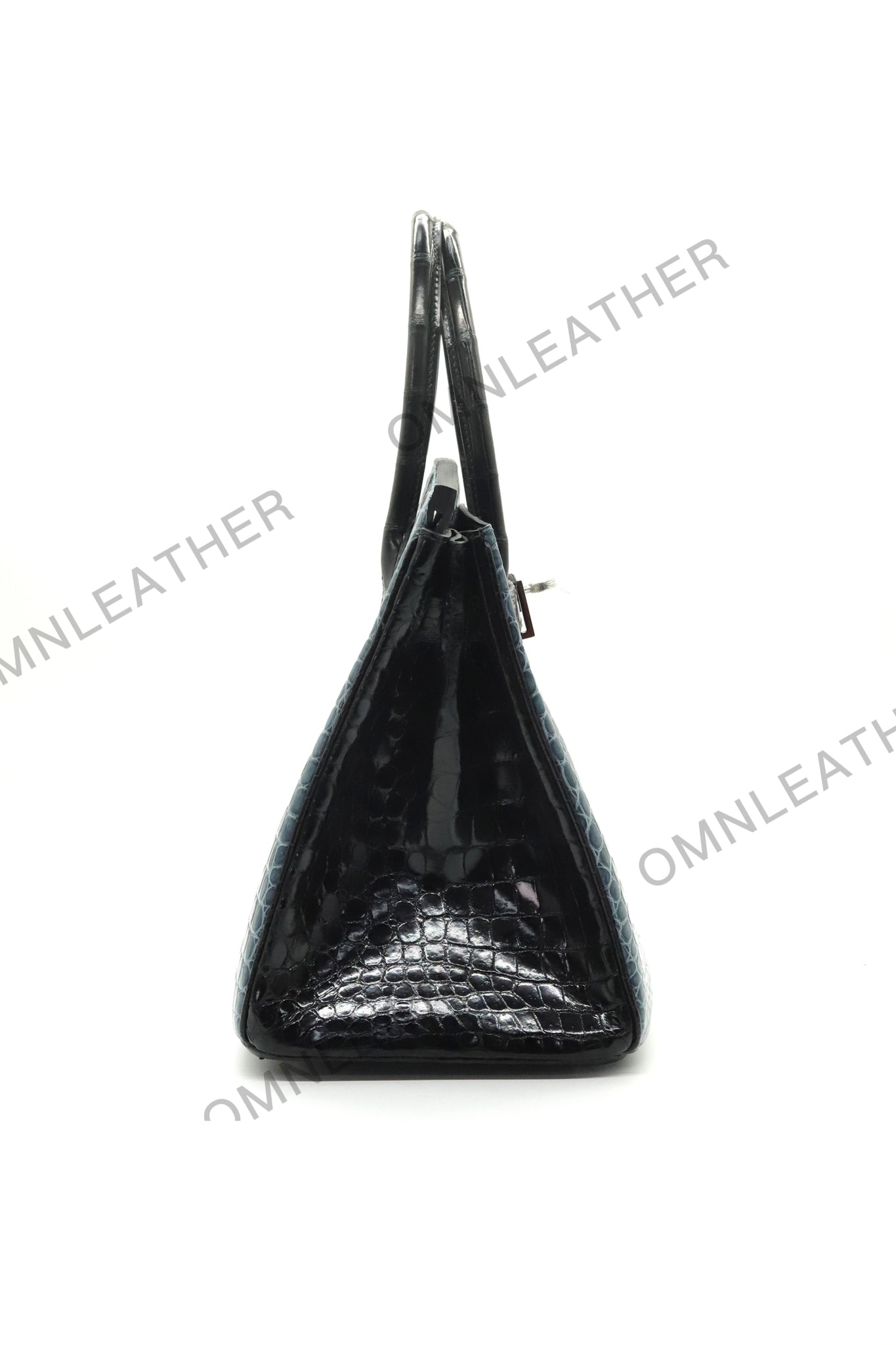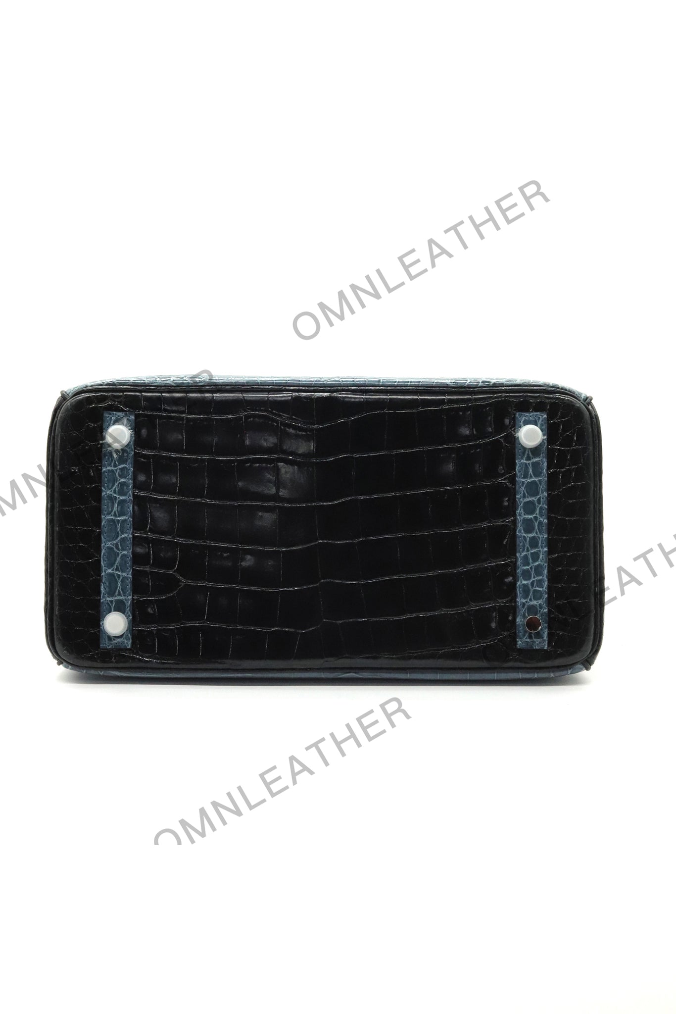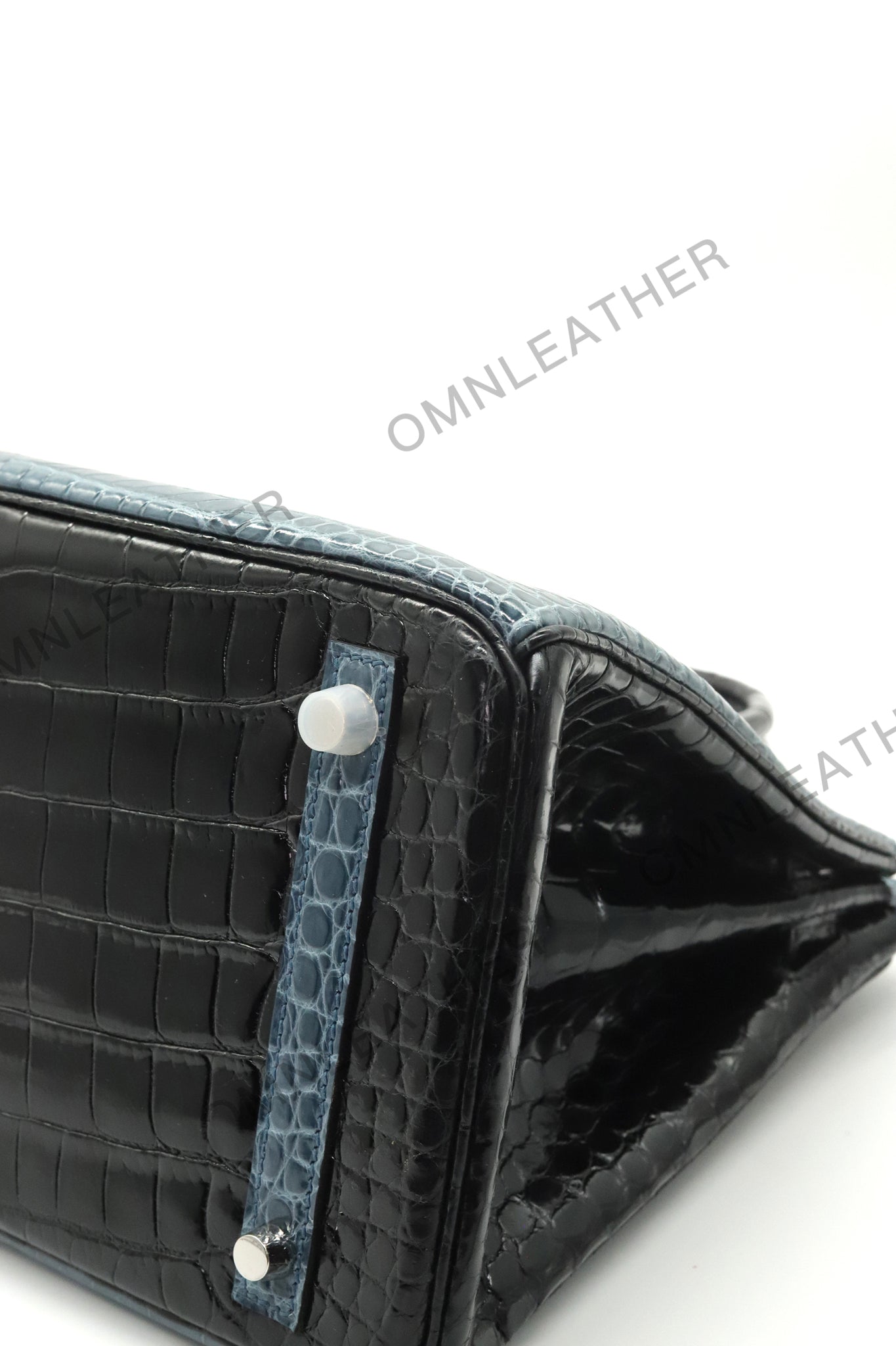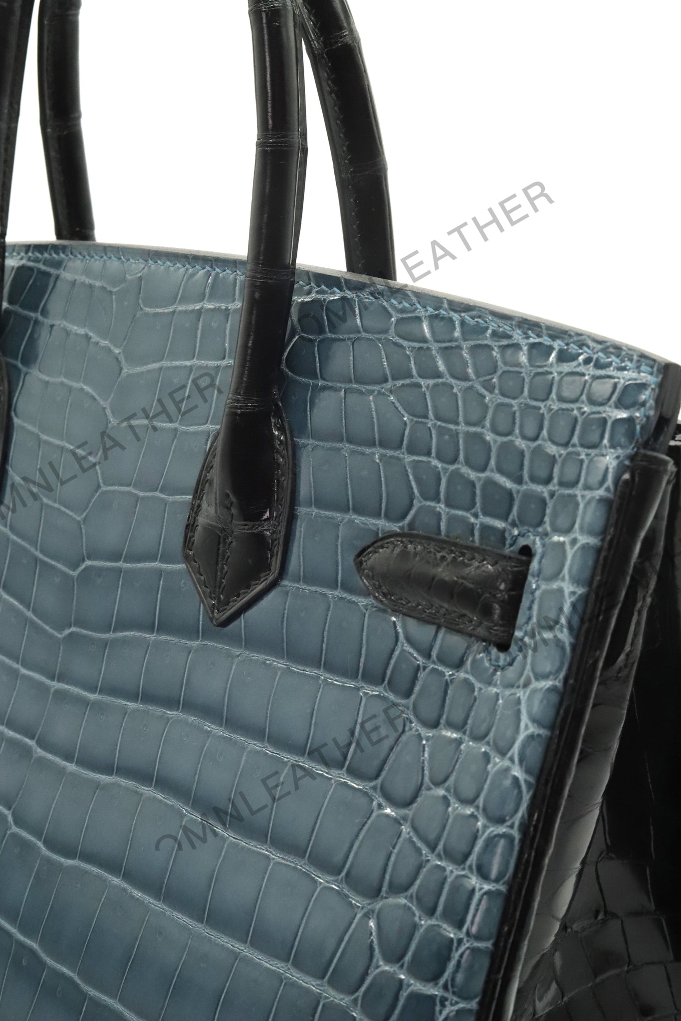 London 30 Birkin Style HCP Saltwater Croc Leather Glossy Storm Blue Mix Color Silver Hardware