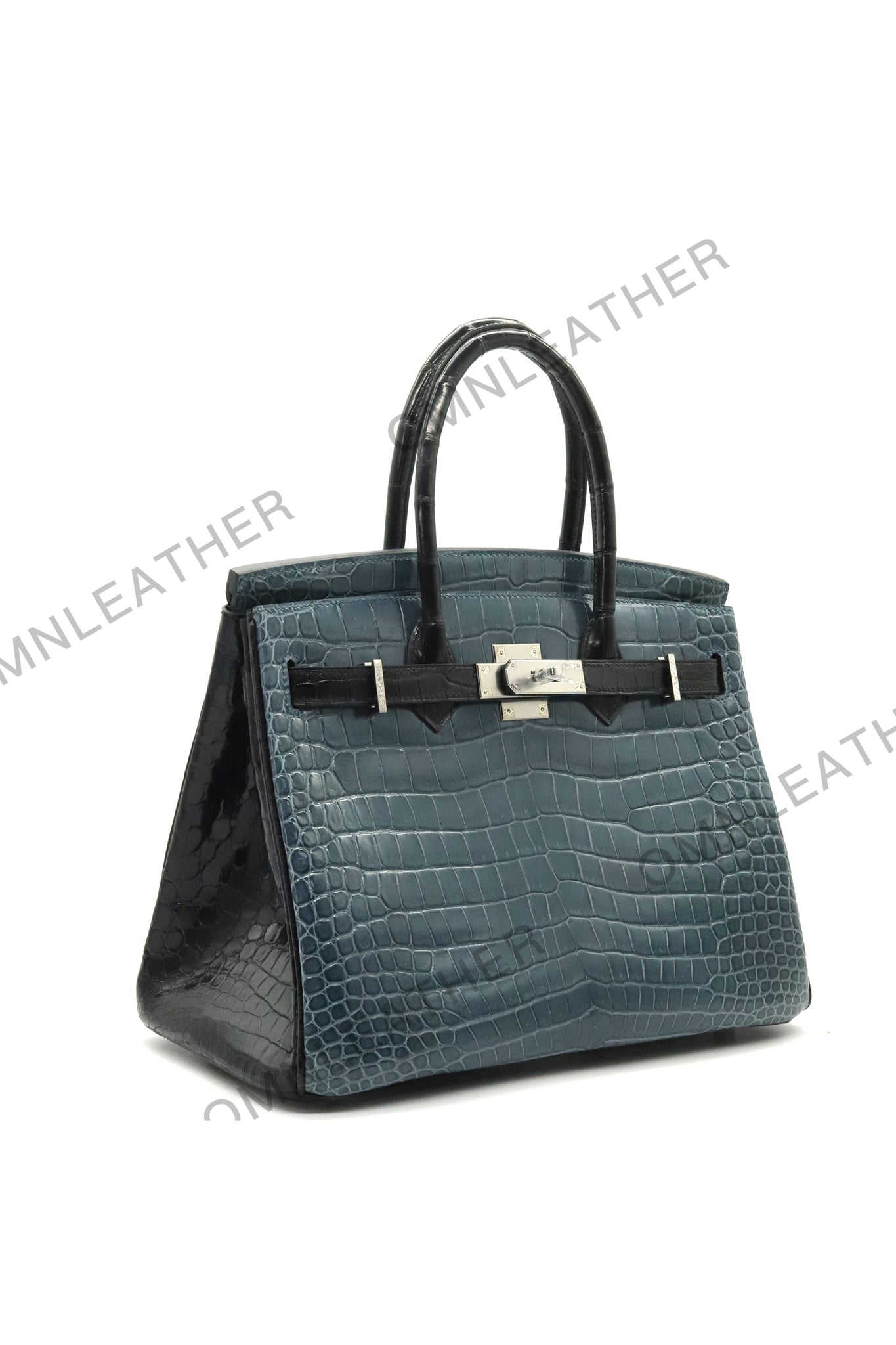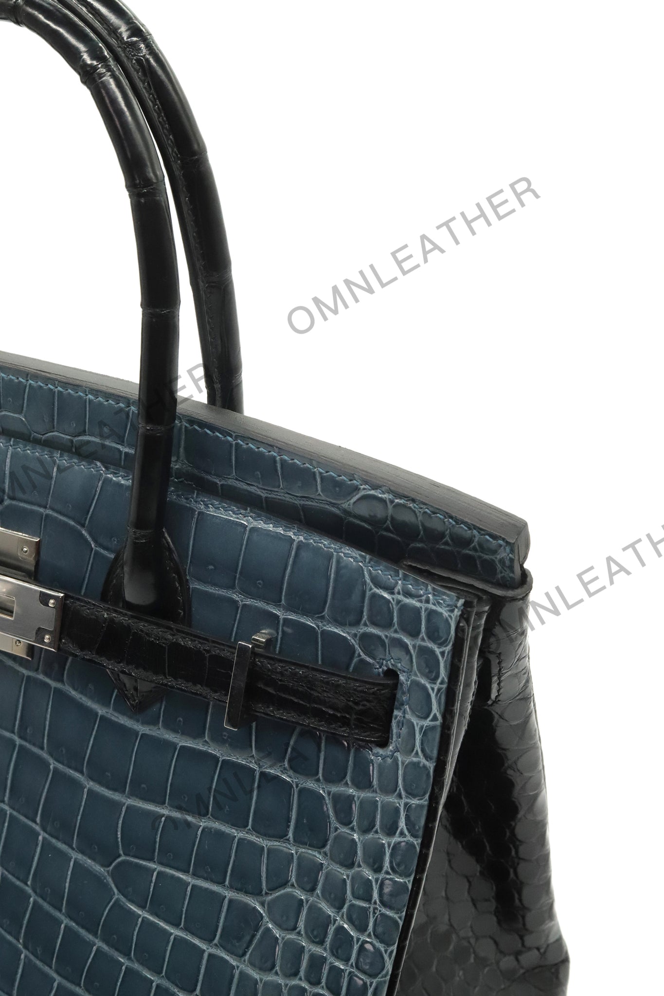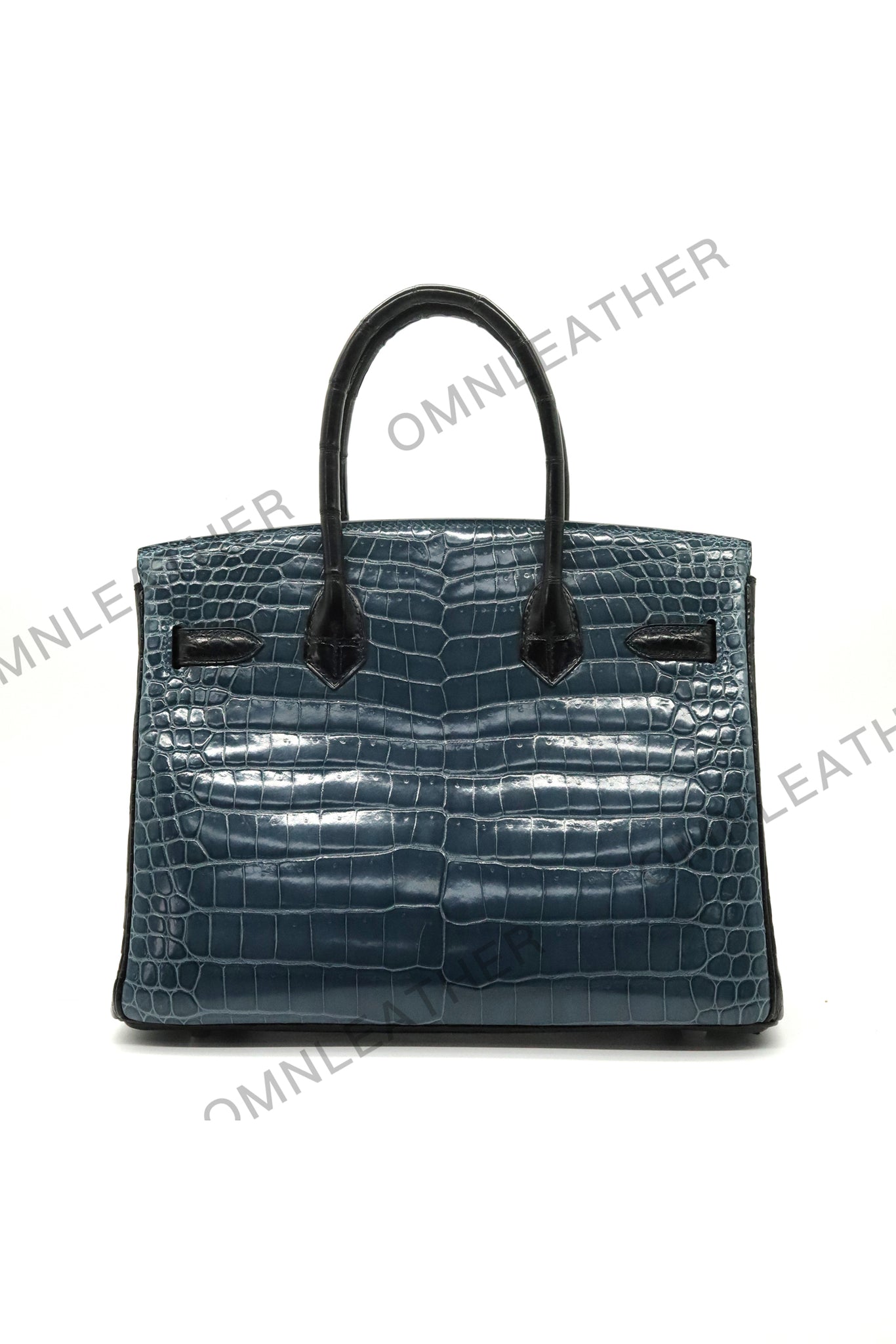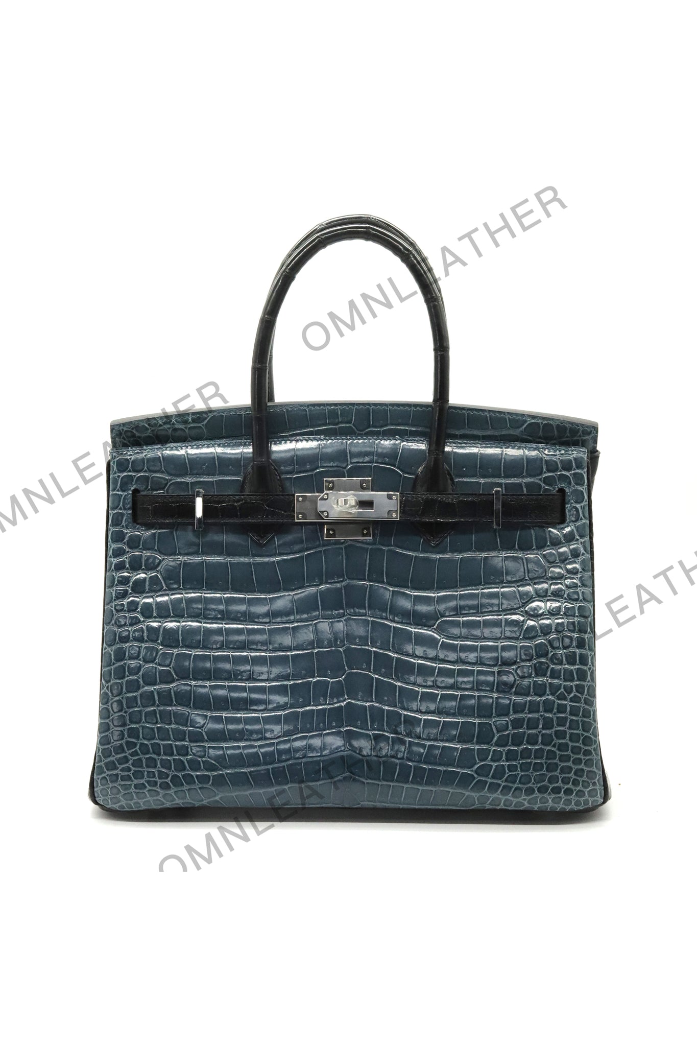 London 30 Birkin Style HCP Saltwater Croc Leather Glossy Storm Blue Mix Color Silver Hardware