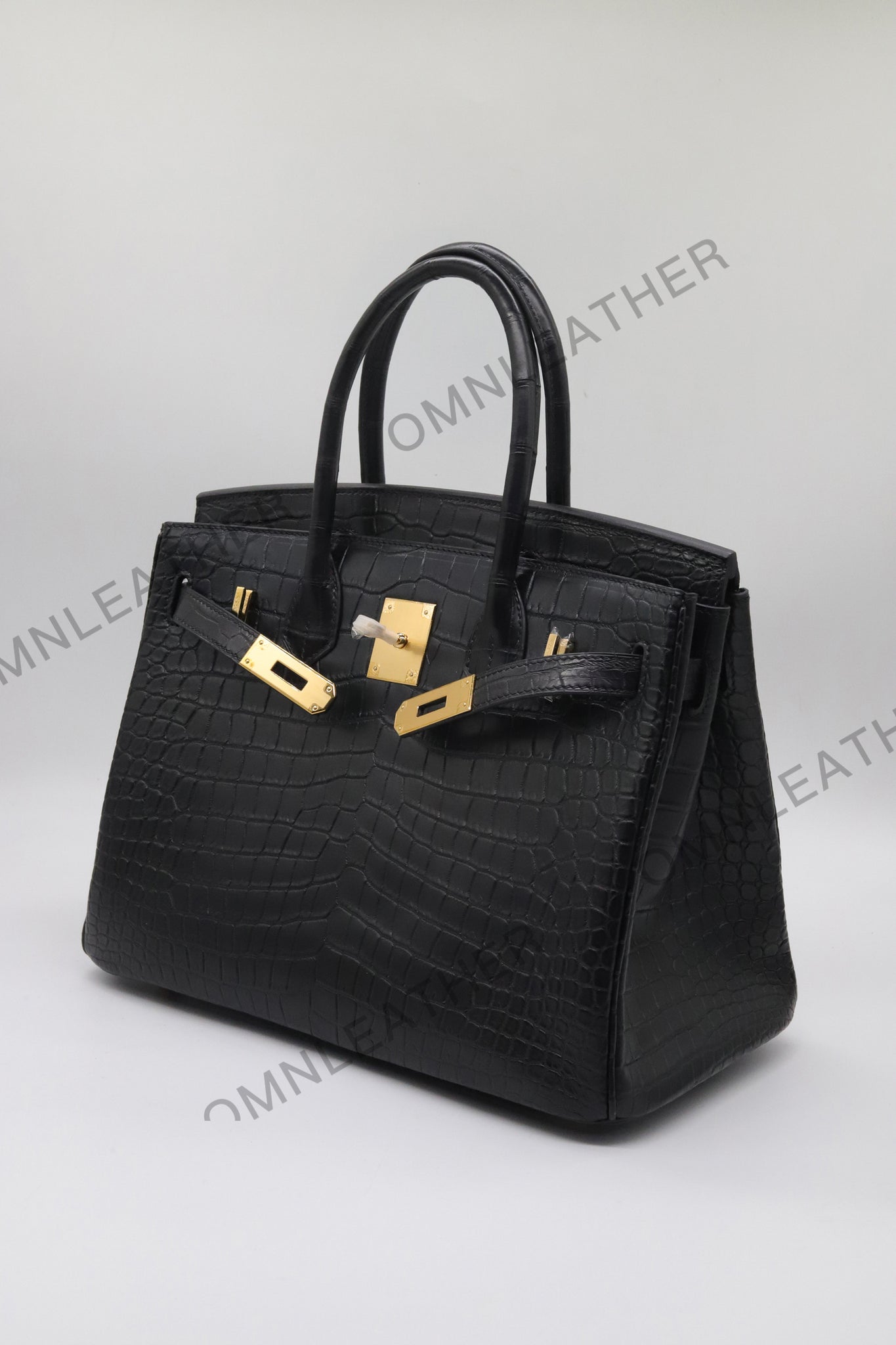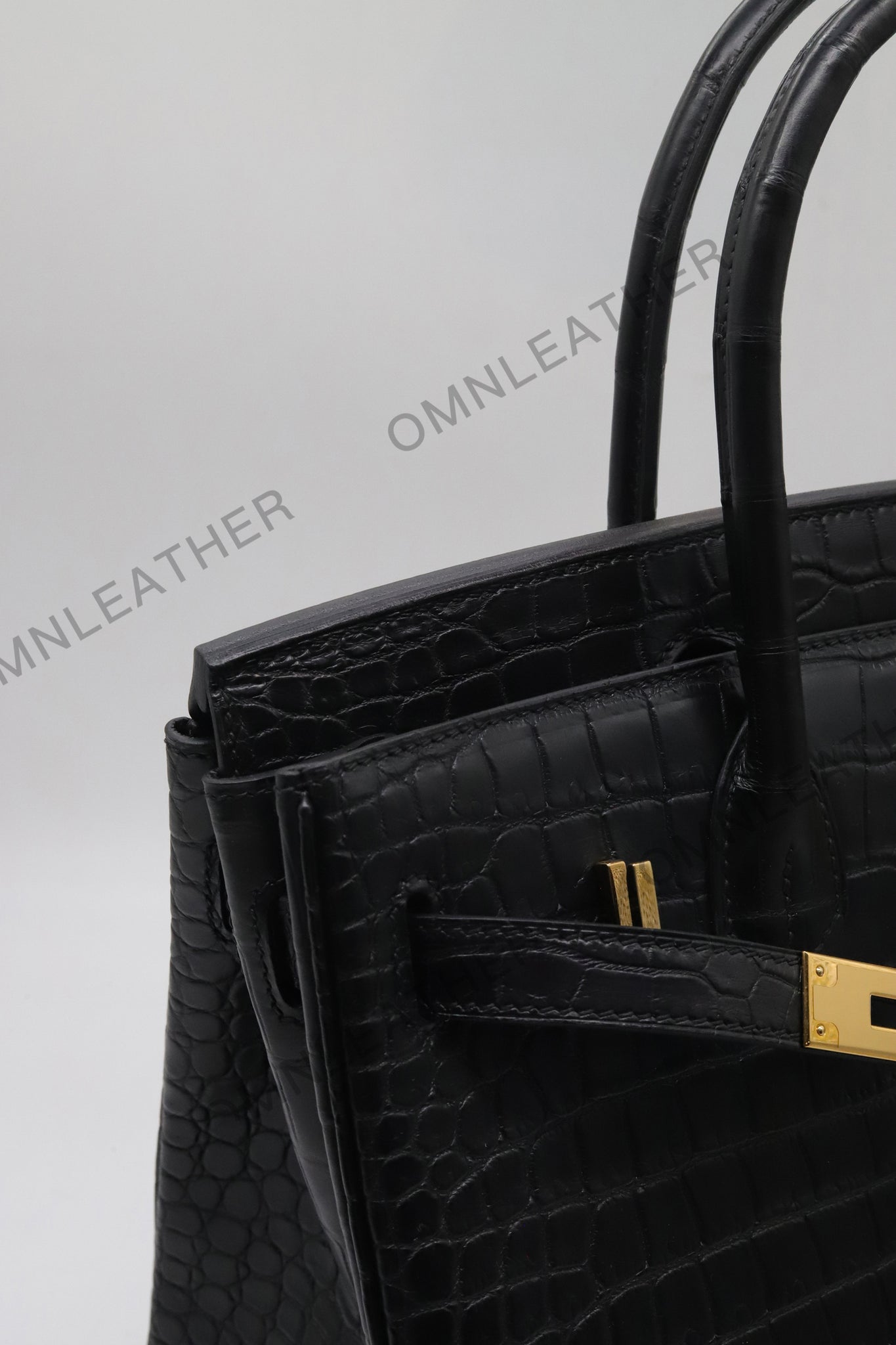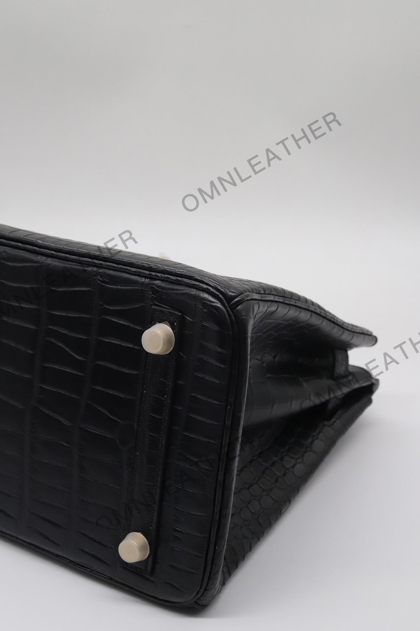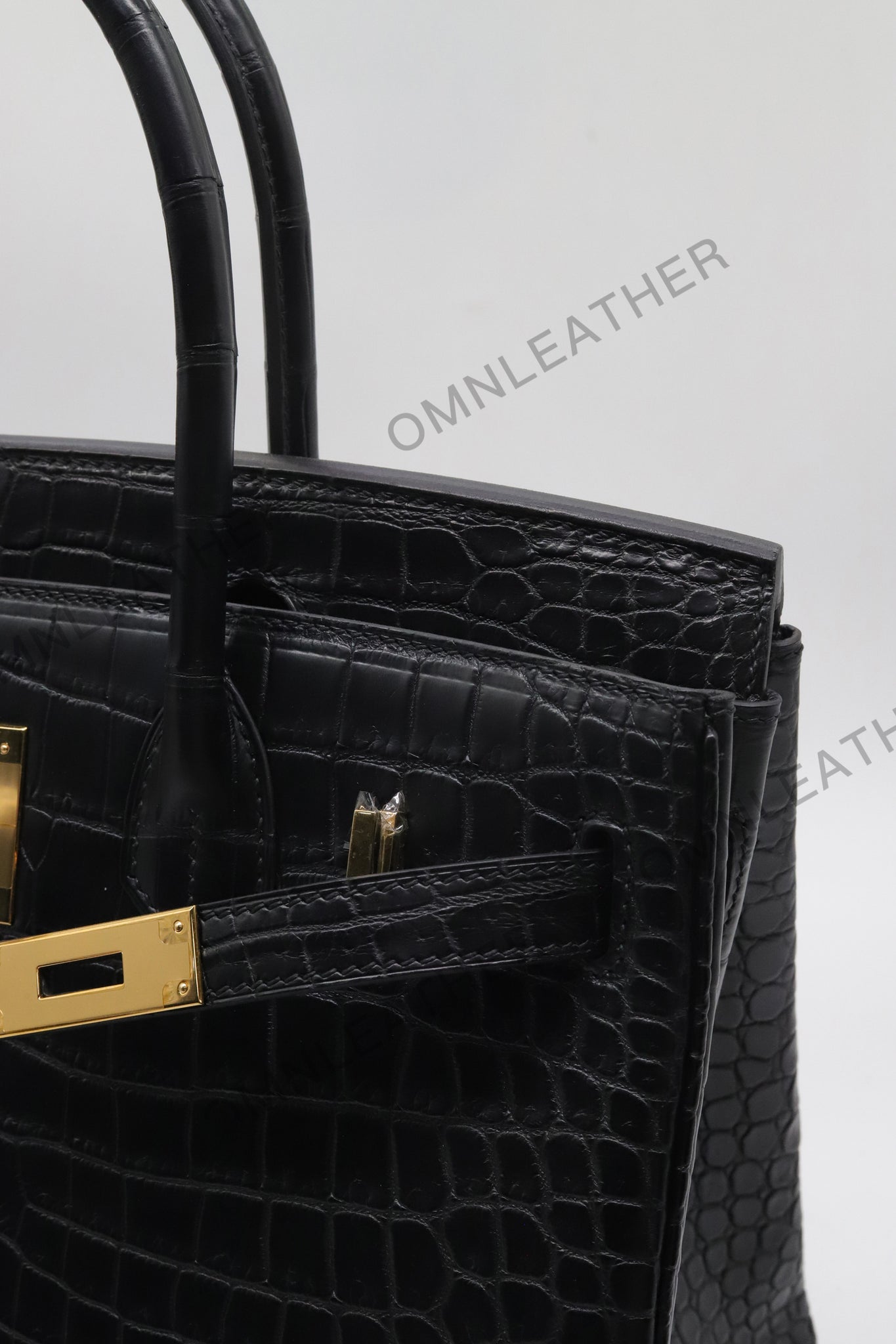 London 30 Birkin Style HCP Saltwater Croc Leather Opaque Black Color Gold Hardware