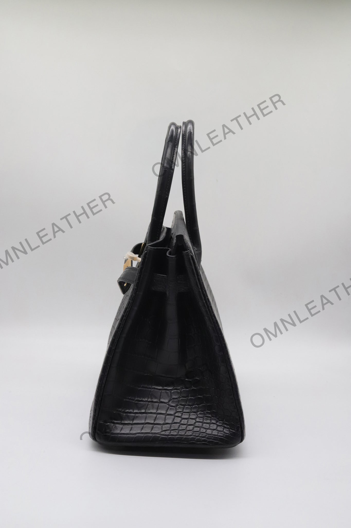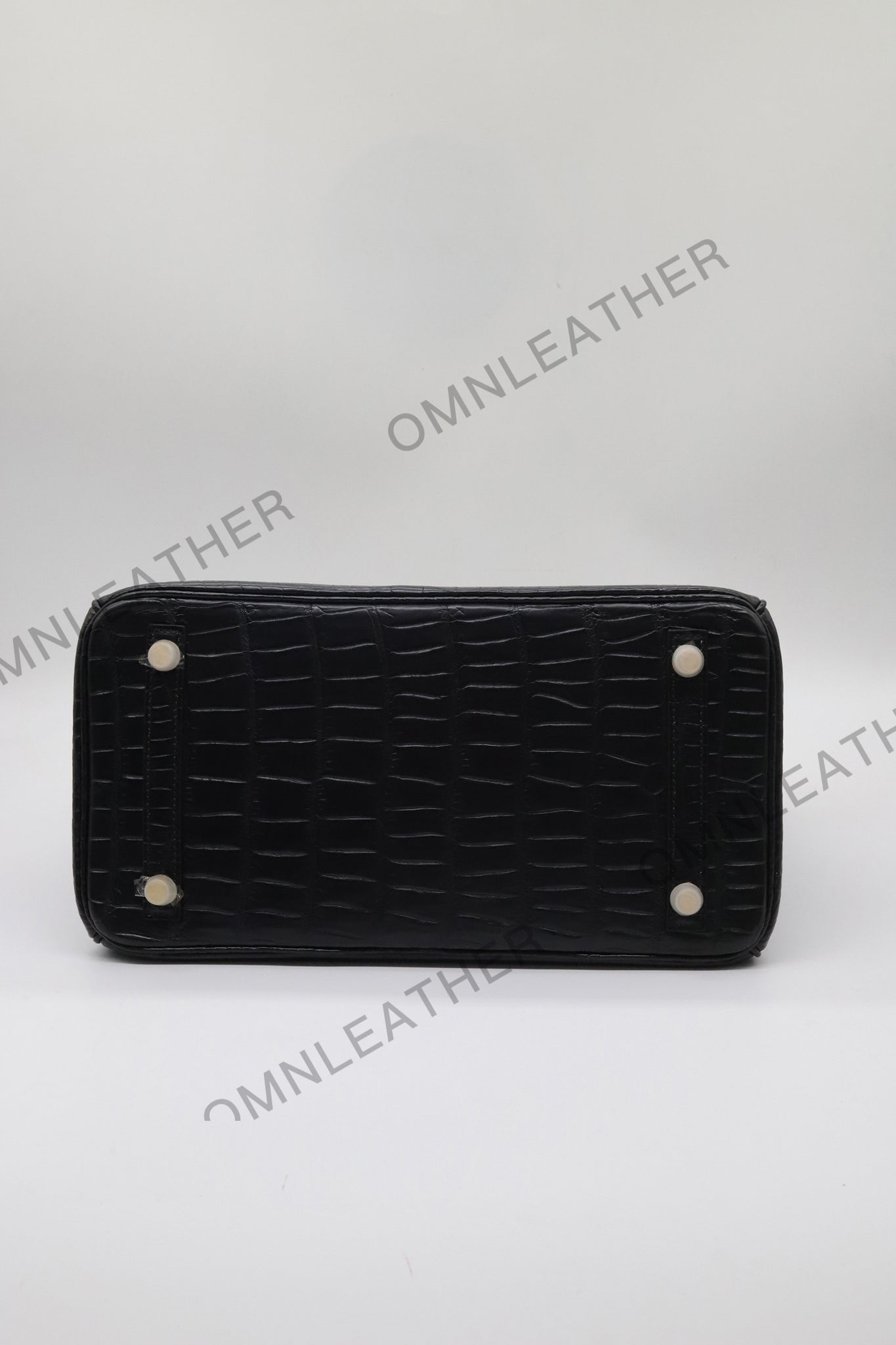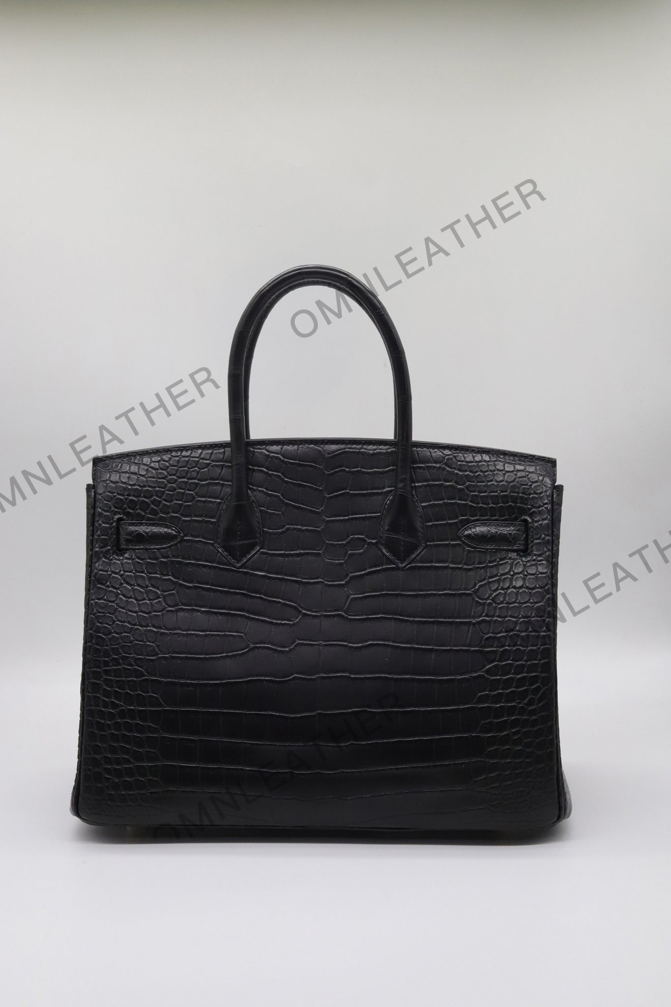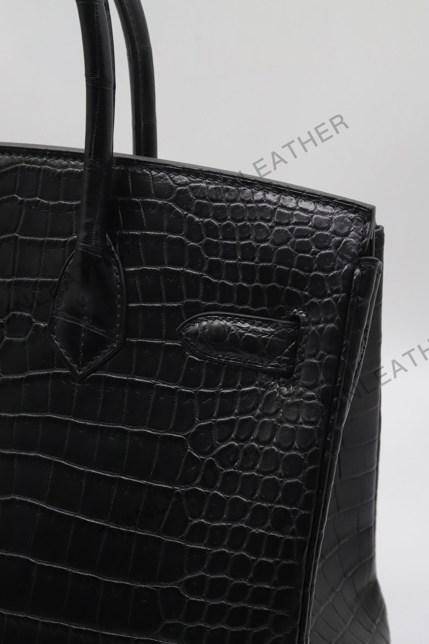 London 30 Birkin Style HCP Saltwater Croc Leather Opaque Black Color Gold Hardware