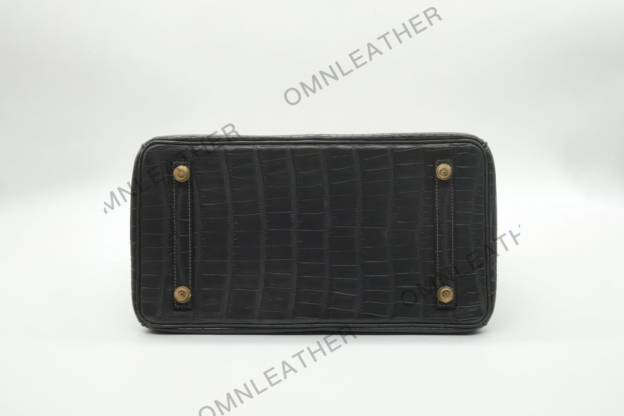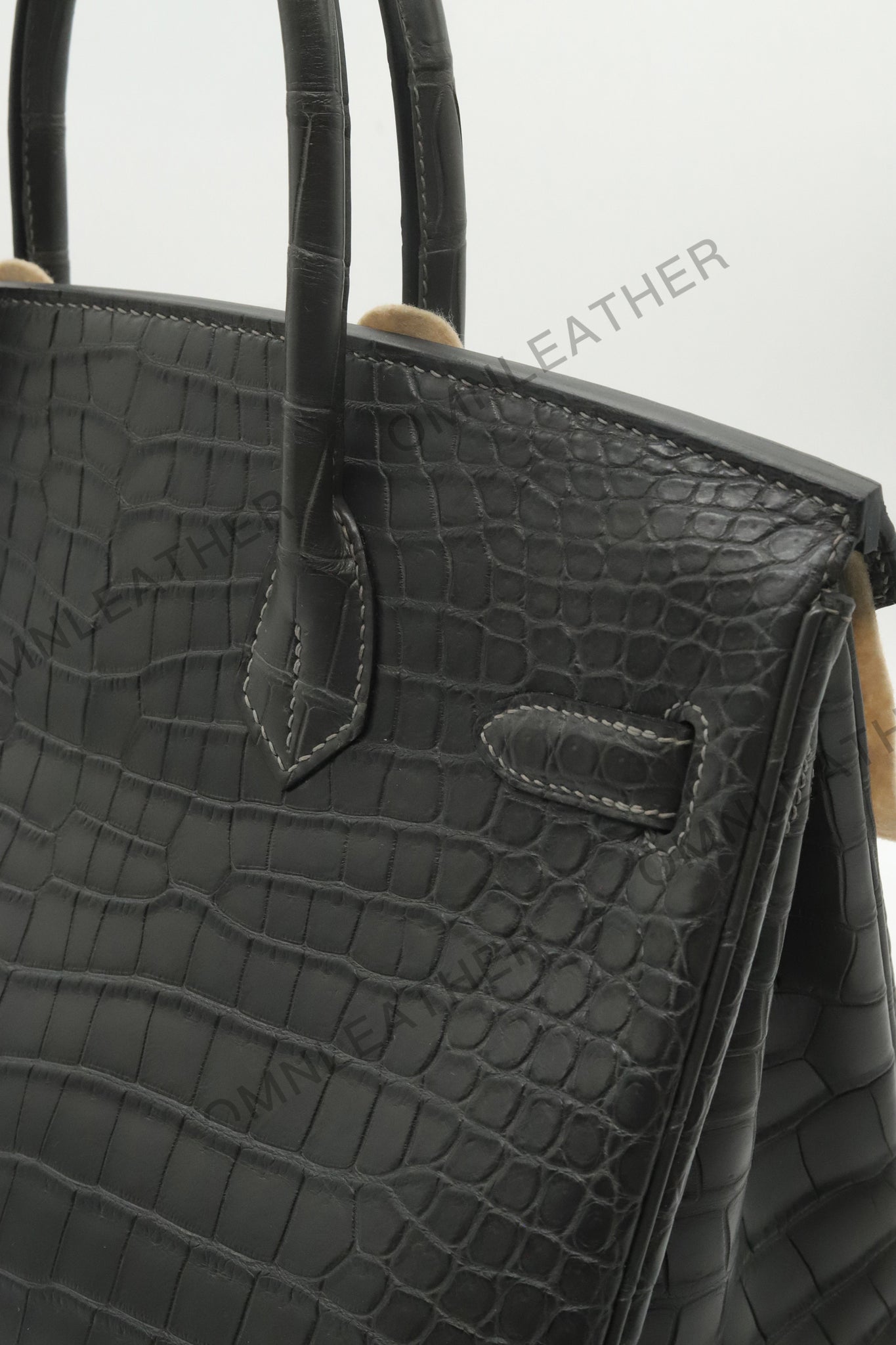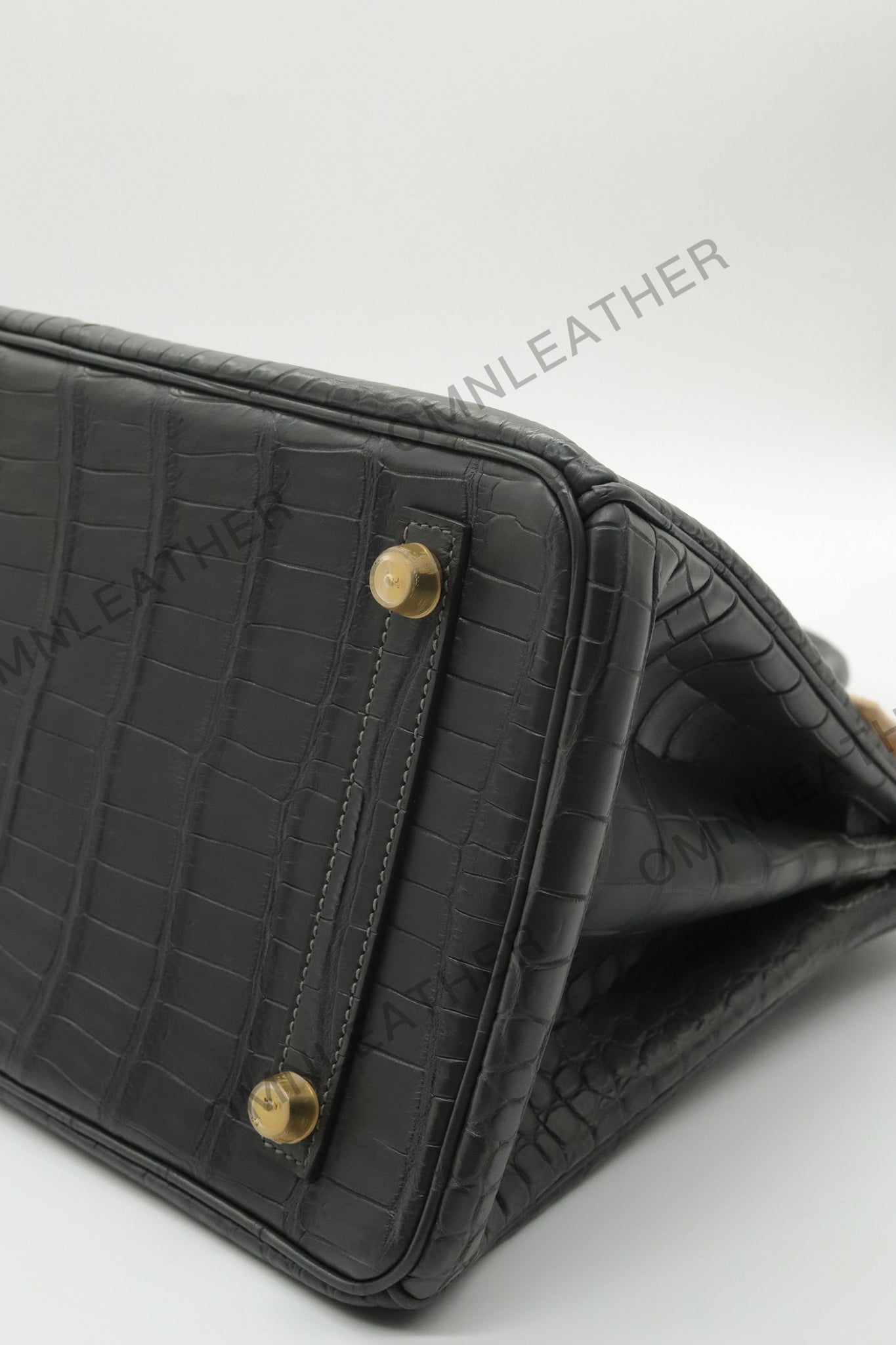 London 30 Birkin Style HCP Saltwater Croc Leather Opaque Graphite Color Gold Hardware