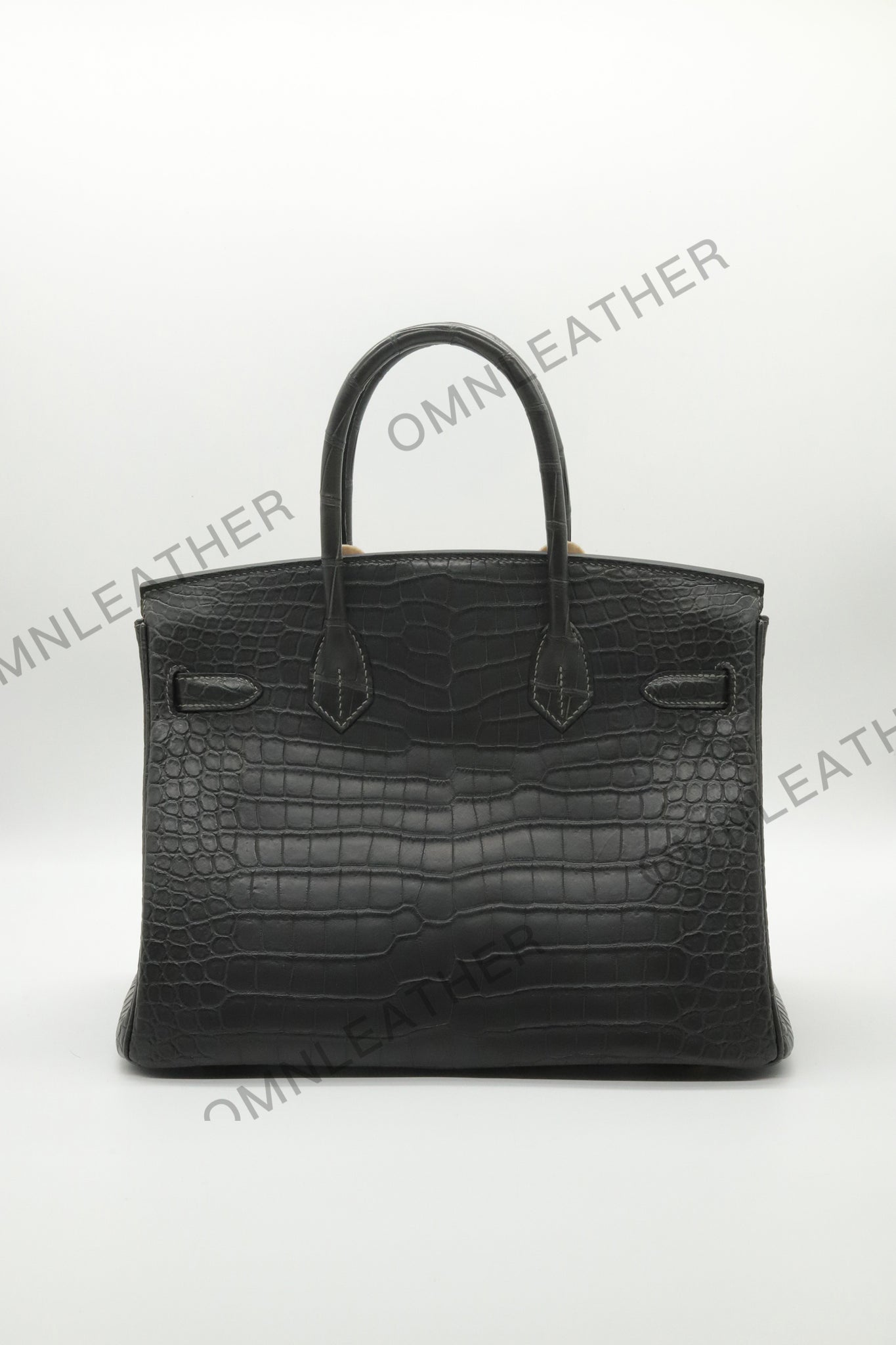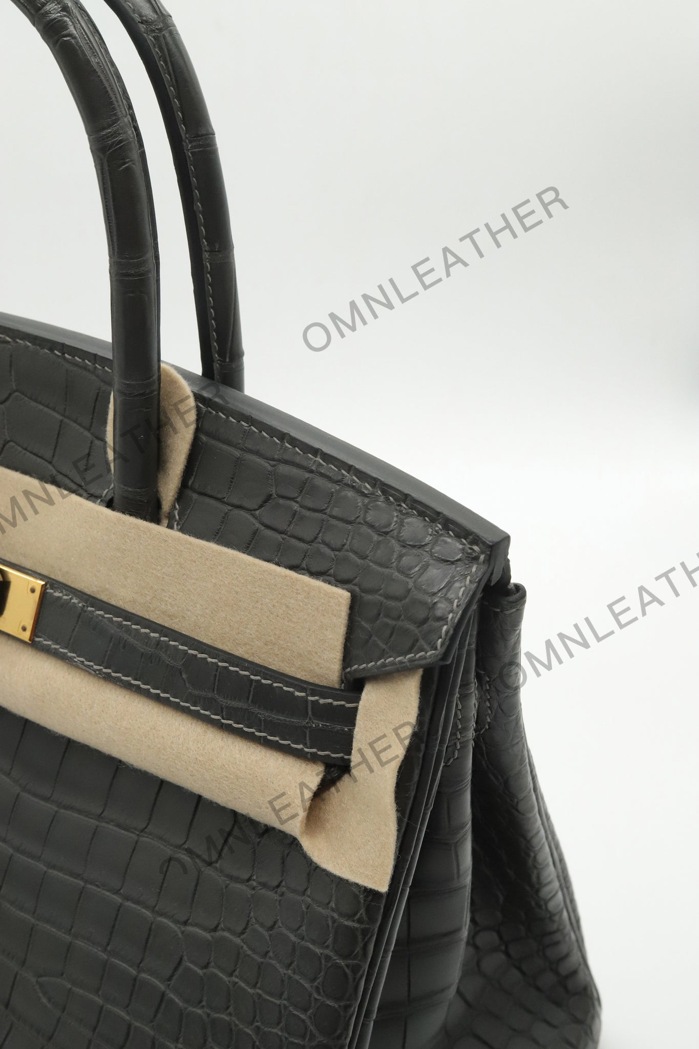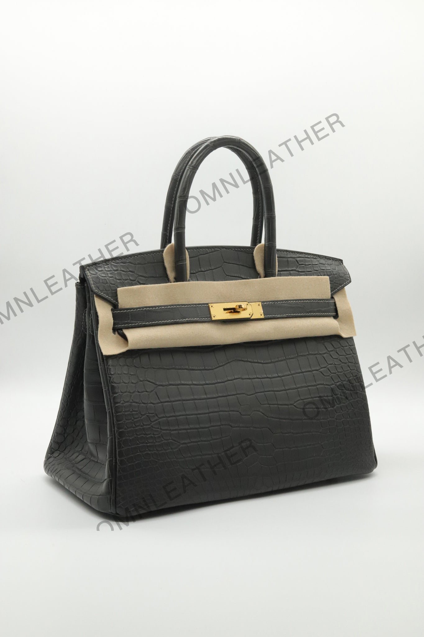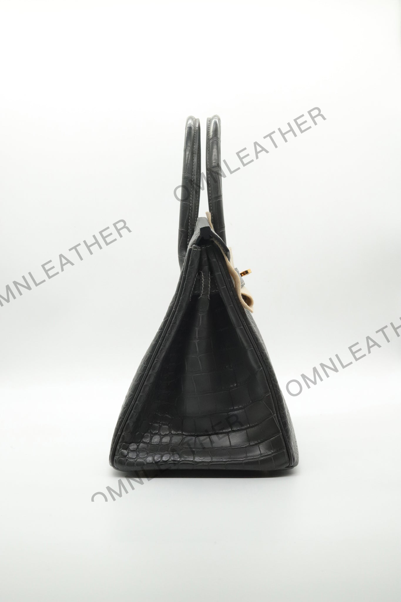 London 30 Birkin Style HCP Saltwater Croc Leather Opaque Graphite Color Gold Hardware