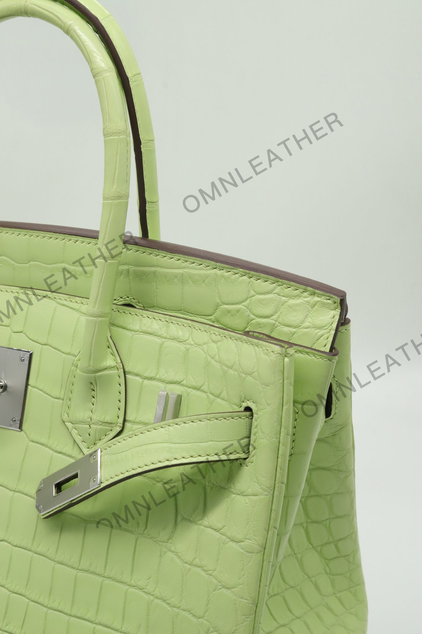 London 30 Birkin Style Nile Croc Leather Opaque Light Yellow Color Silver Hardware