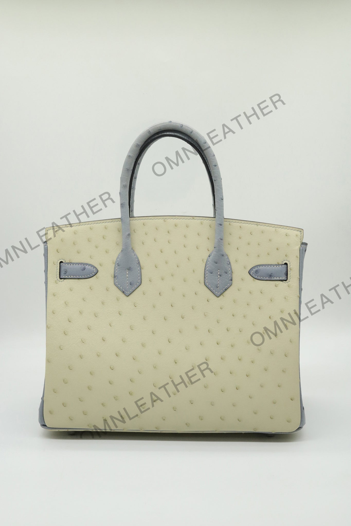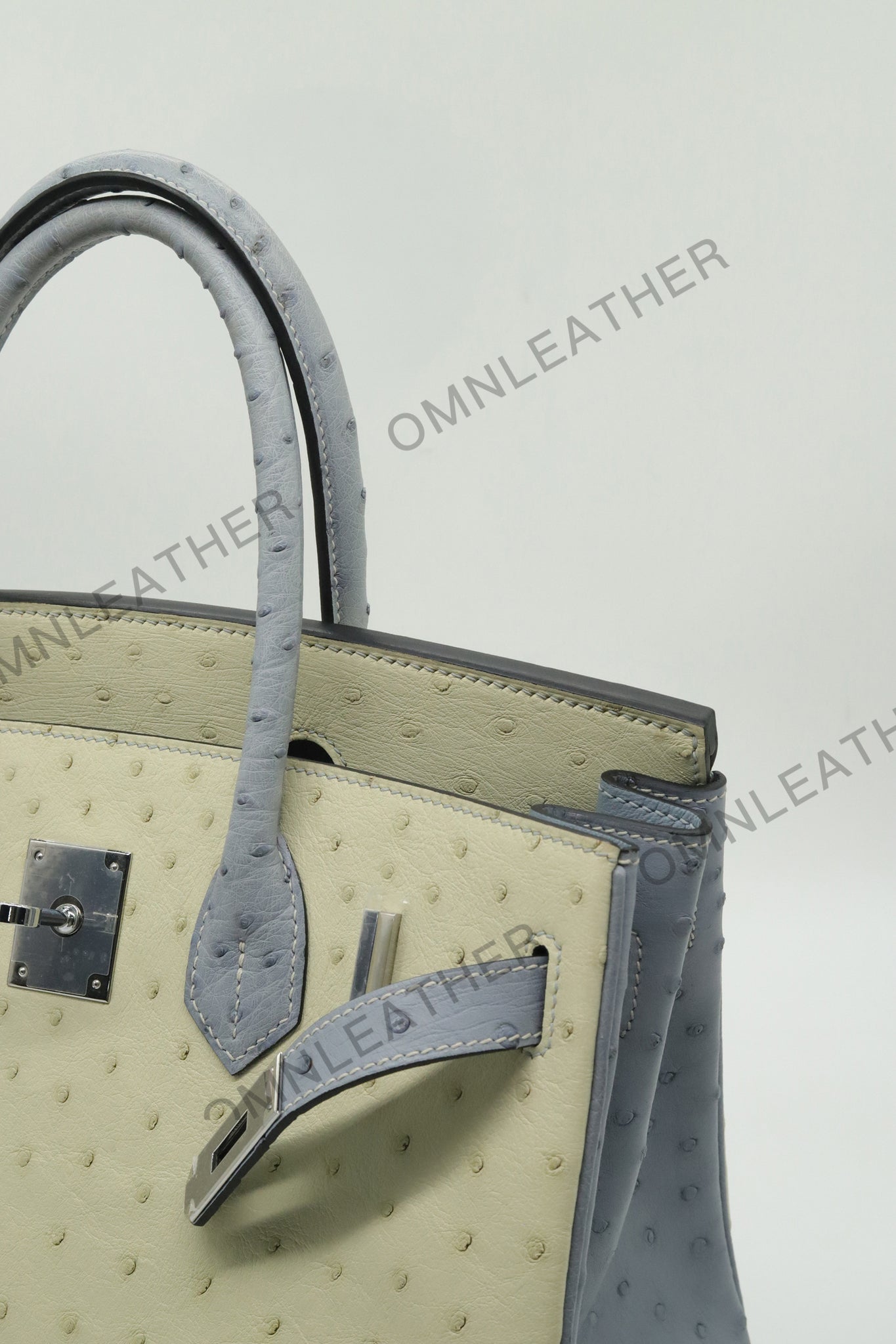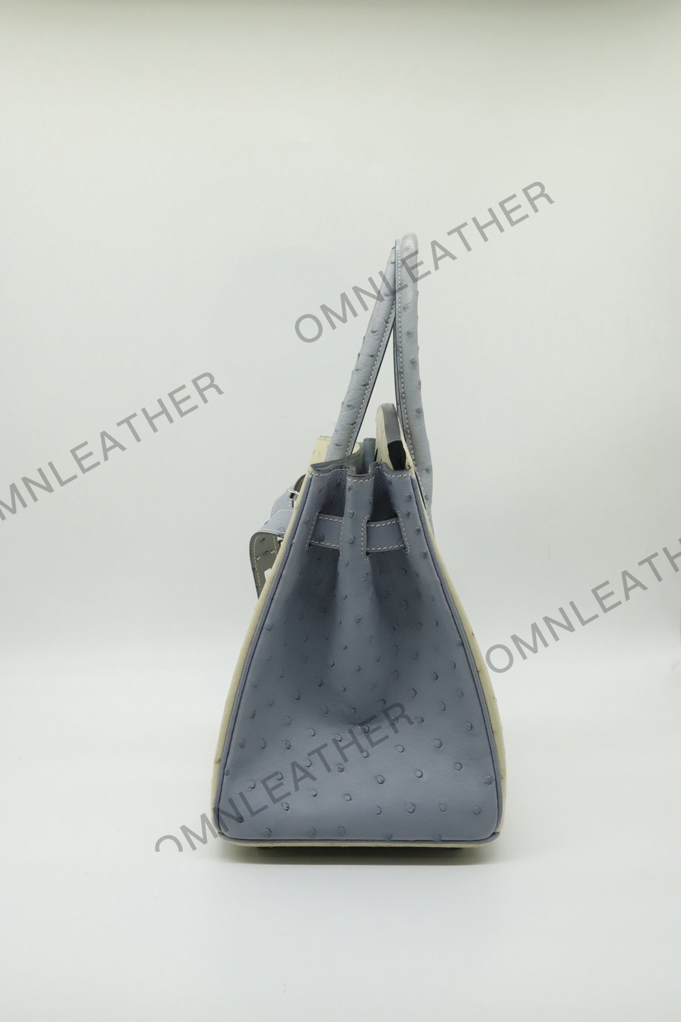 London 30 Birkin Style Ostrich Leather Beige Blue Mix Color Silver Hardware
