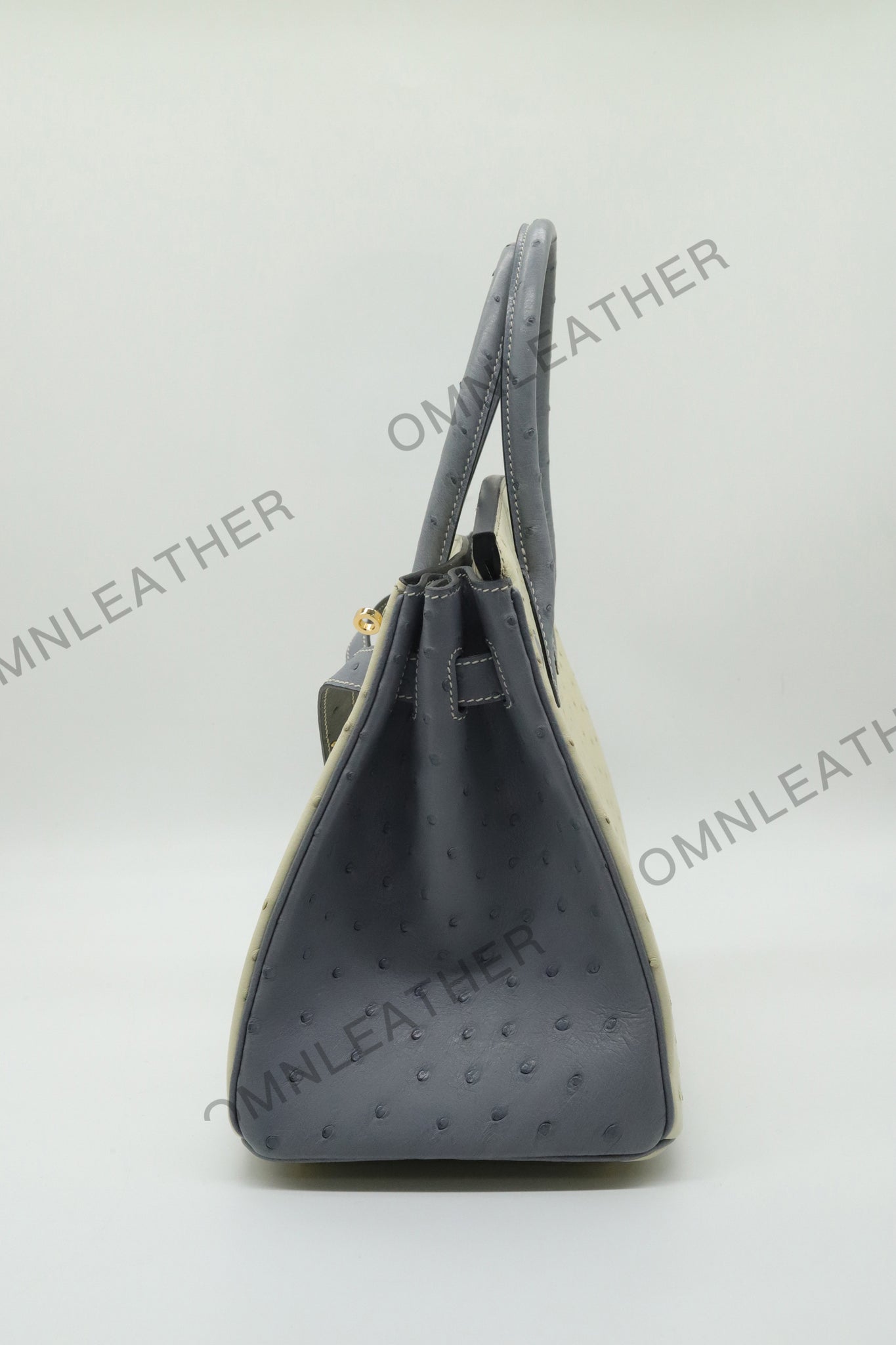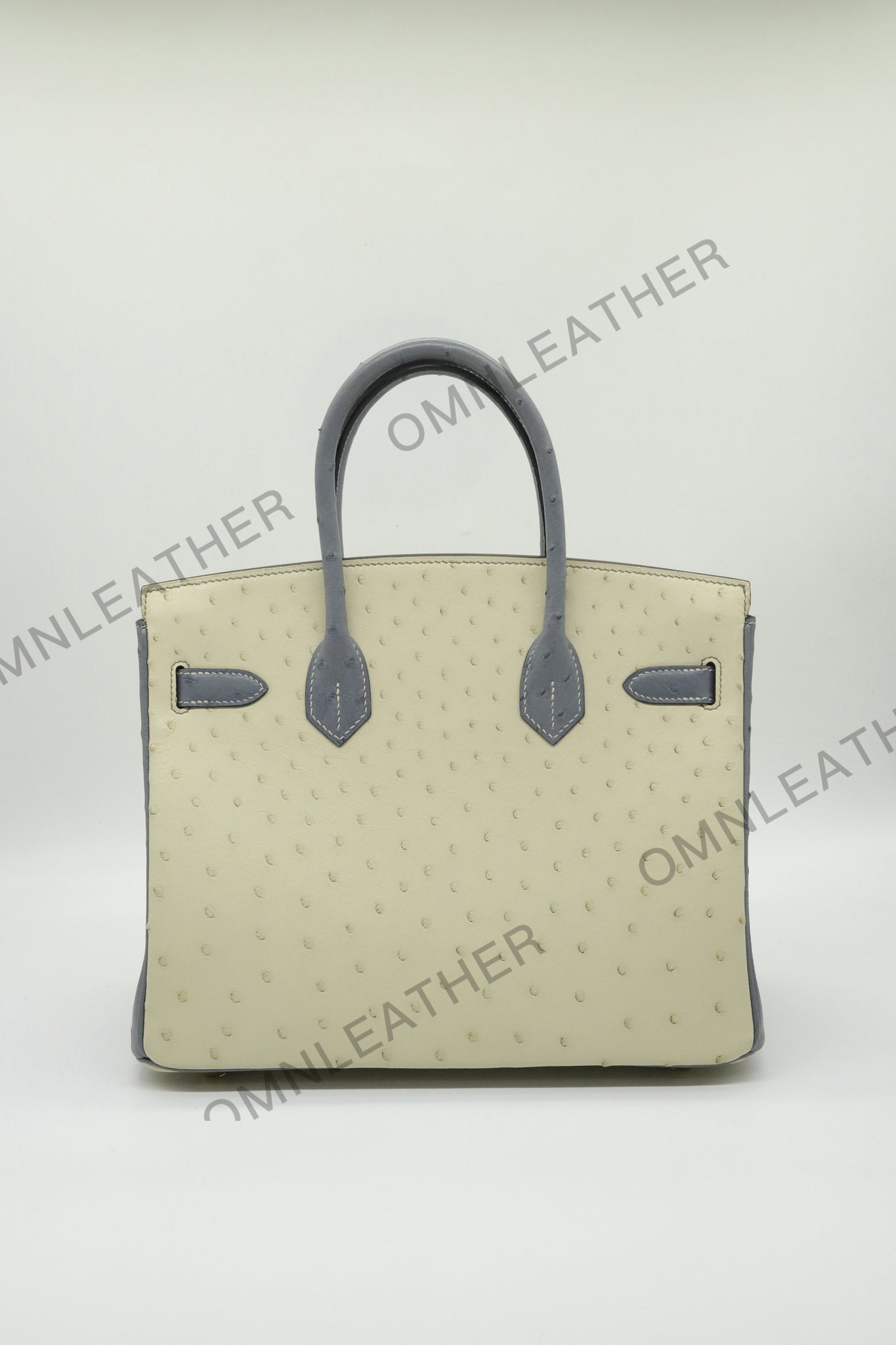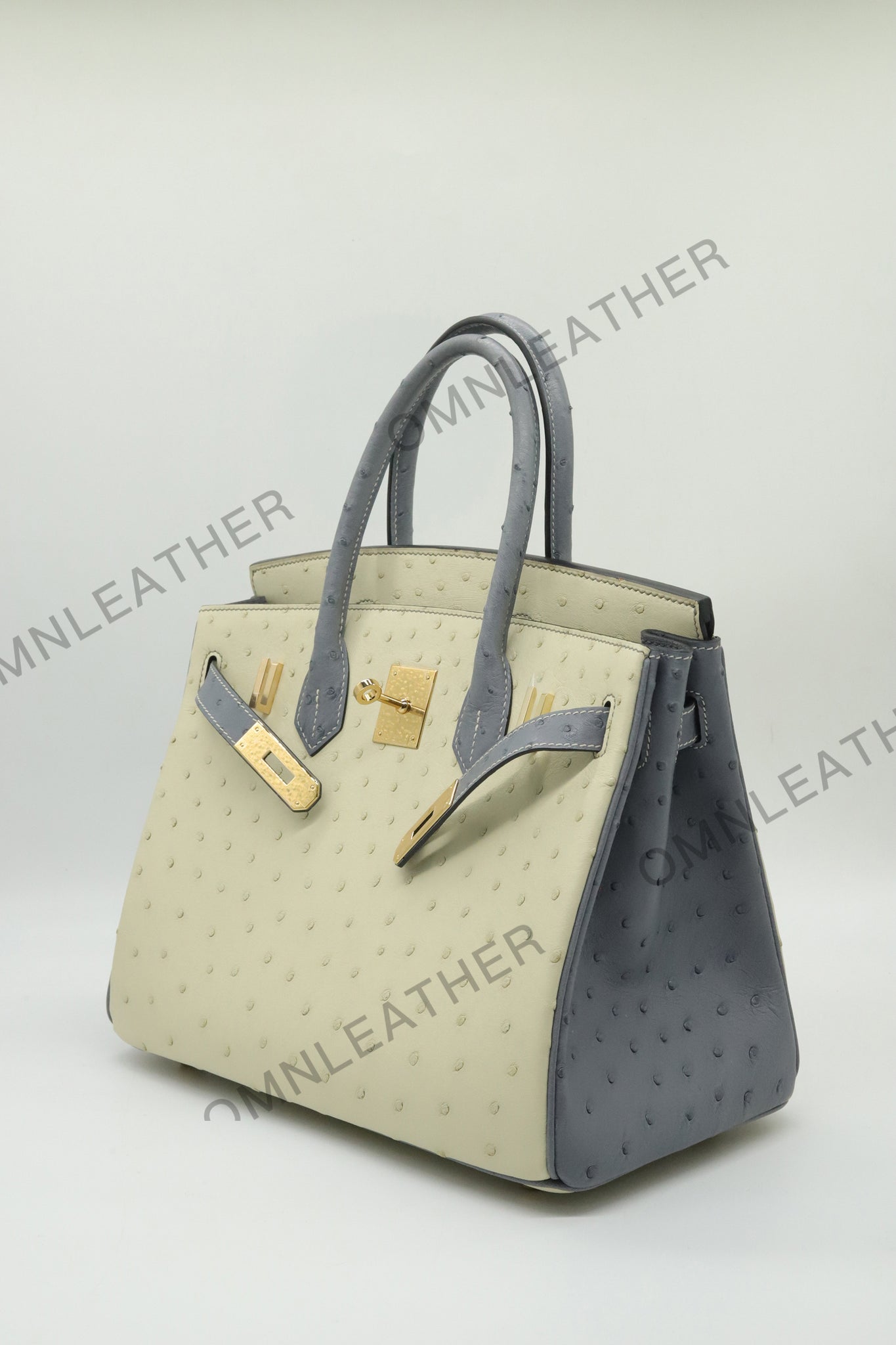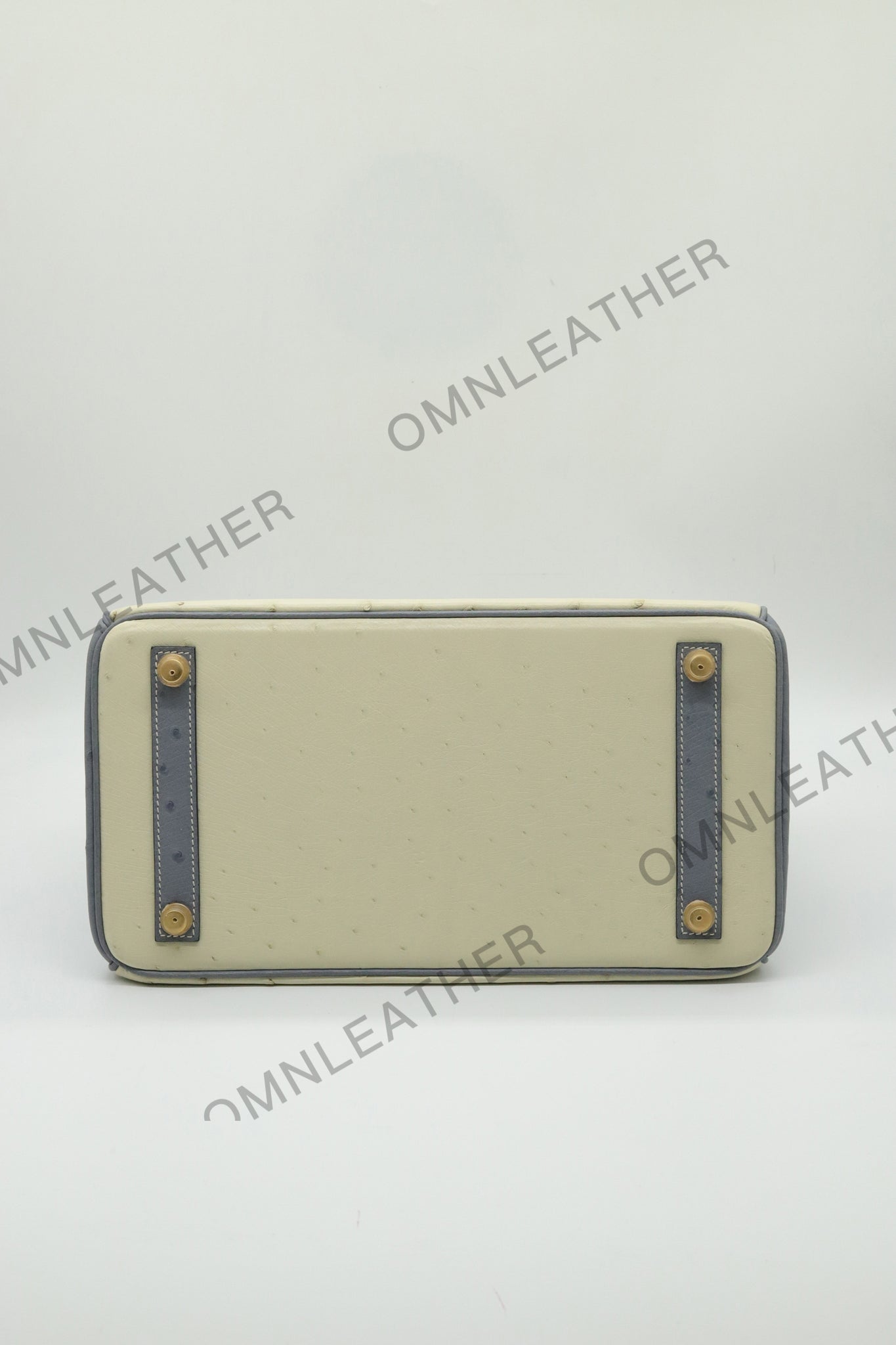 London 30 Birkin Style Ostrich Leather Beige Grey Mix Color Gold Hardware