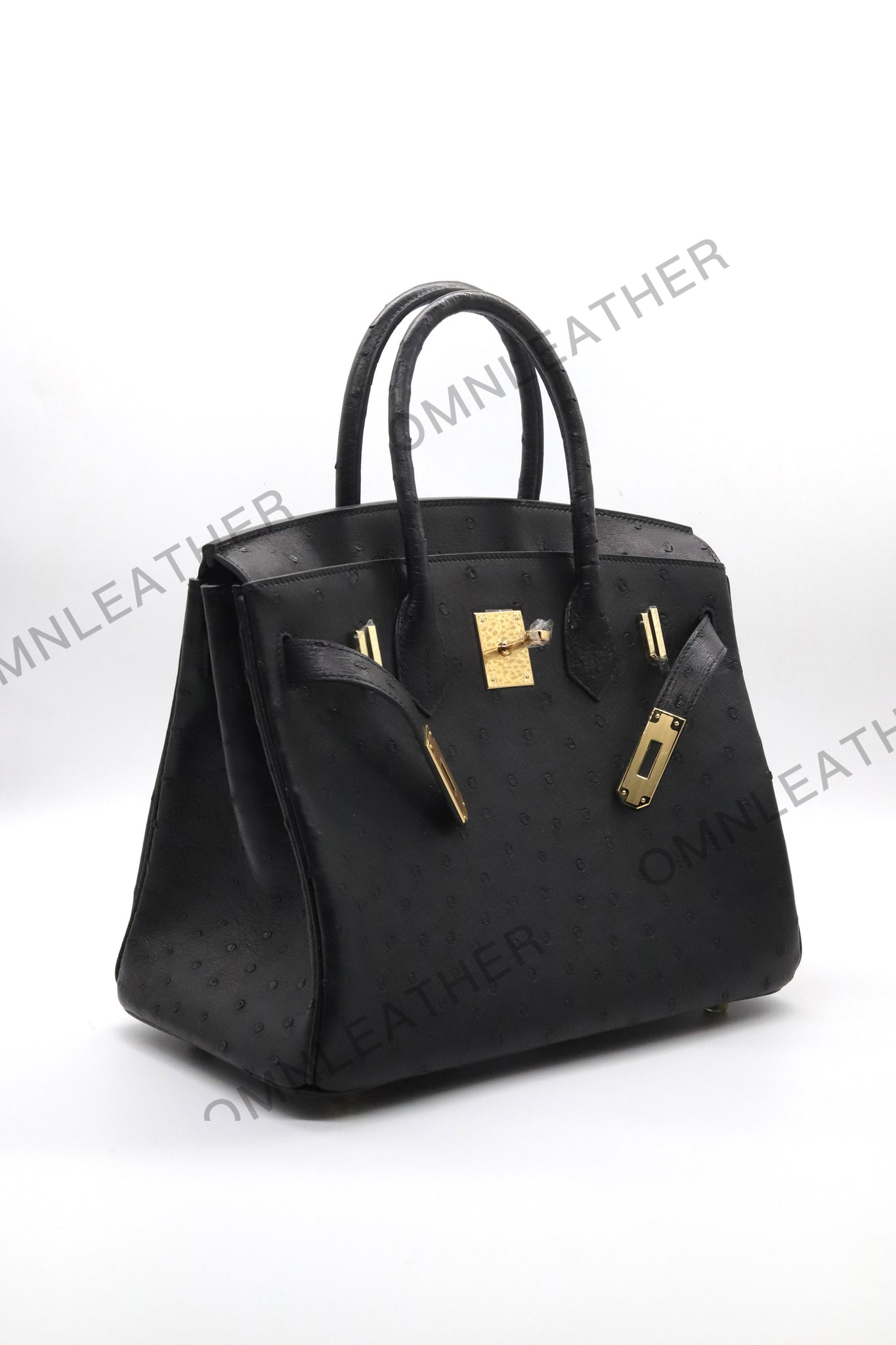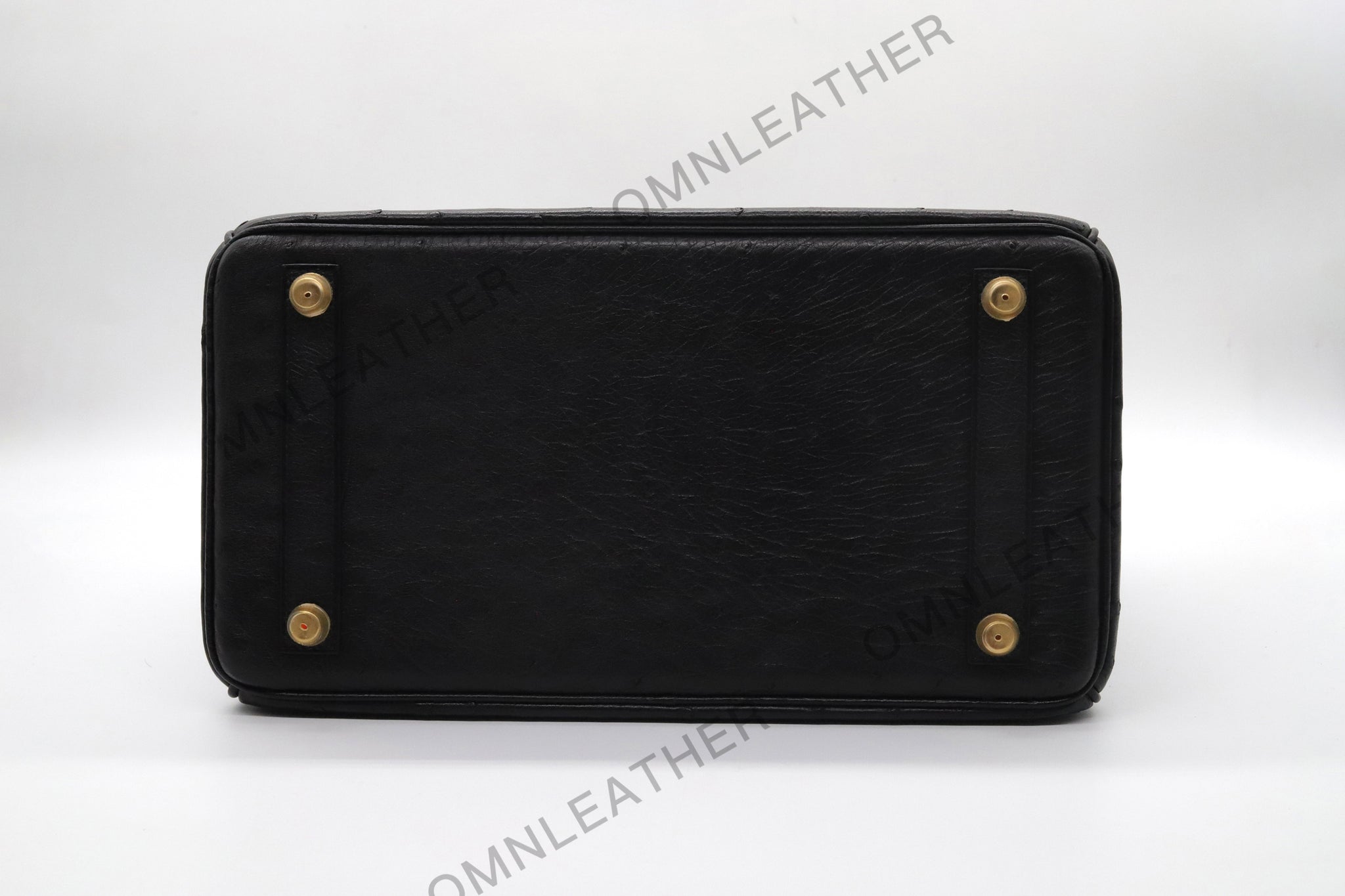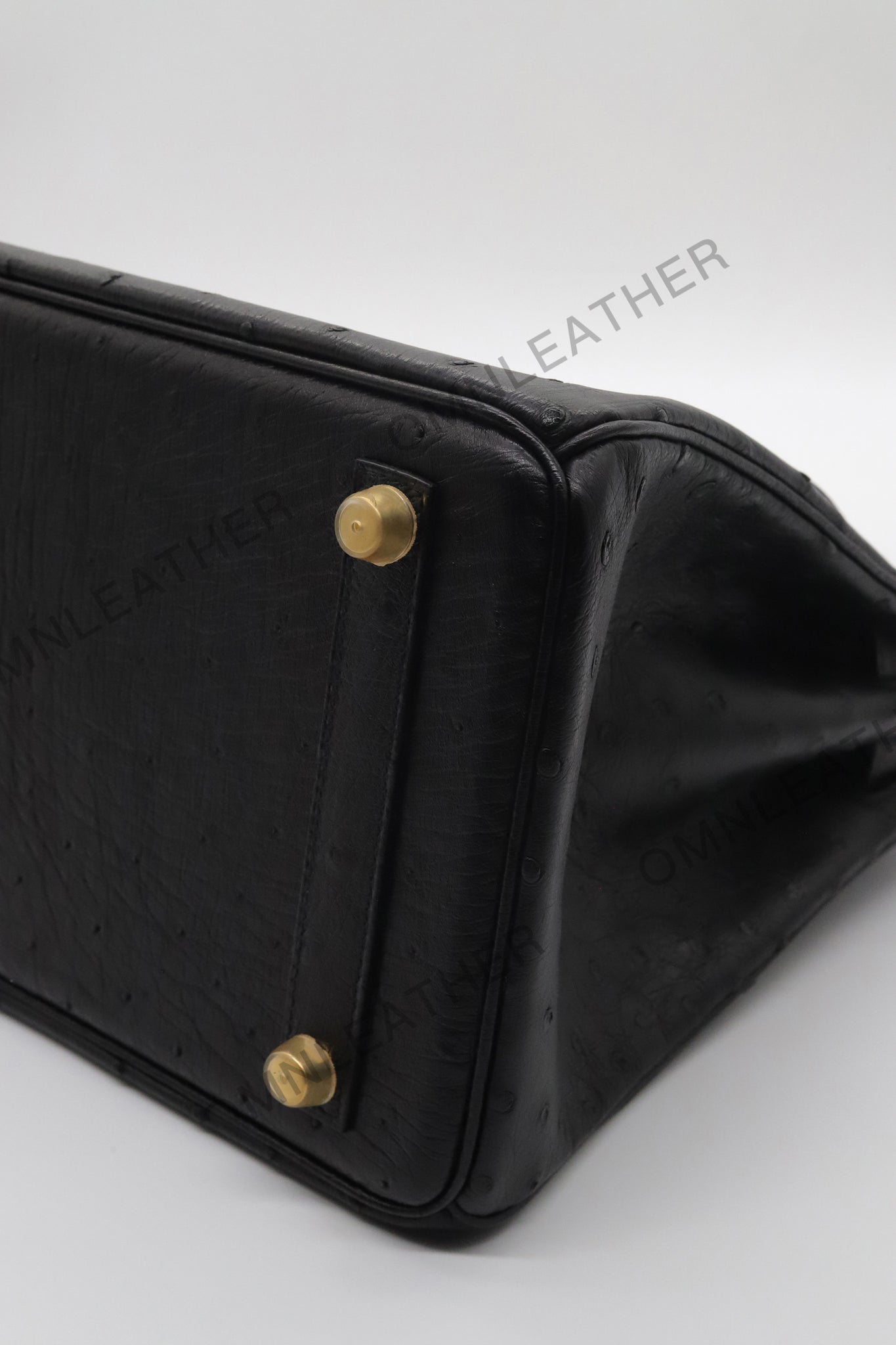 London 30 Birkin Style Ostrich Leather Black Color Gold Hardware