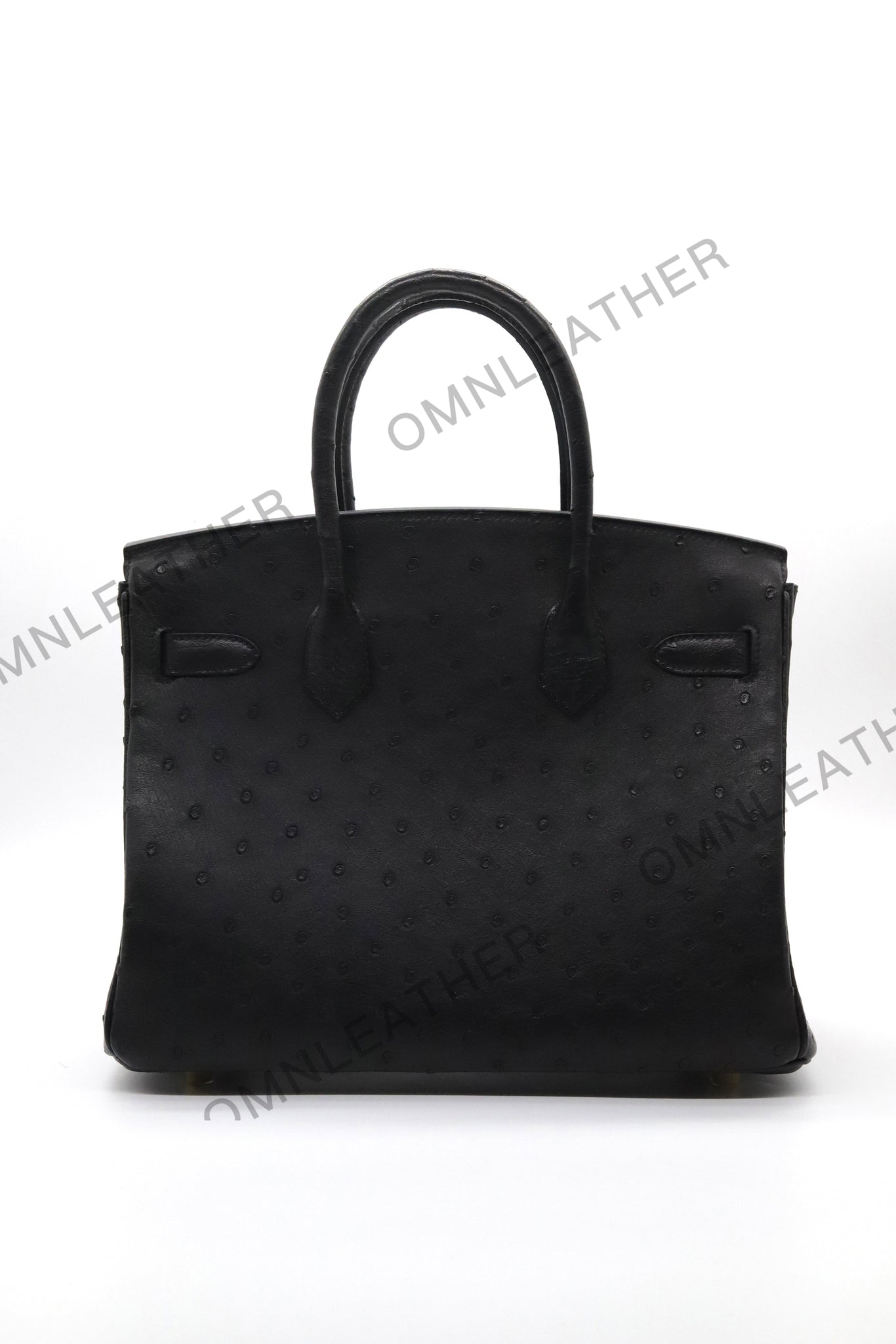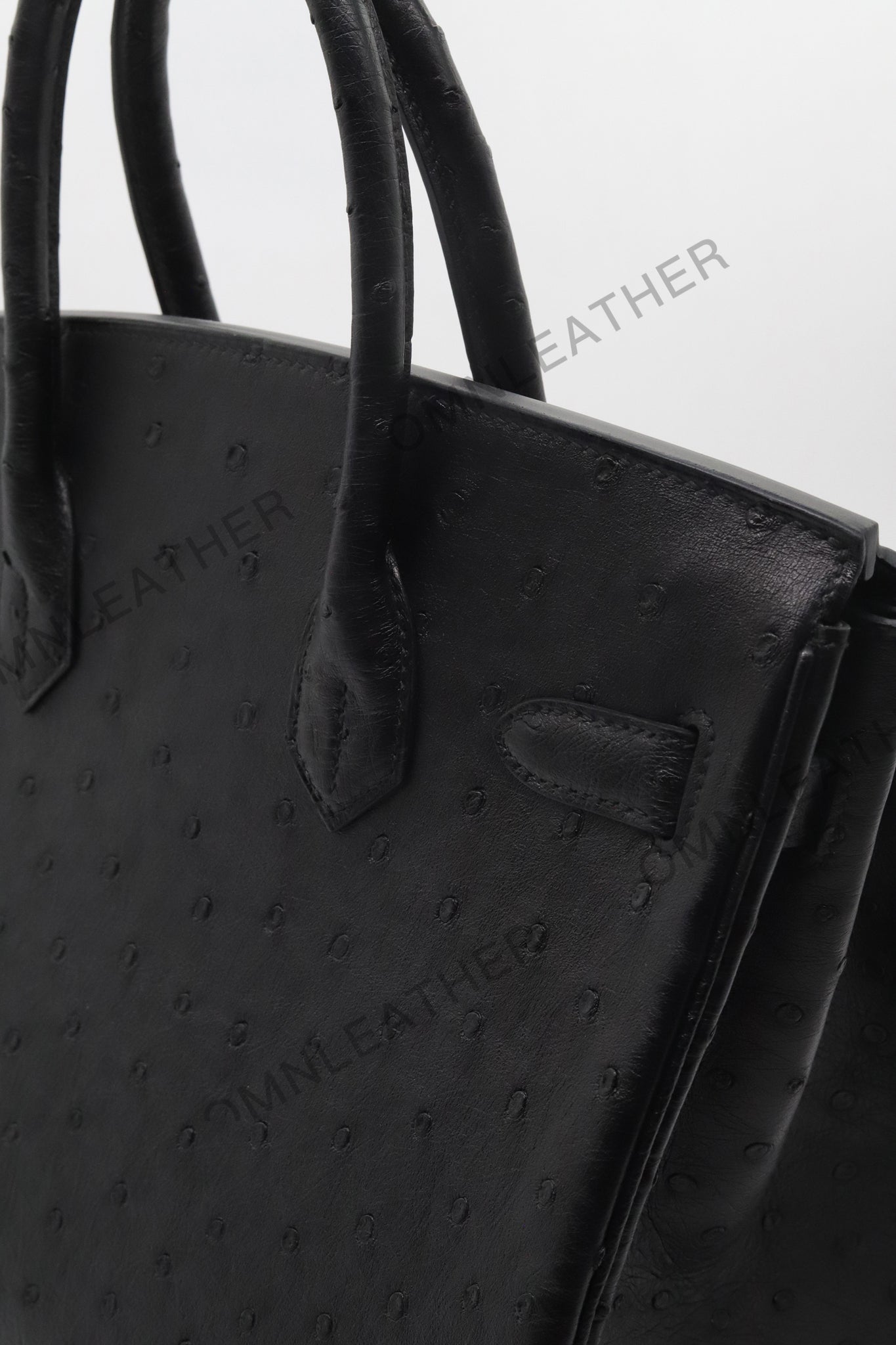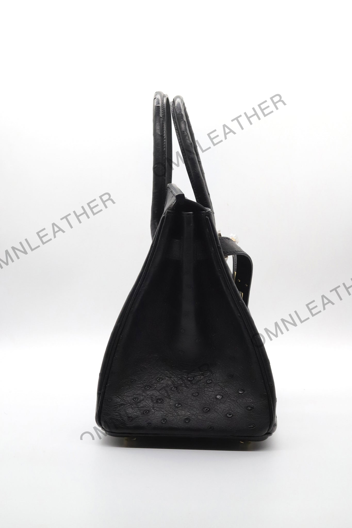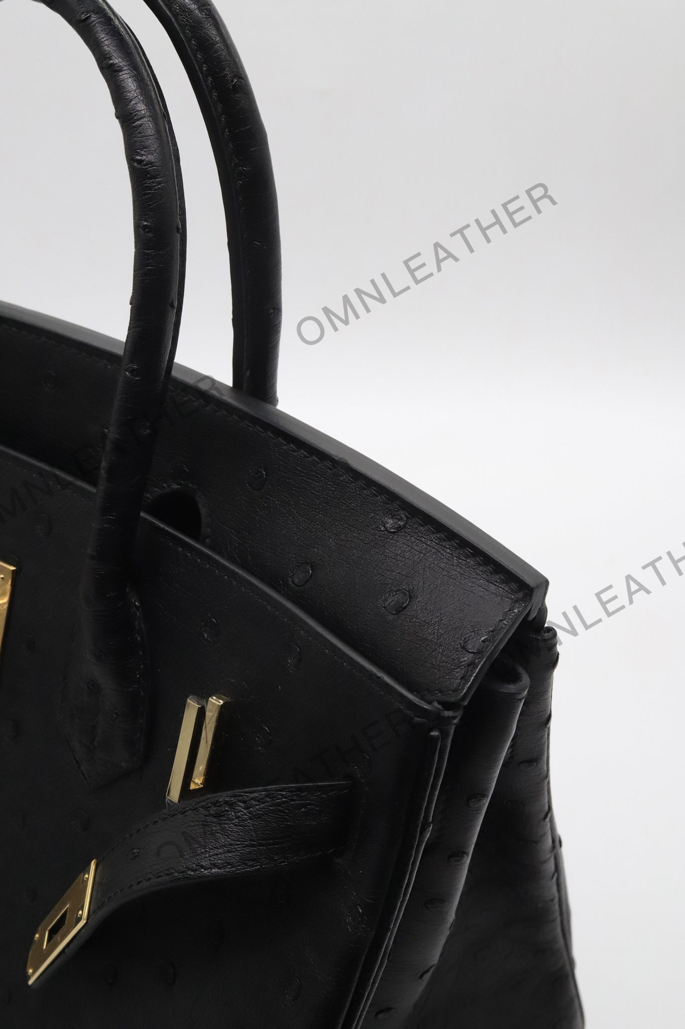 London 30 Birkin Style Ostrich Leather Black Color Gold Hardware