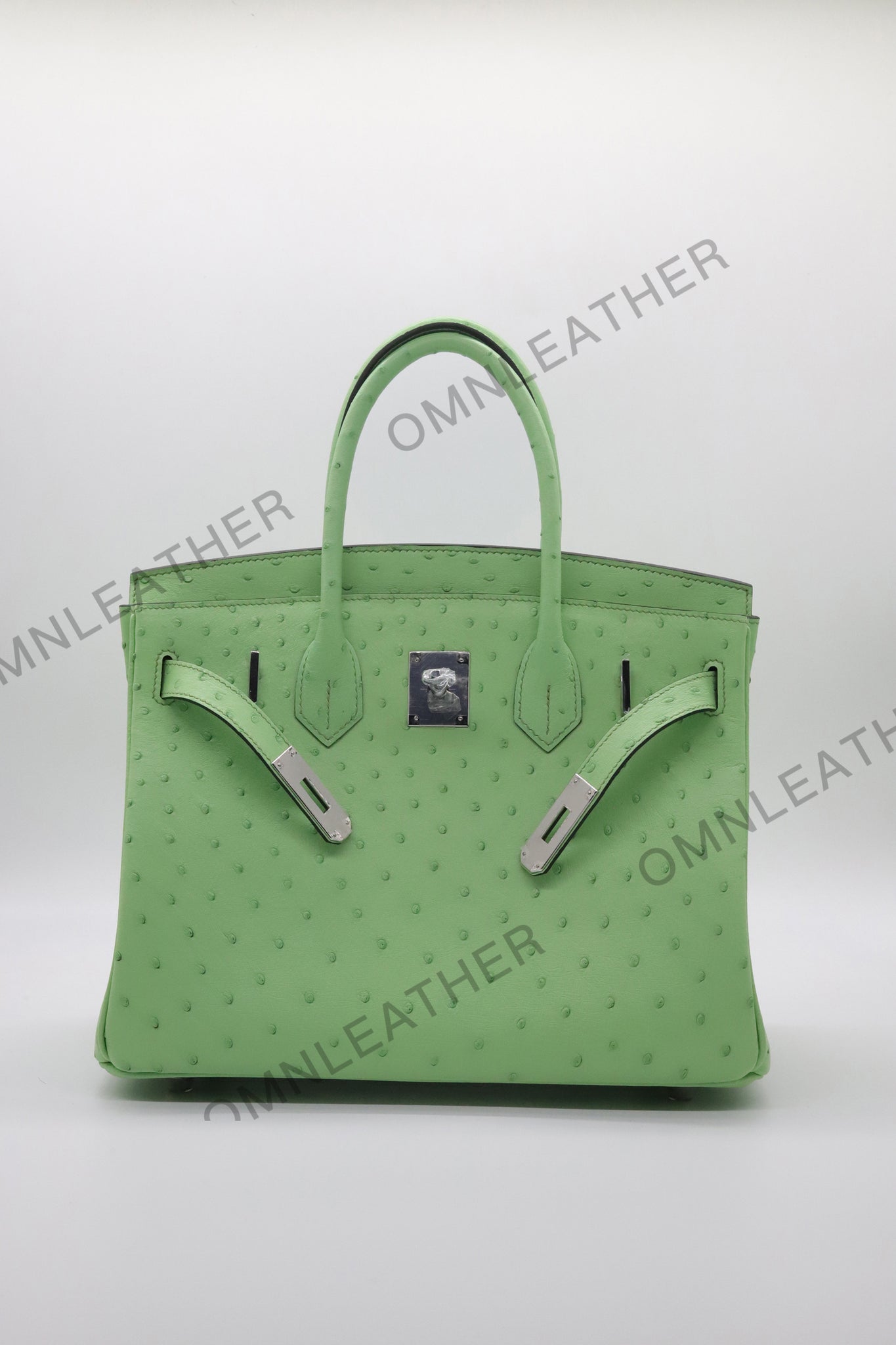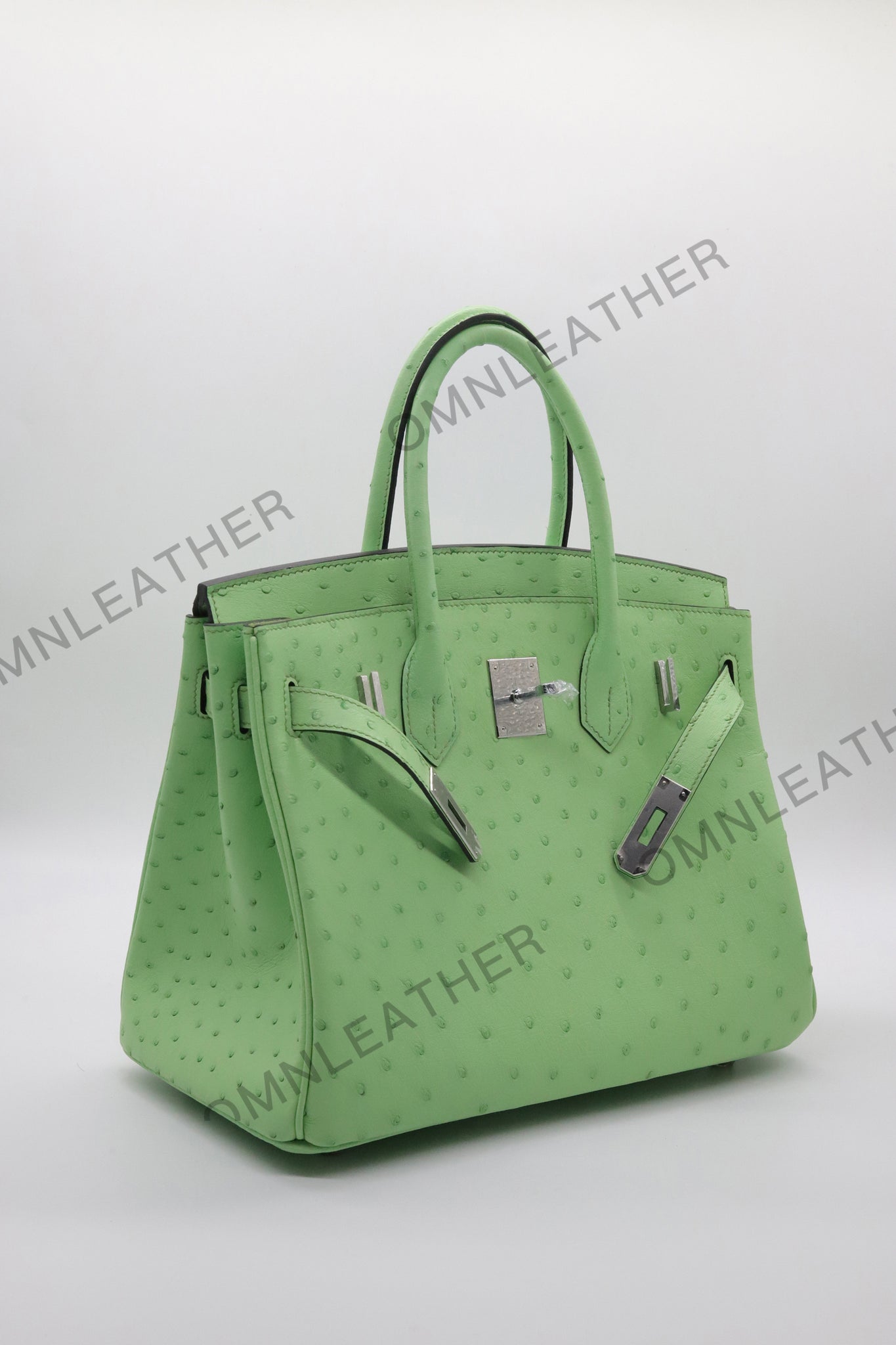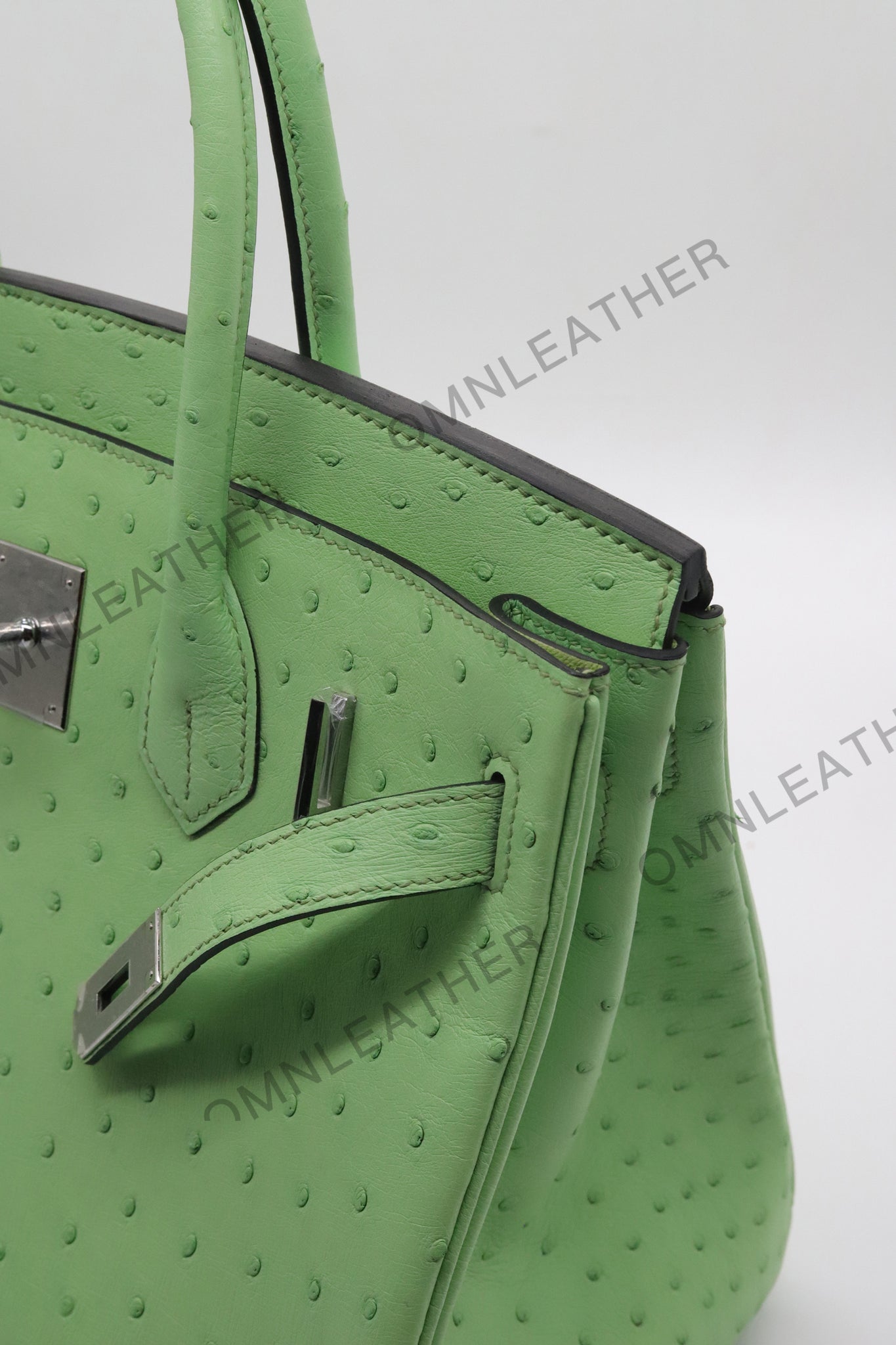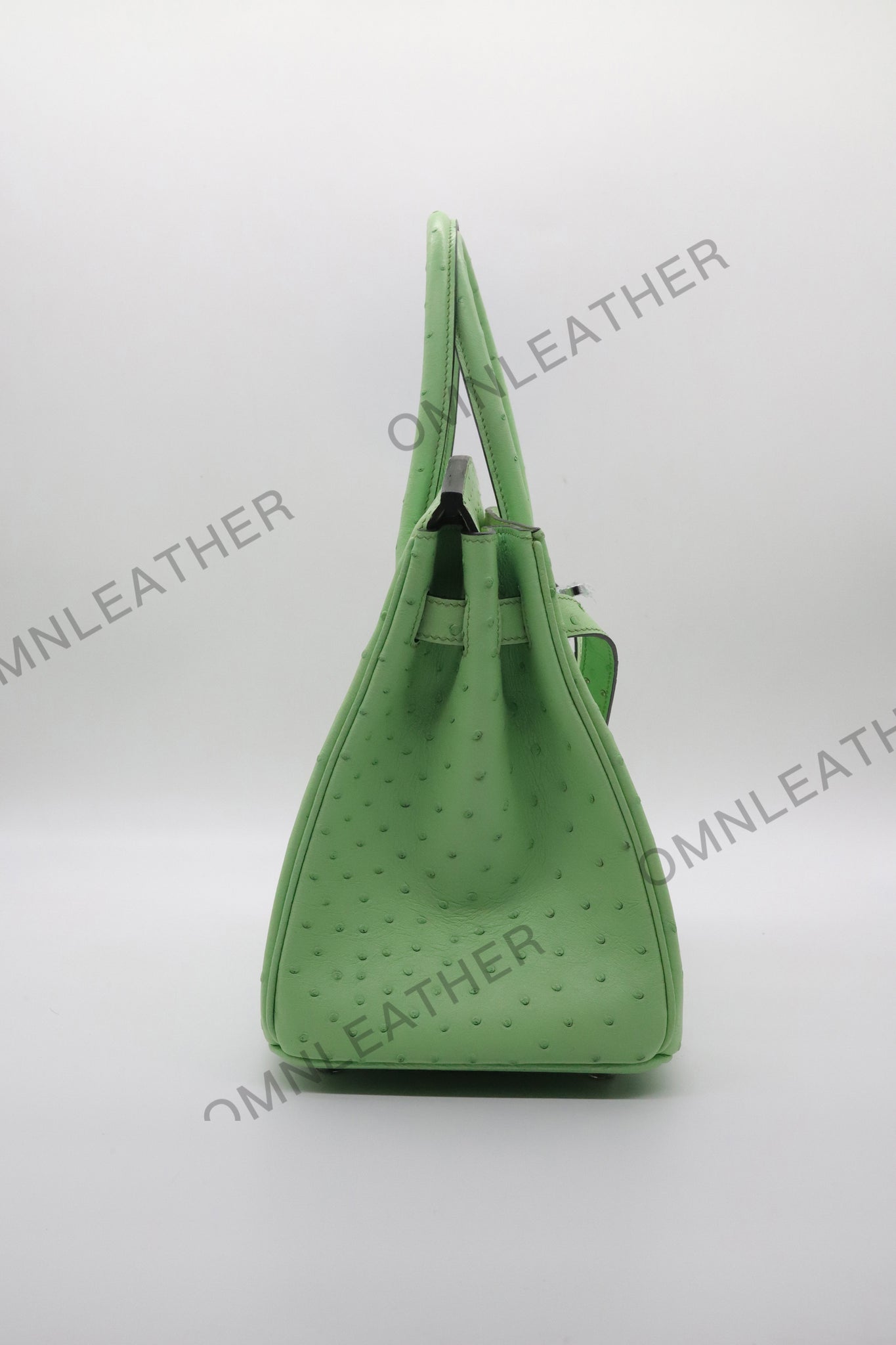 London 30 Birkin Style Ostrich Leather Green Color Silver Hardware