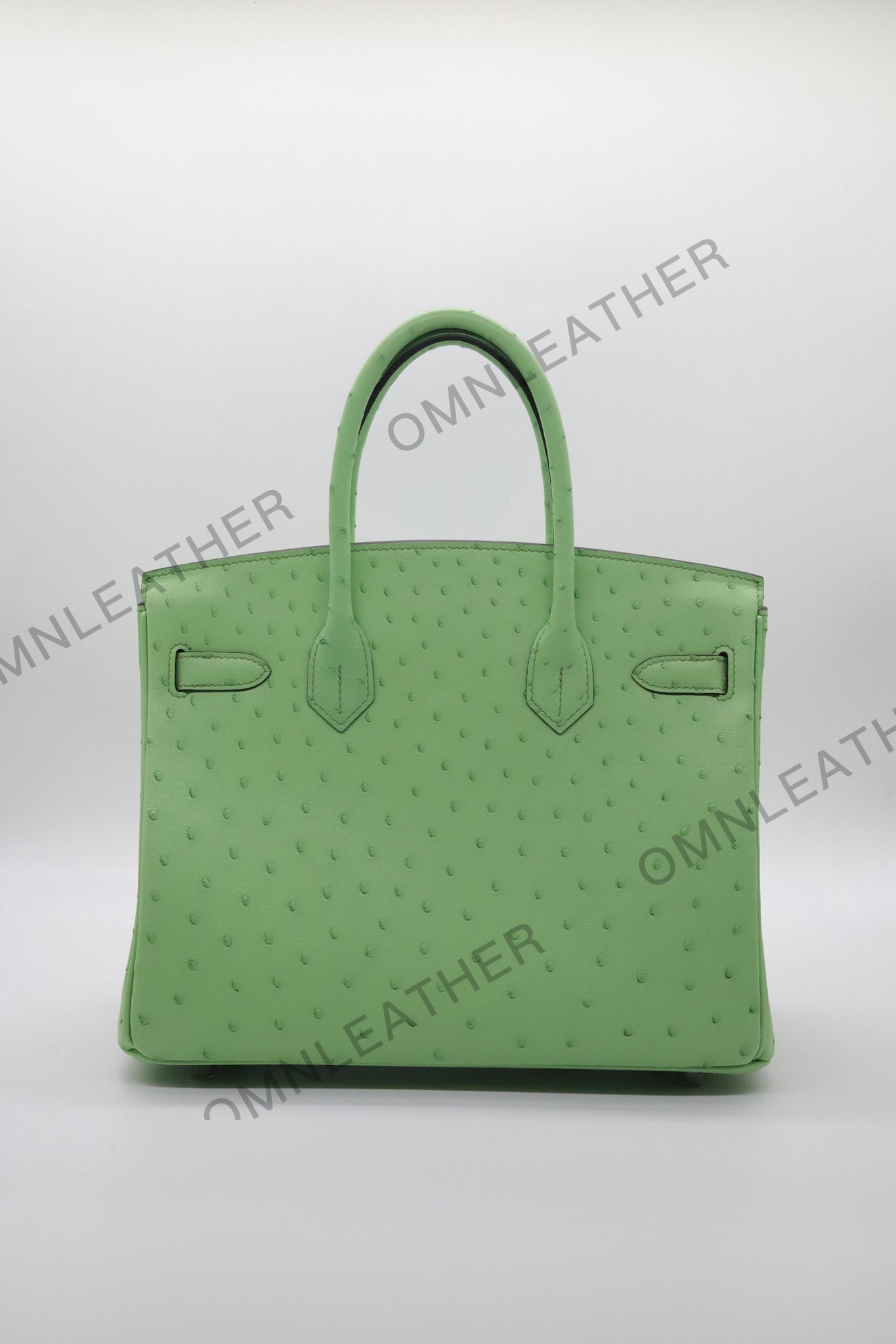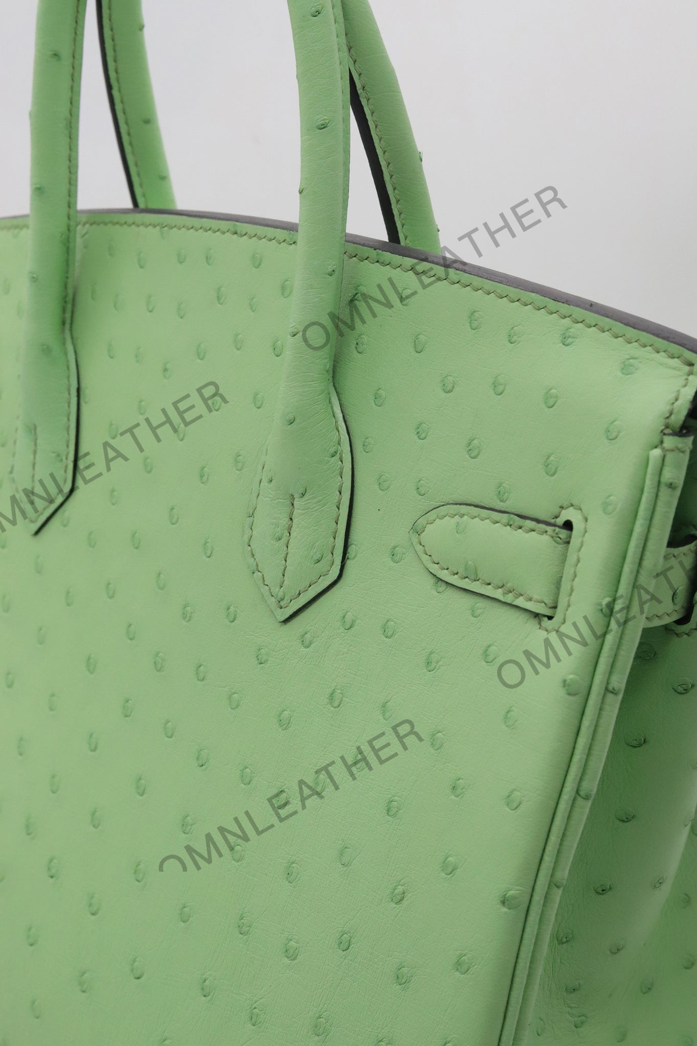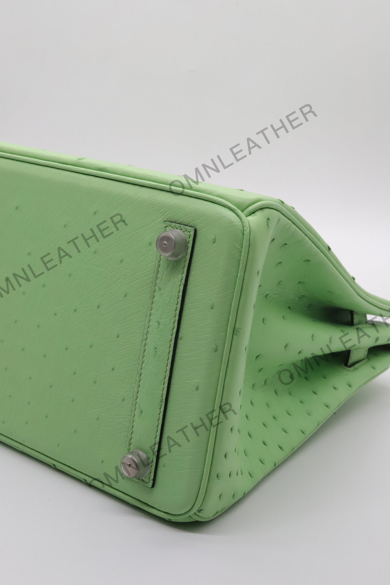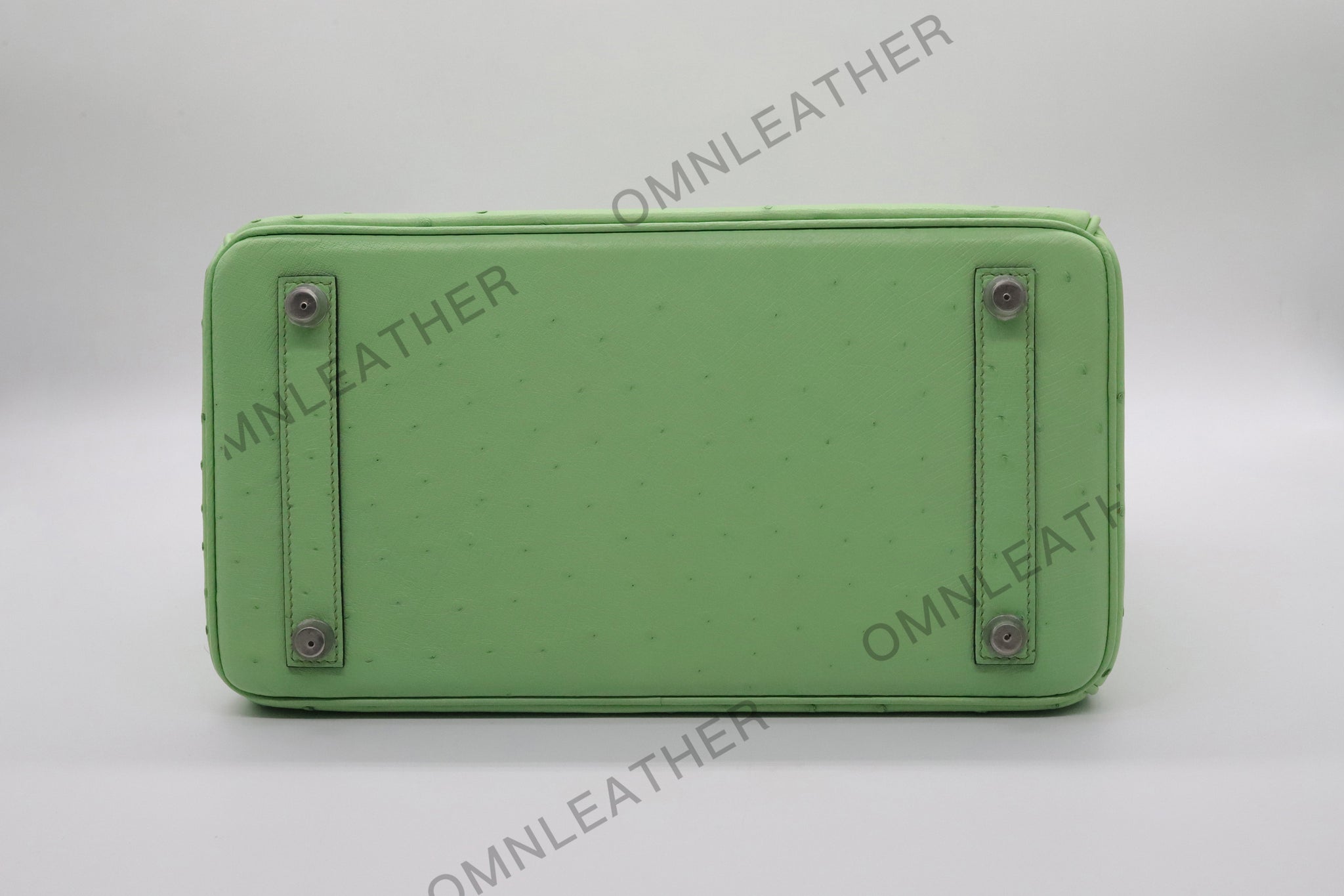 London 30 Birkin Style Ostrich Leather Green Color Silver Hardware