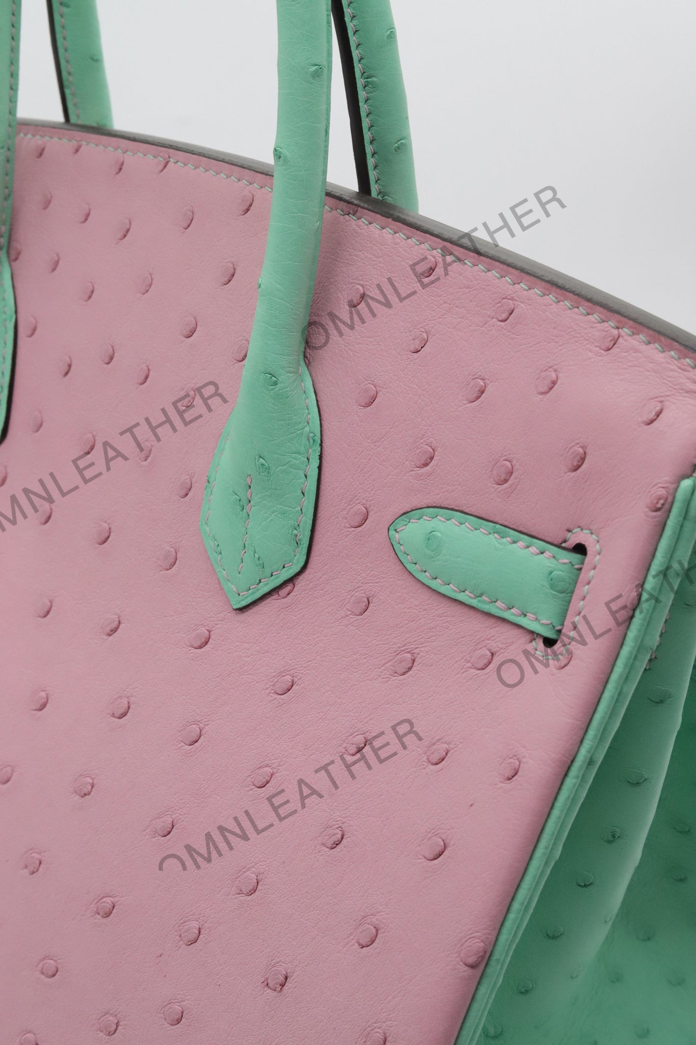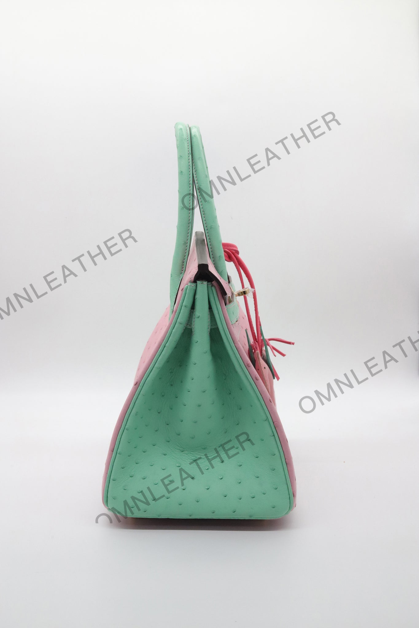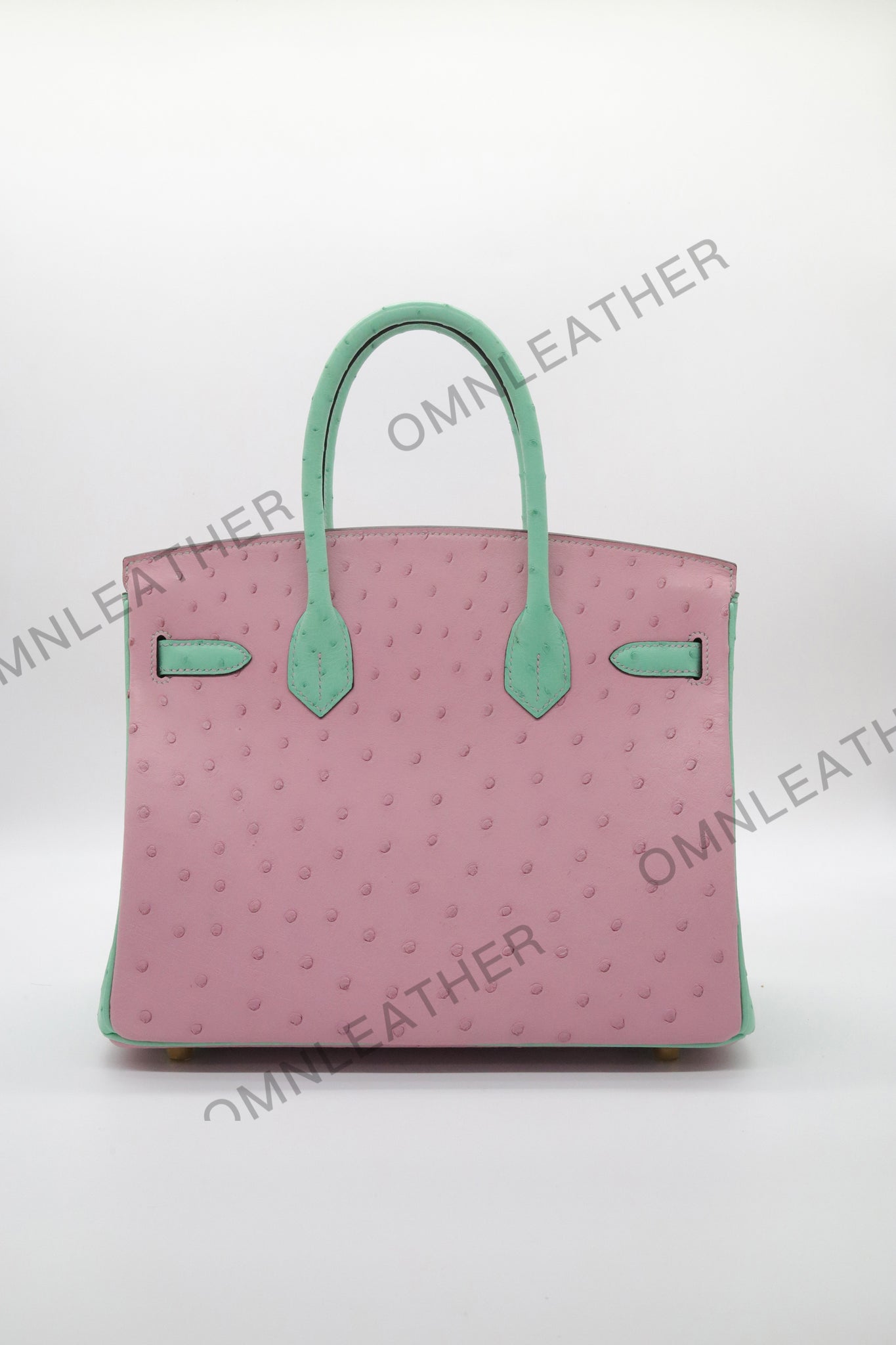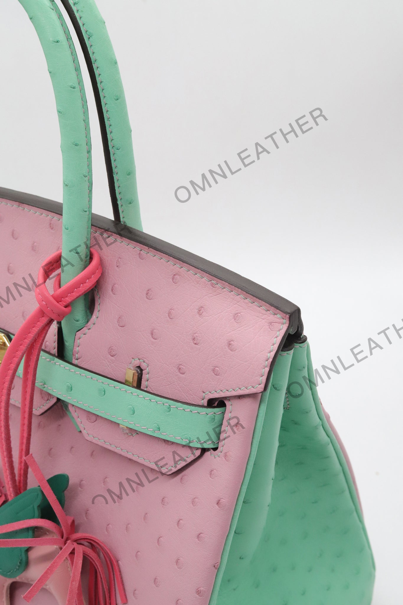 London 30 Birkin Style Ostrich Leather Pink Green Mix Color Gold Hardware