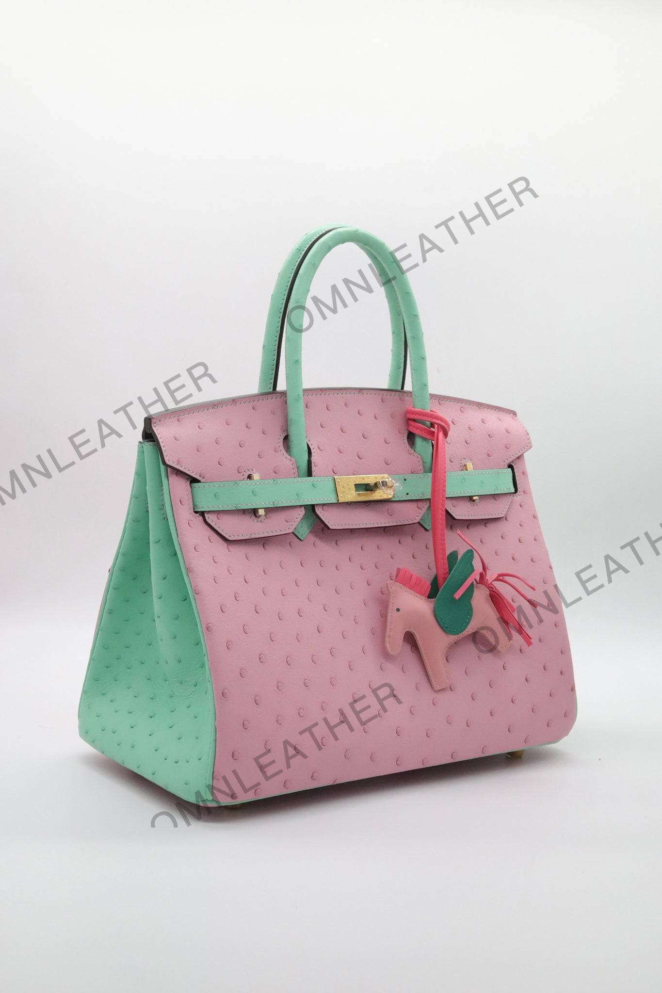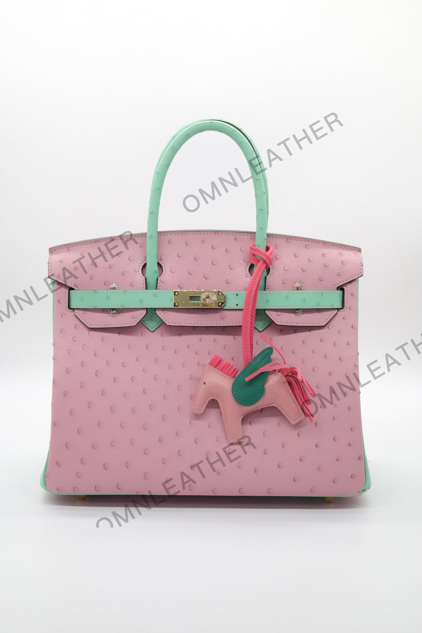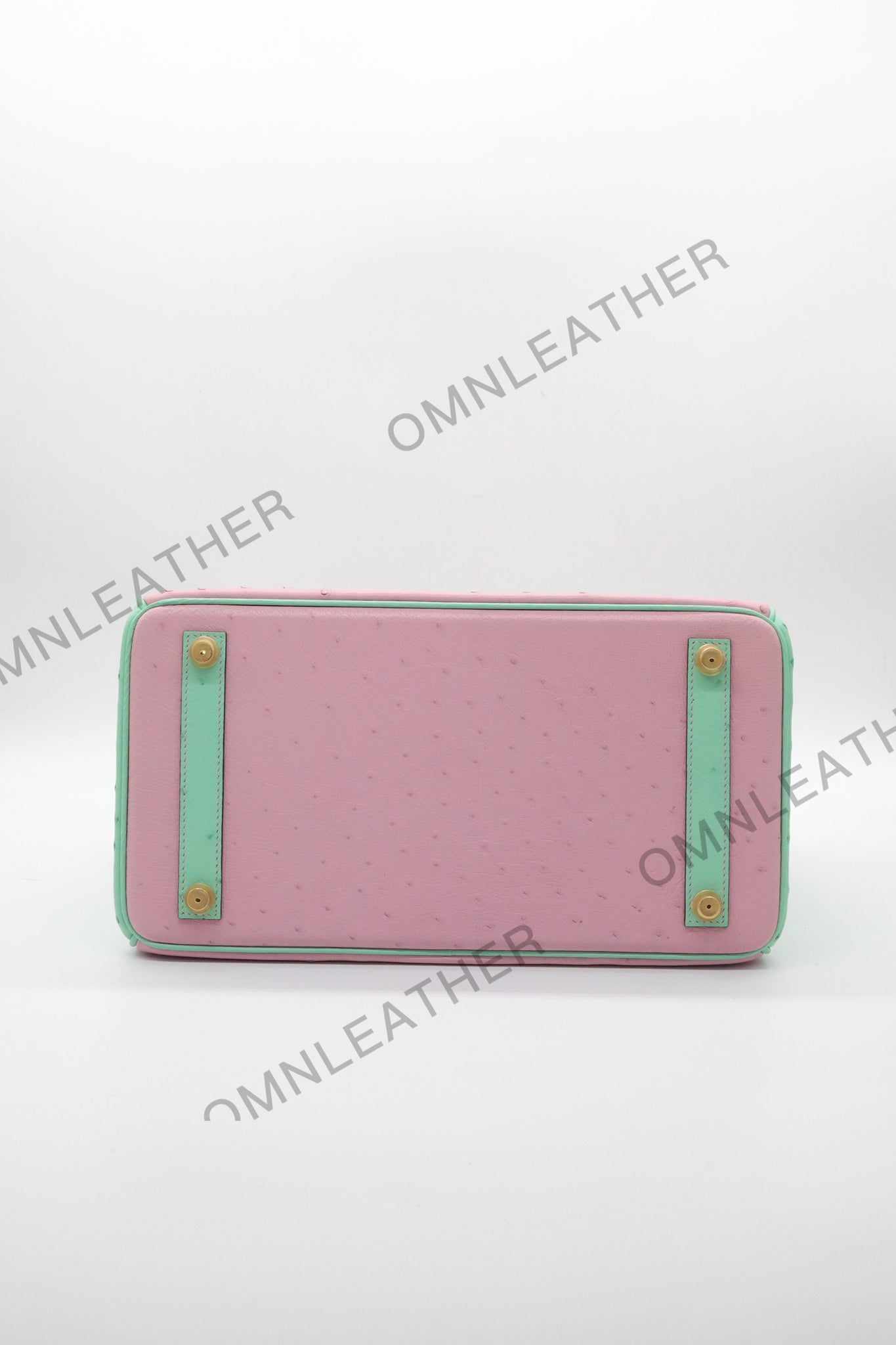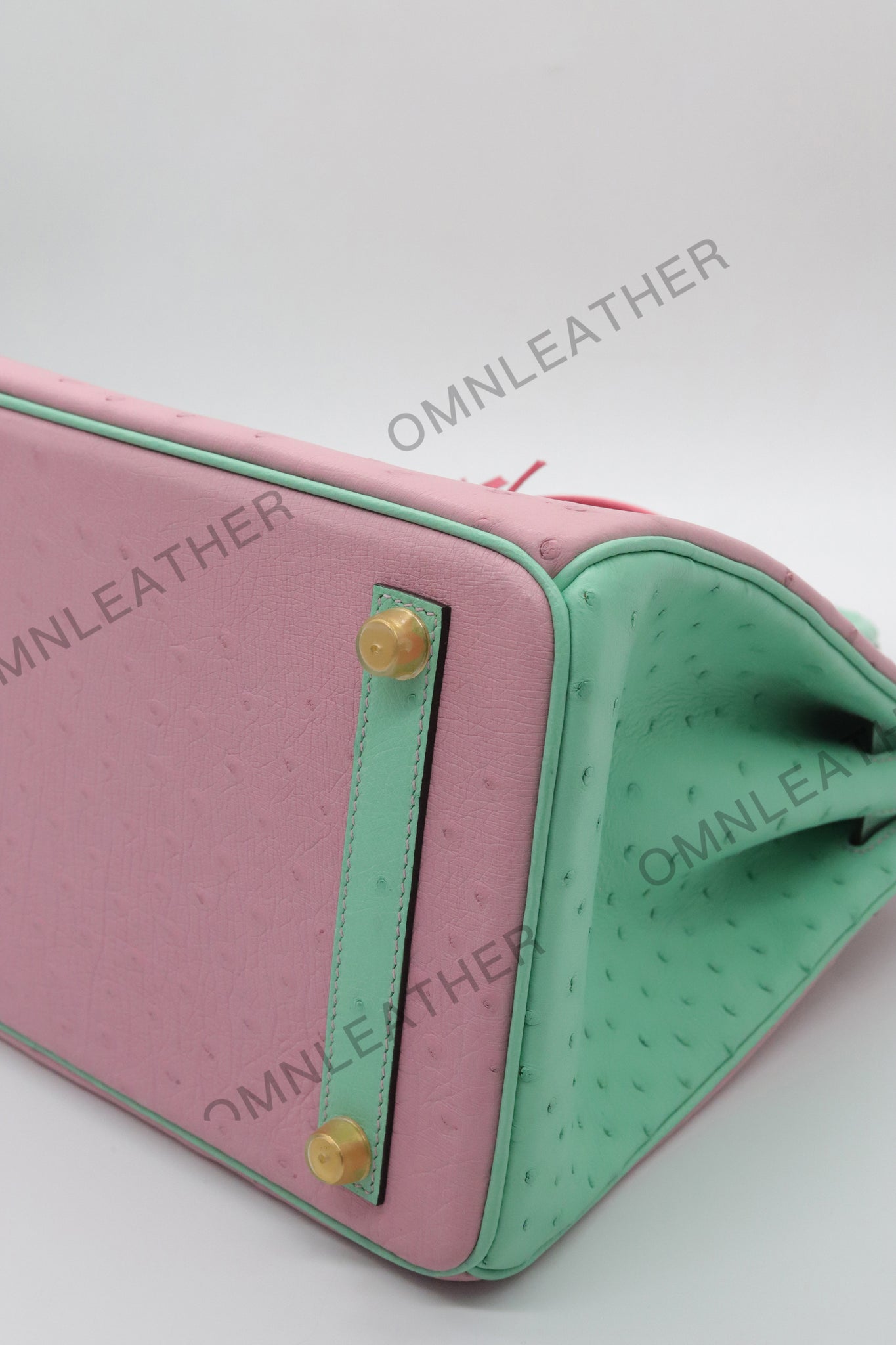 London 30 Birkin Style Ostrich Leather Pink Green Mix Color Gold Hardware