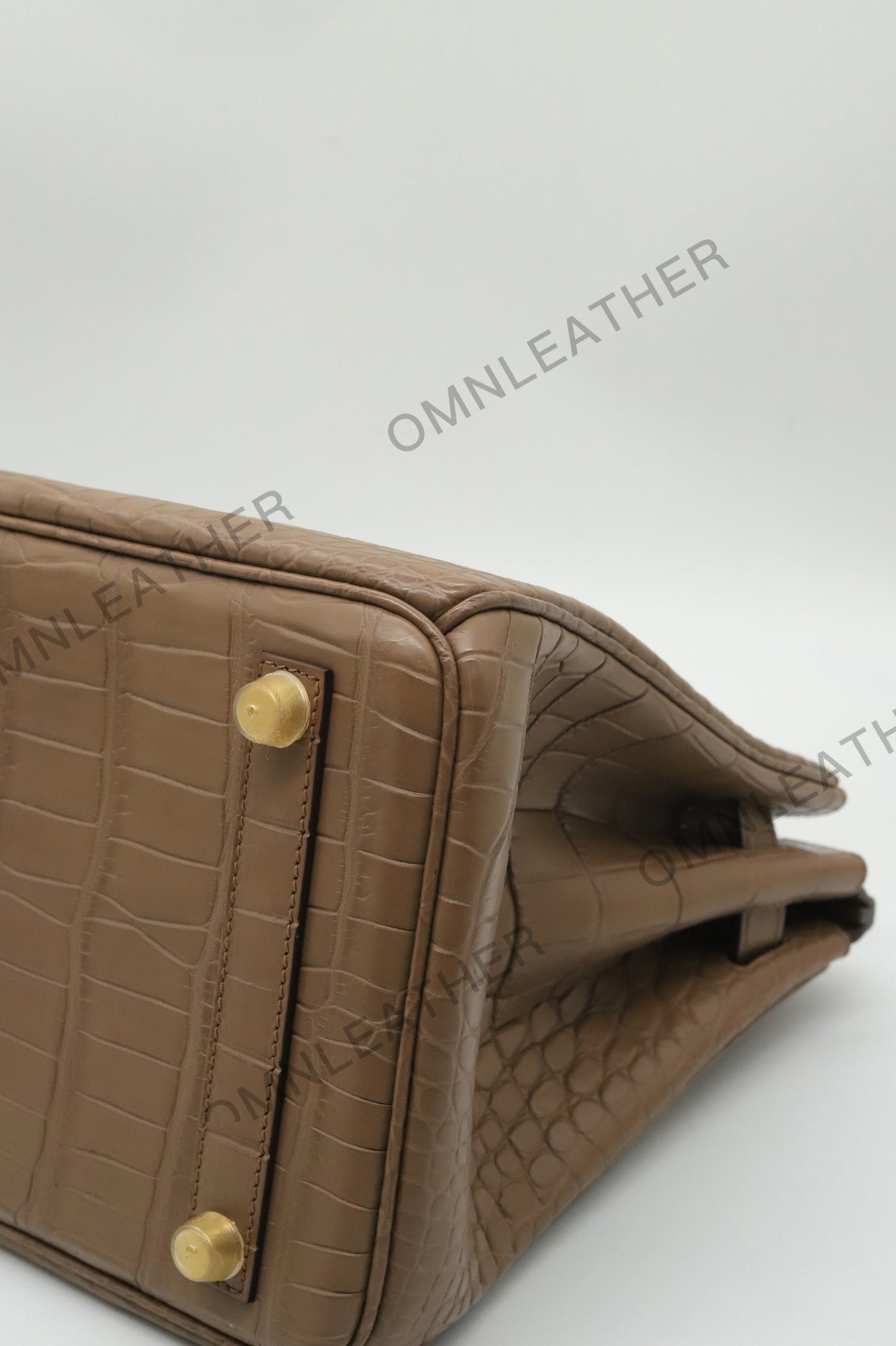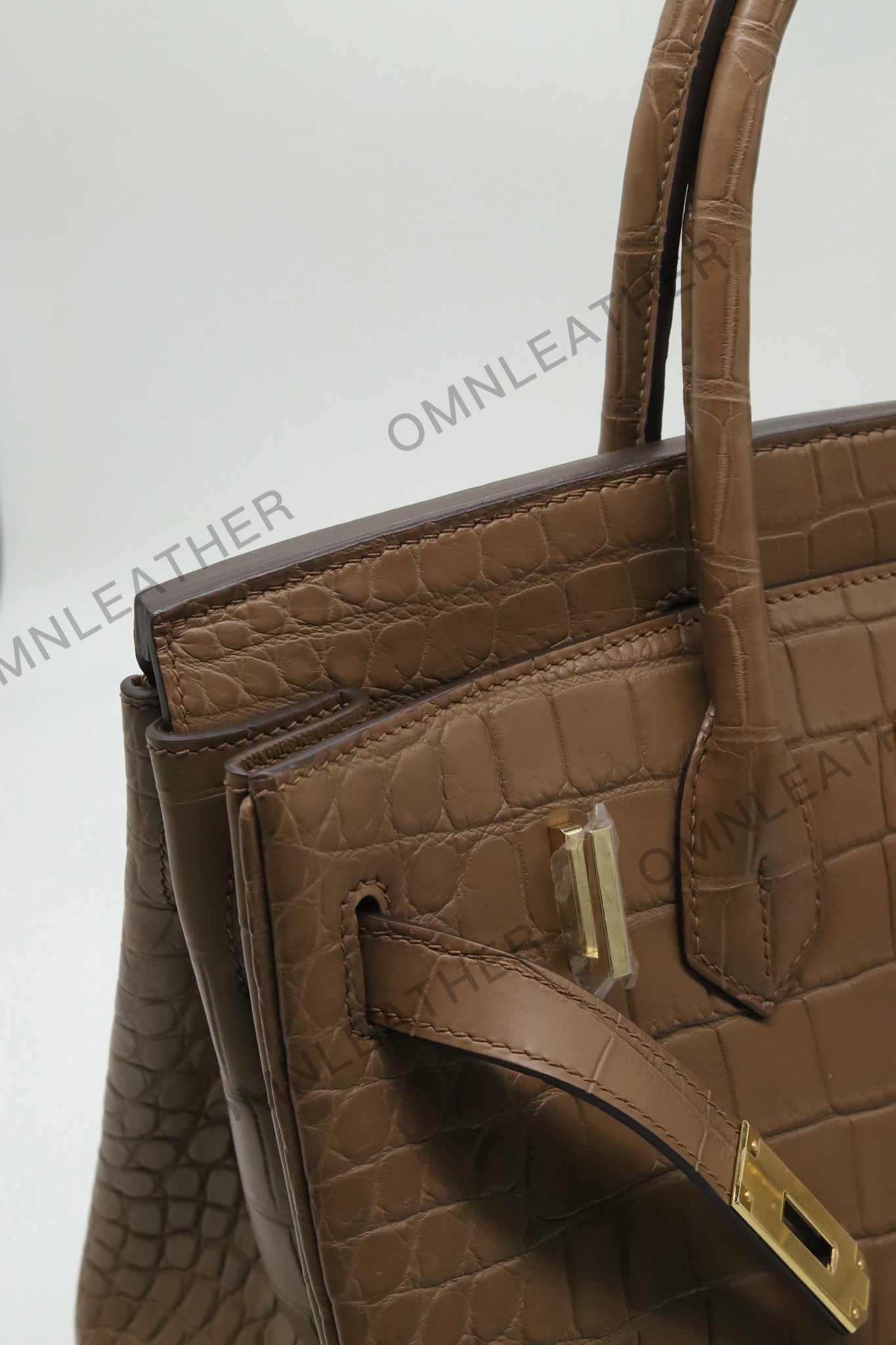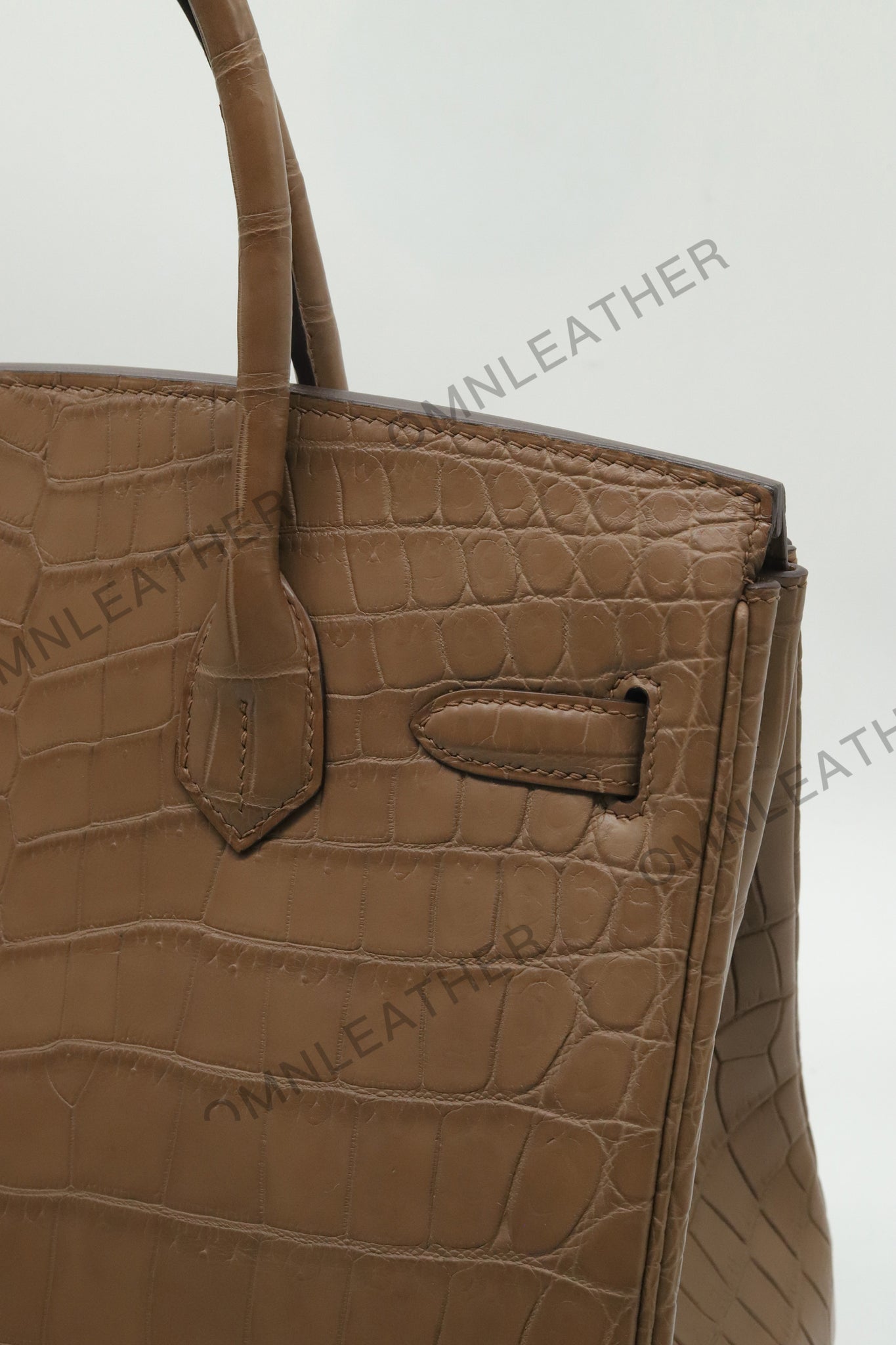 London 30 Birkin Style Saltwater Croc Leather Opaque Brown Color Gold Hardware