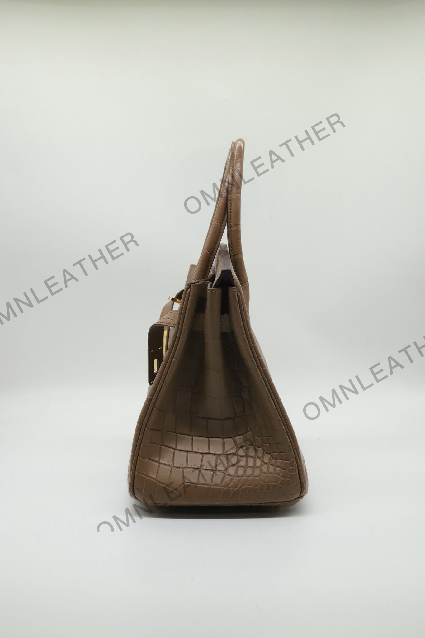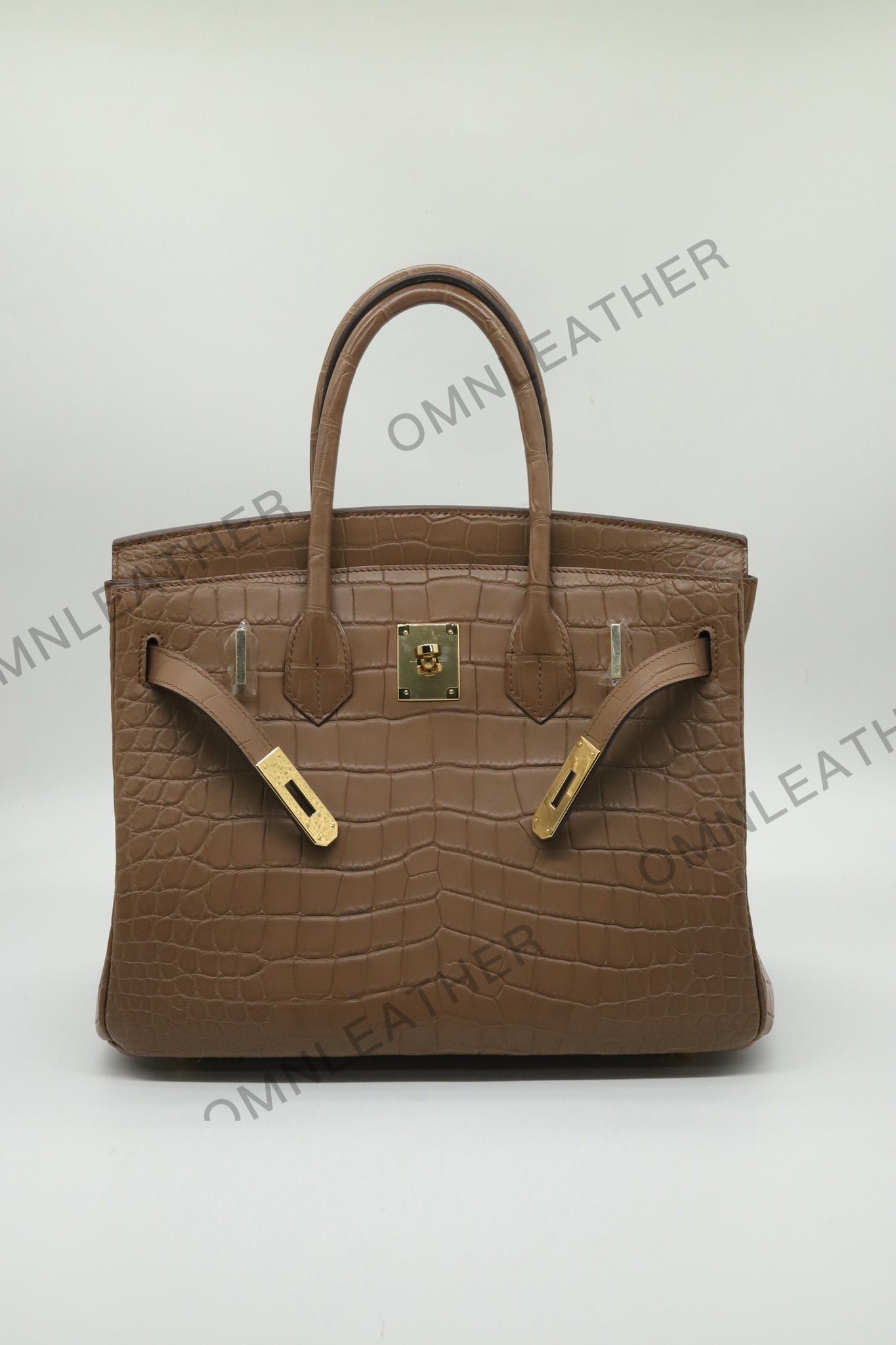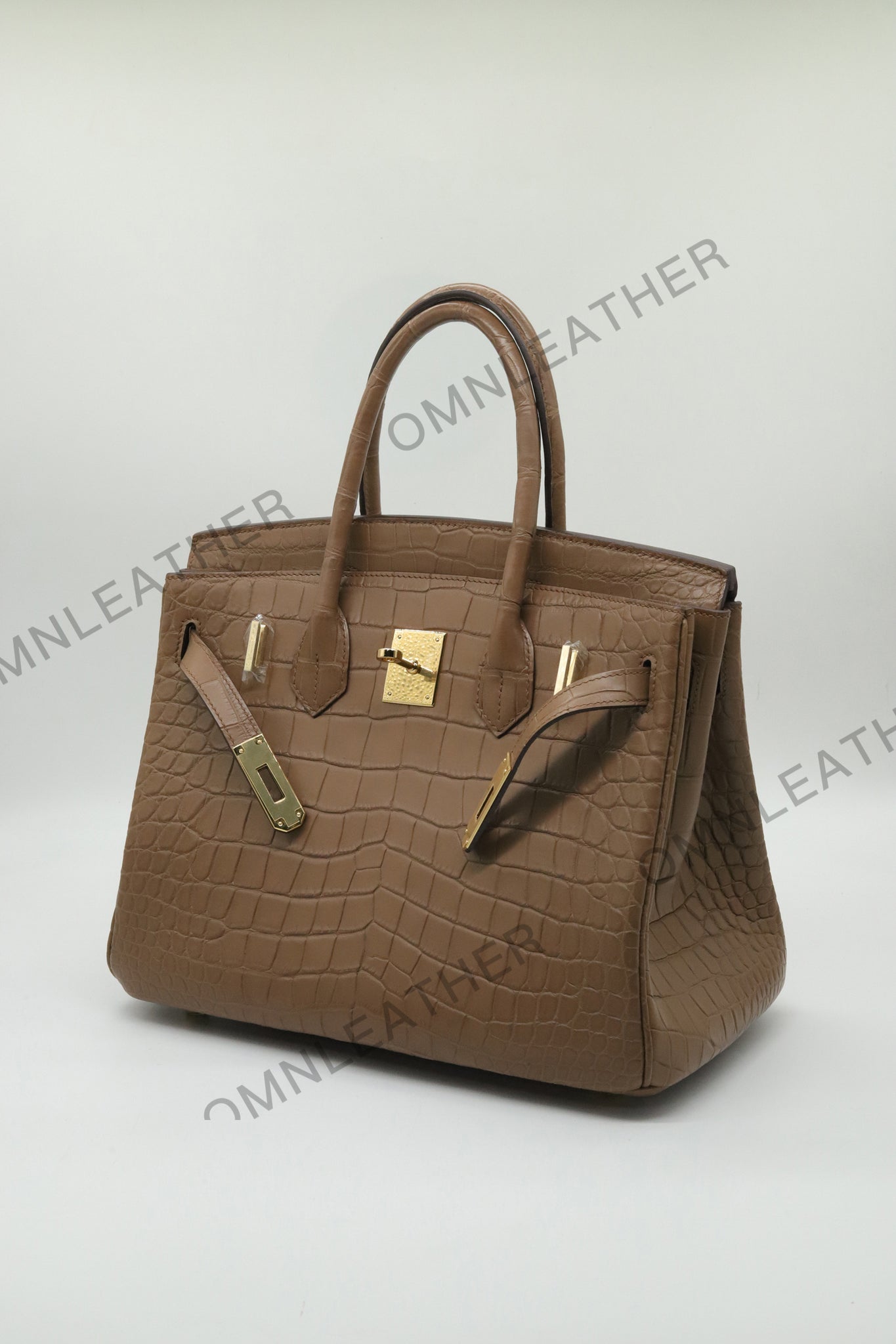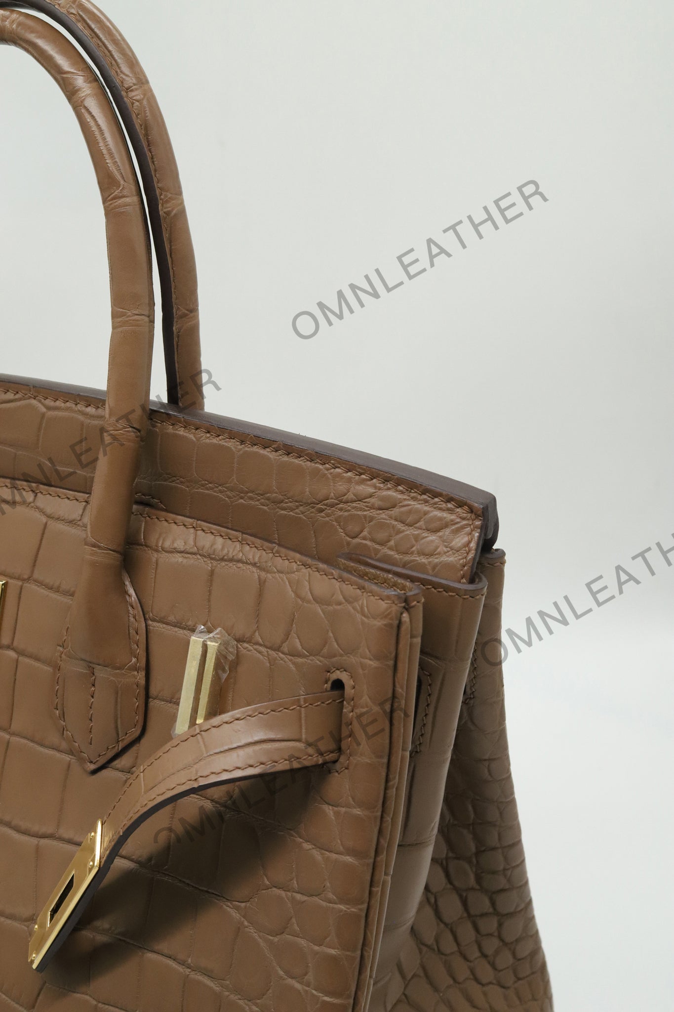 London 30 Birkin Style Saltwater Croc Leather Opaque Brown Color Gold Hardware