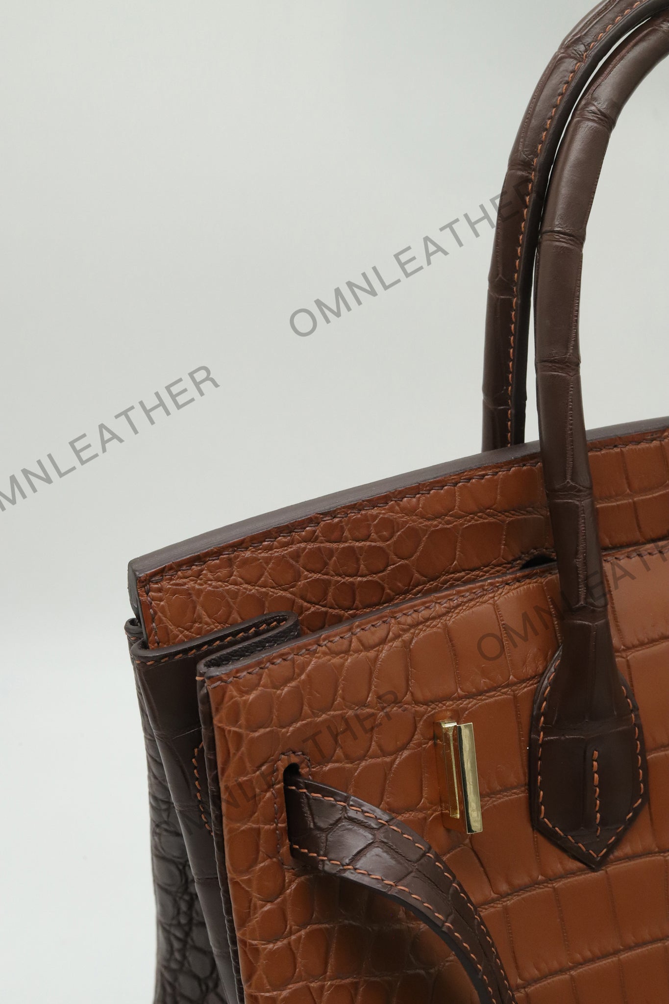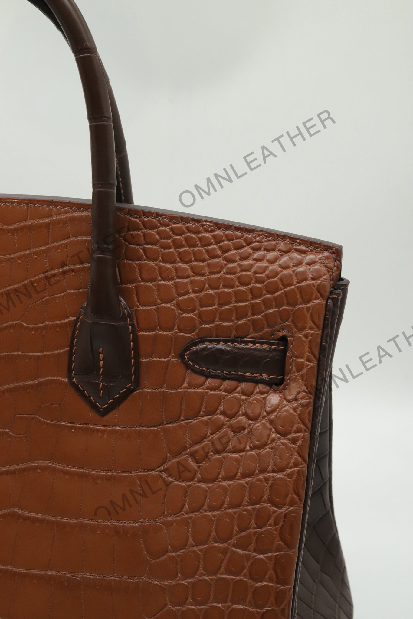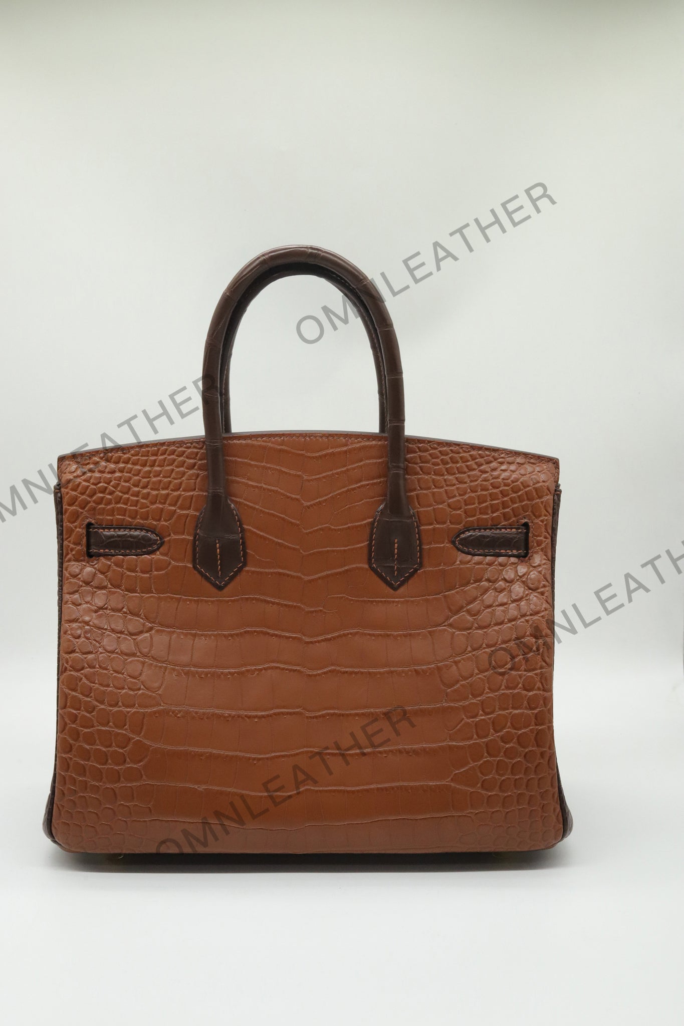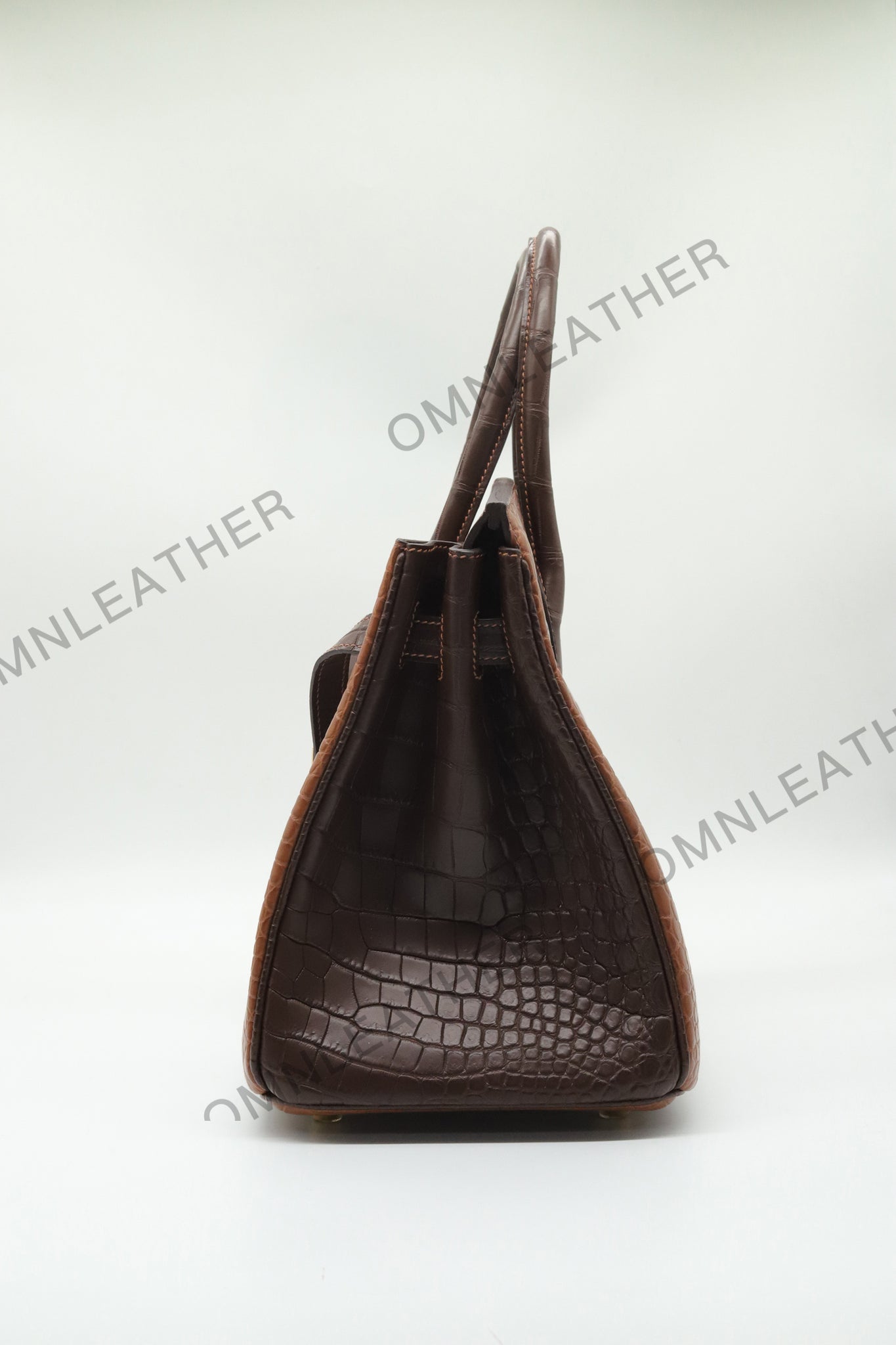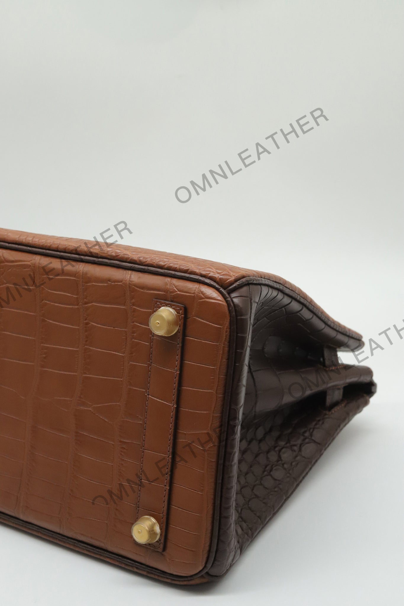 London 30 Birkin Style Saltwater Croc Leather Opaque Brown Ebony Mix Color Gold Hardware