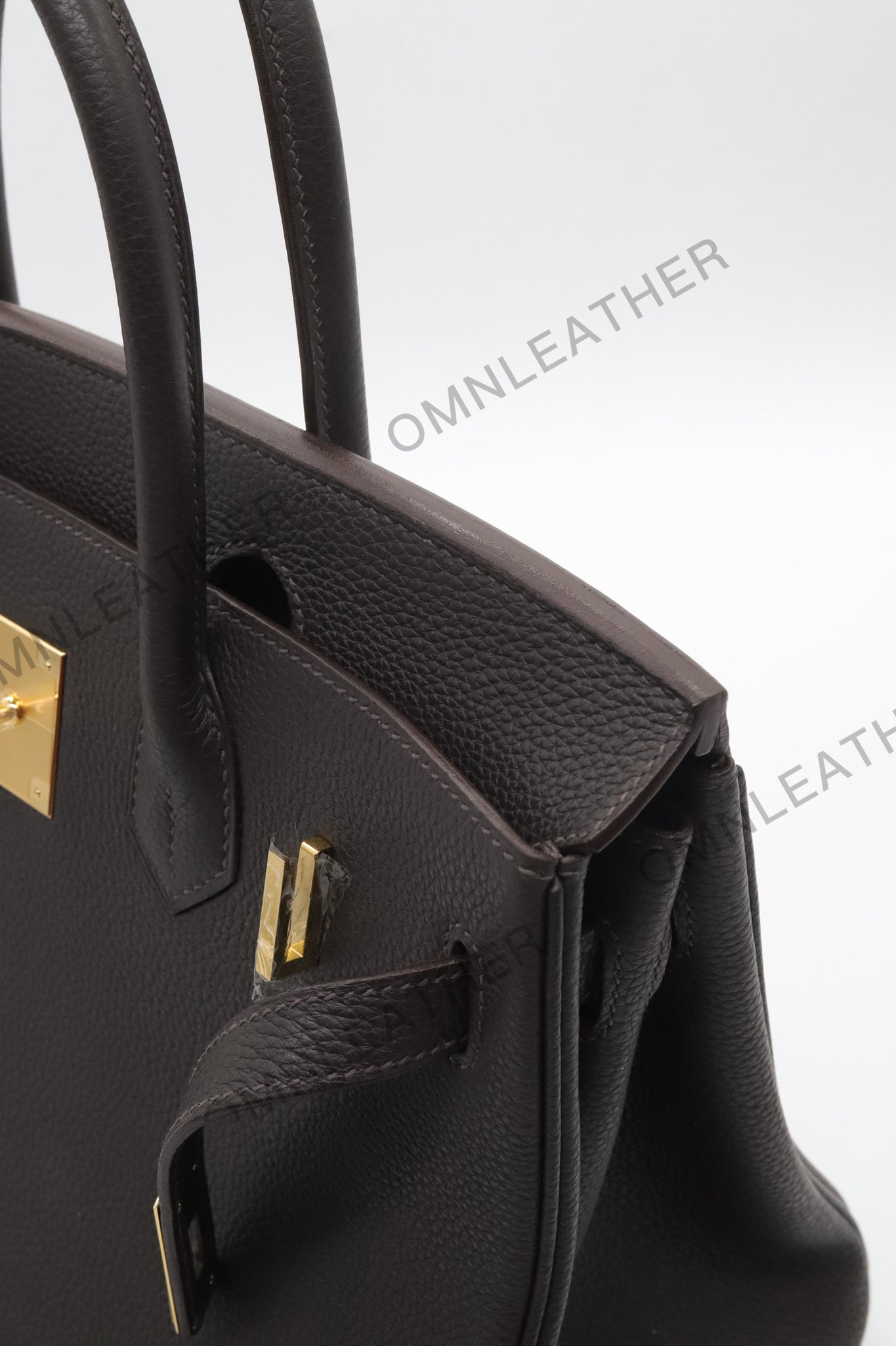 London 30 Birkin Style Togo Leather Ebony Color Gold Hardware