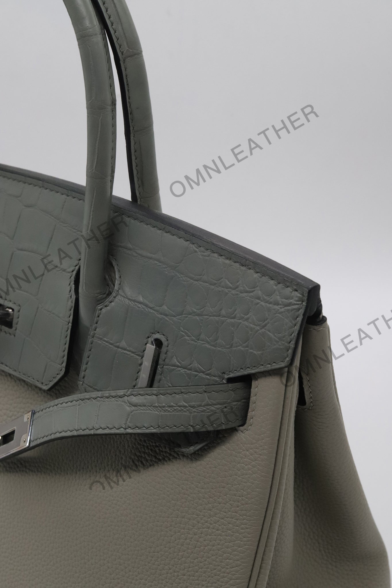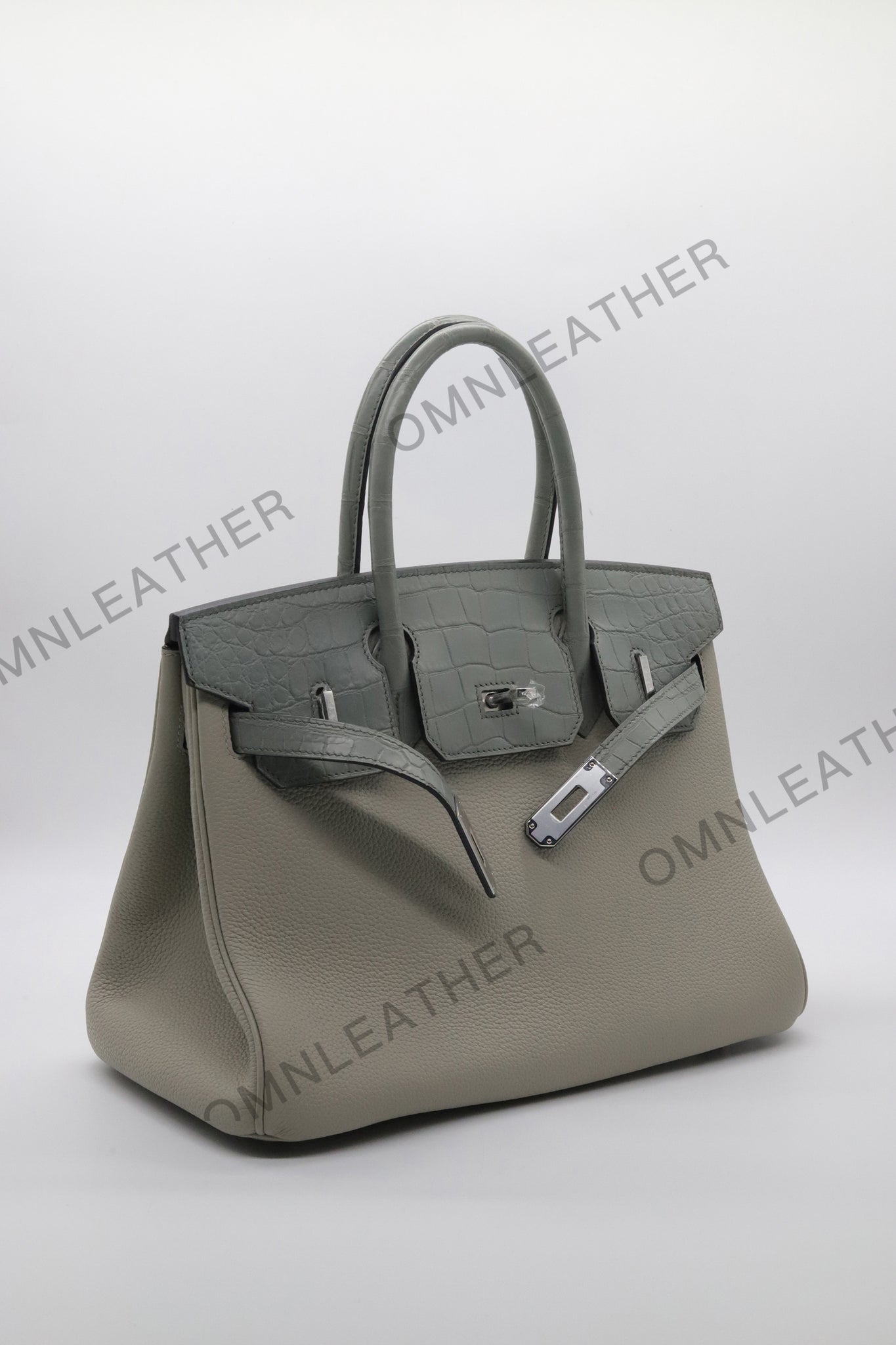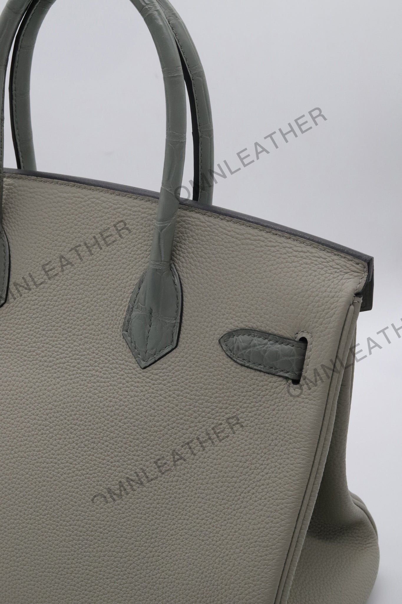 London 30 Birkin Style Touch Leather Grey Color Silver Hardware