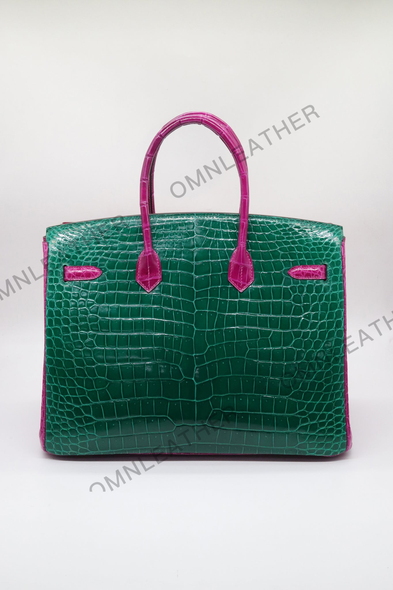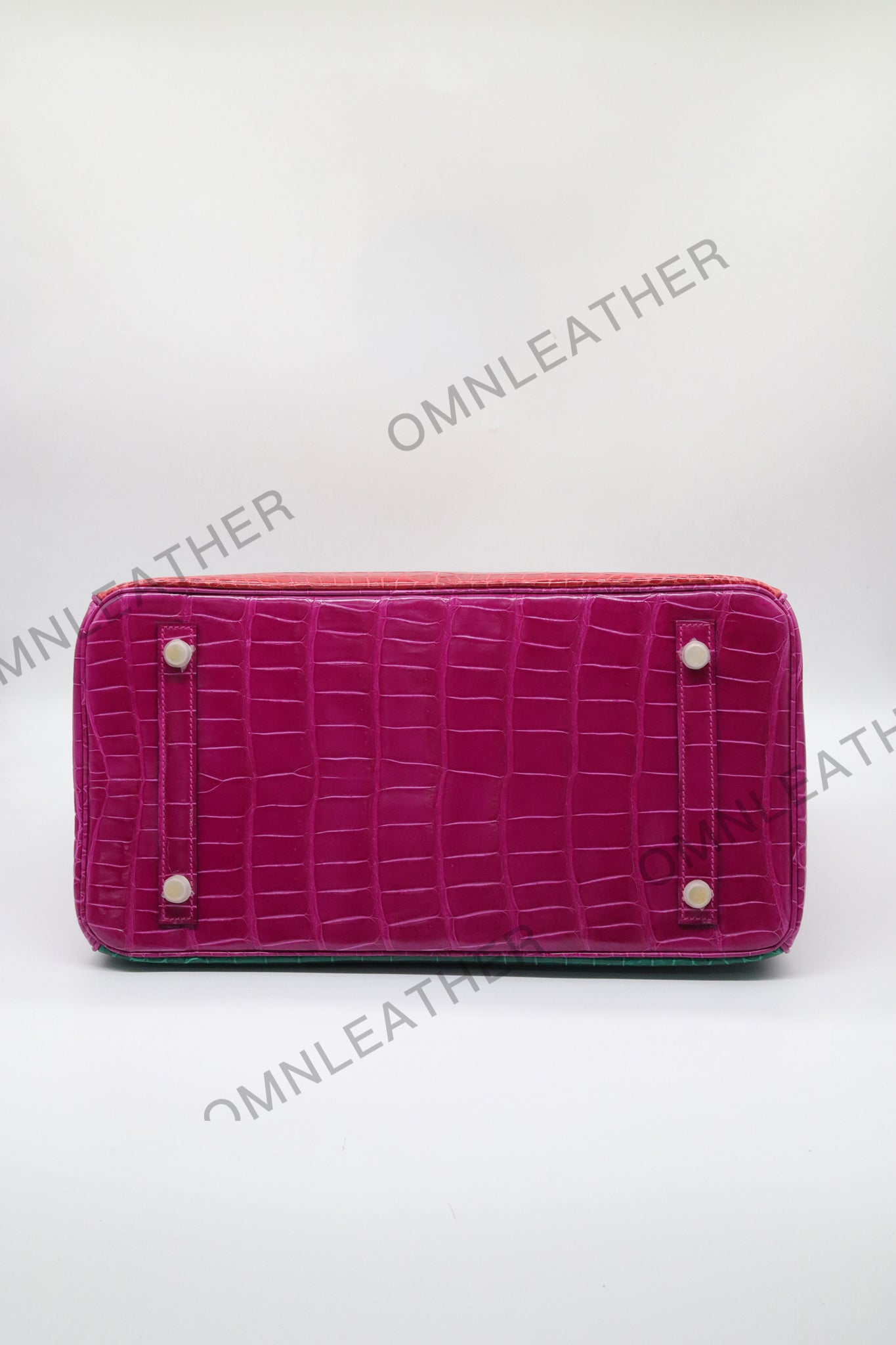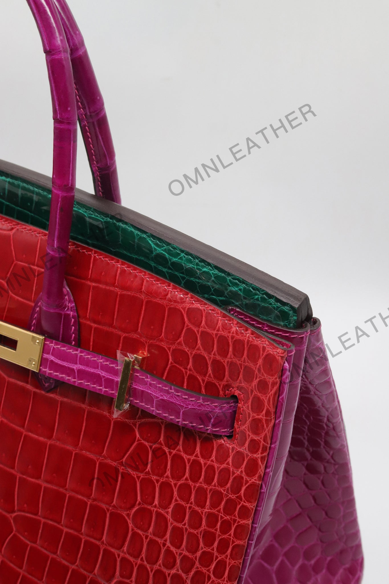London 35 Birkin Style HCP Saltwater Croc Leather Glossy Red Color Gold Hardware