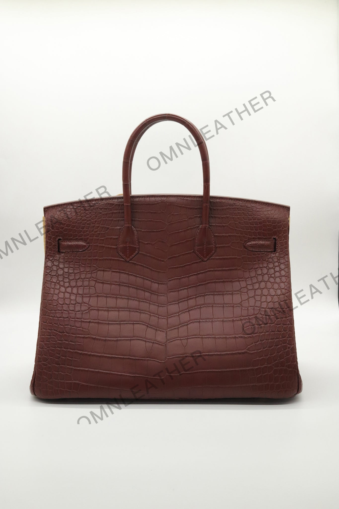 London 35 Birkin Style HCP Saltwater Croc Leather Opaque Burgundy Color Gold Hardware