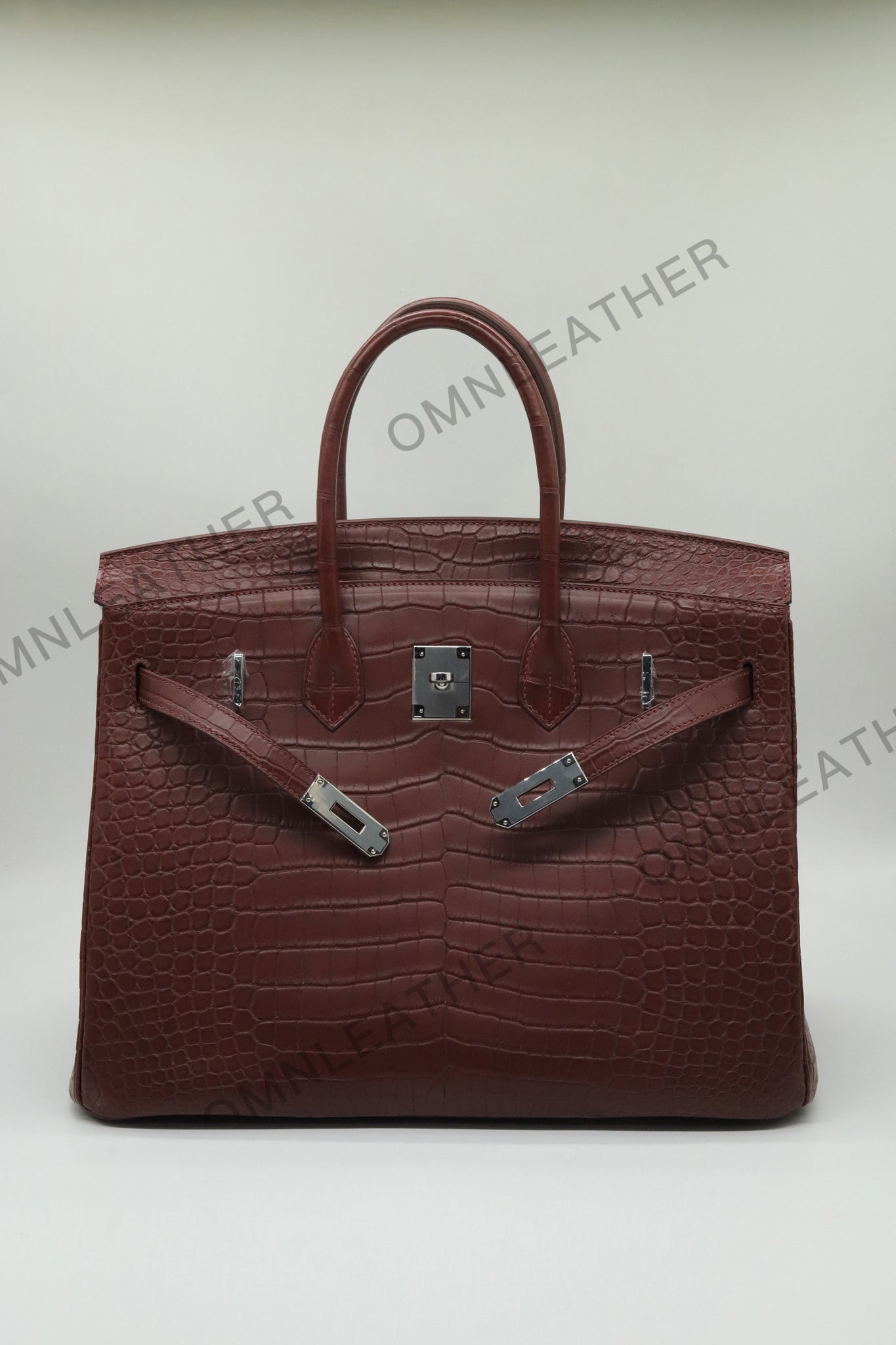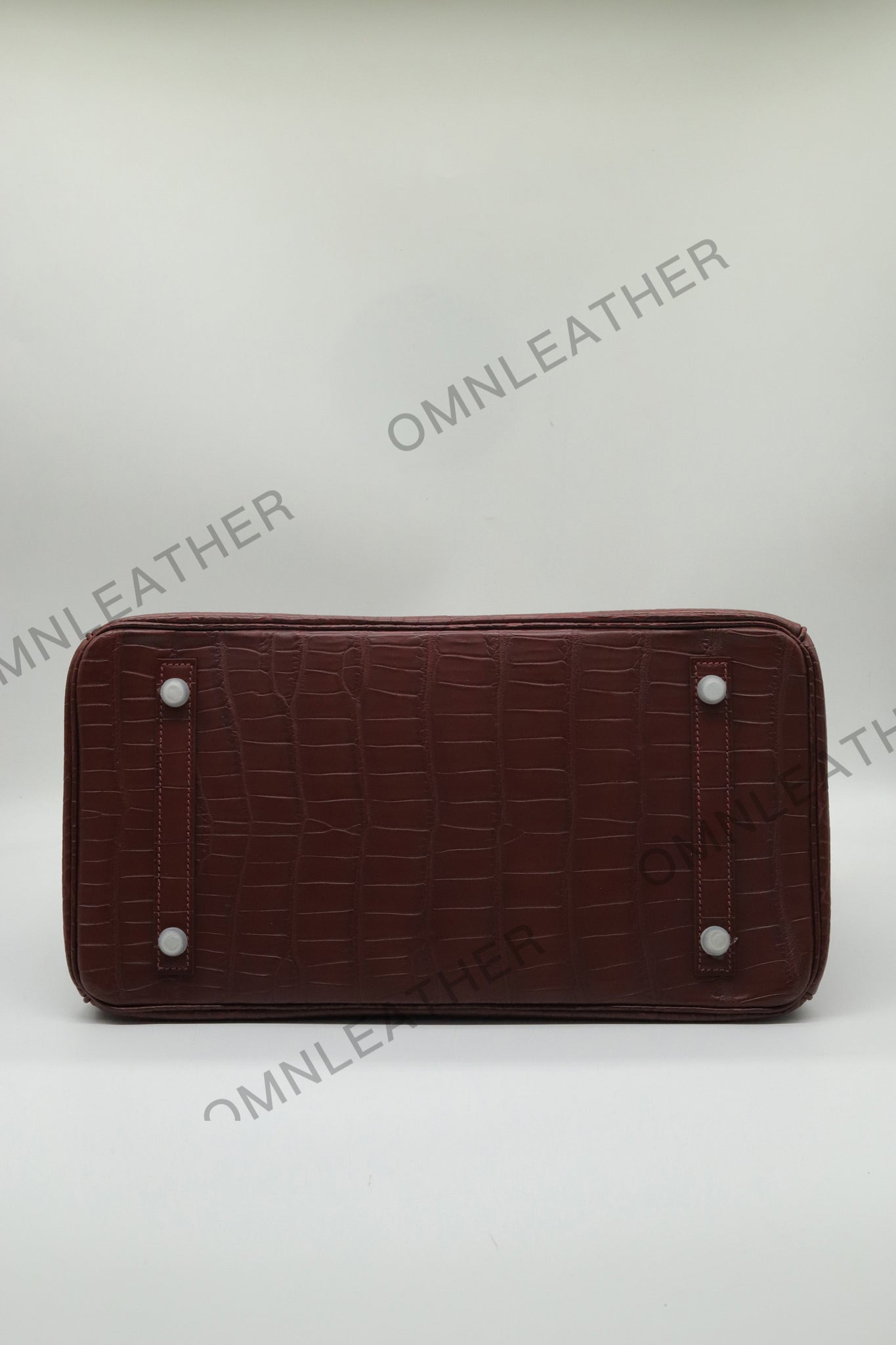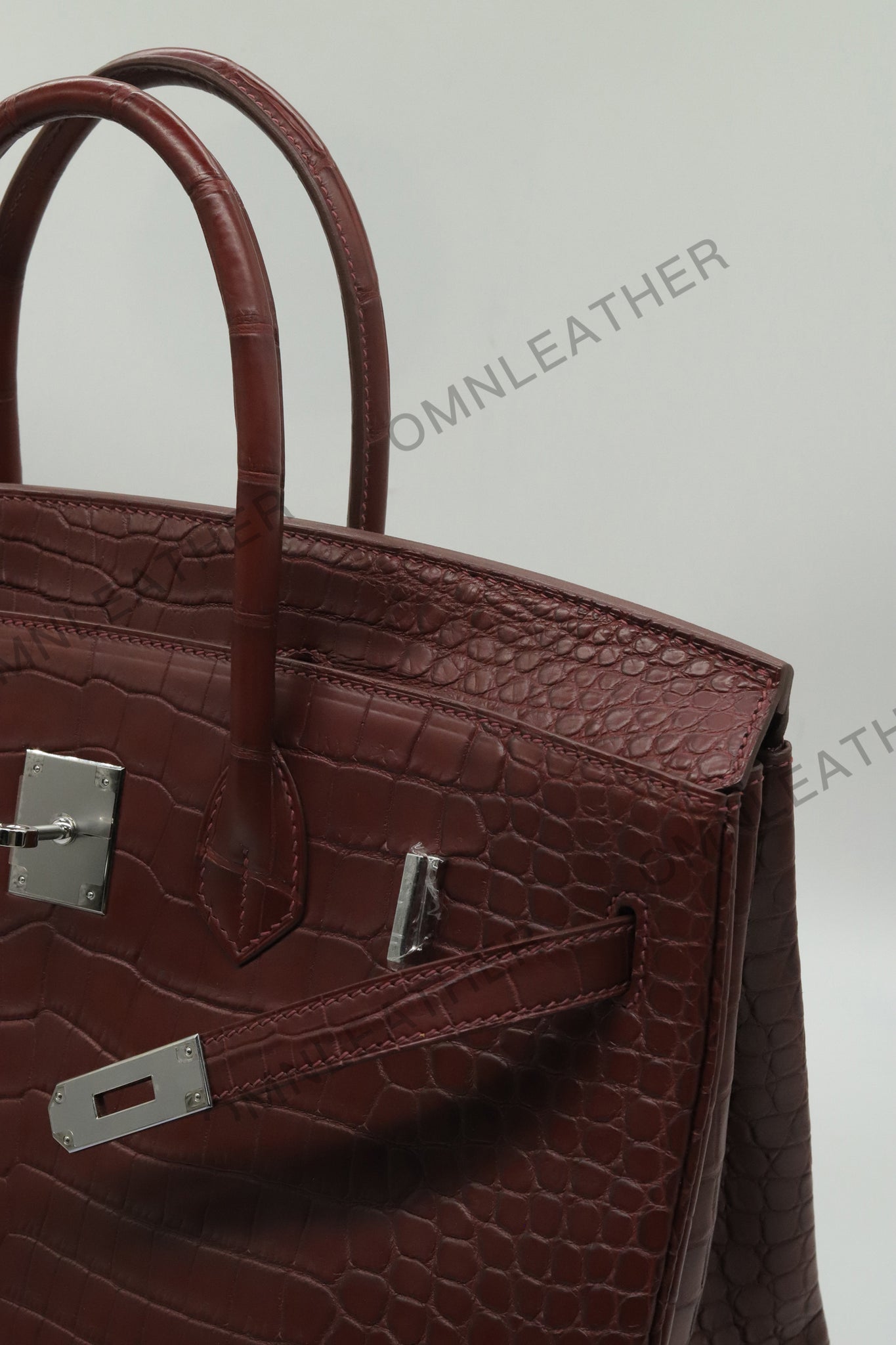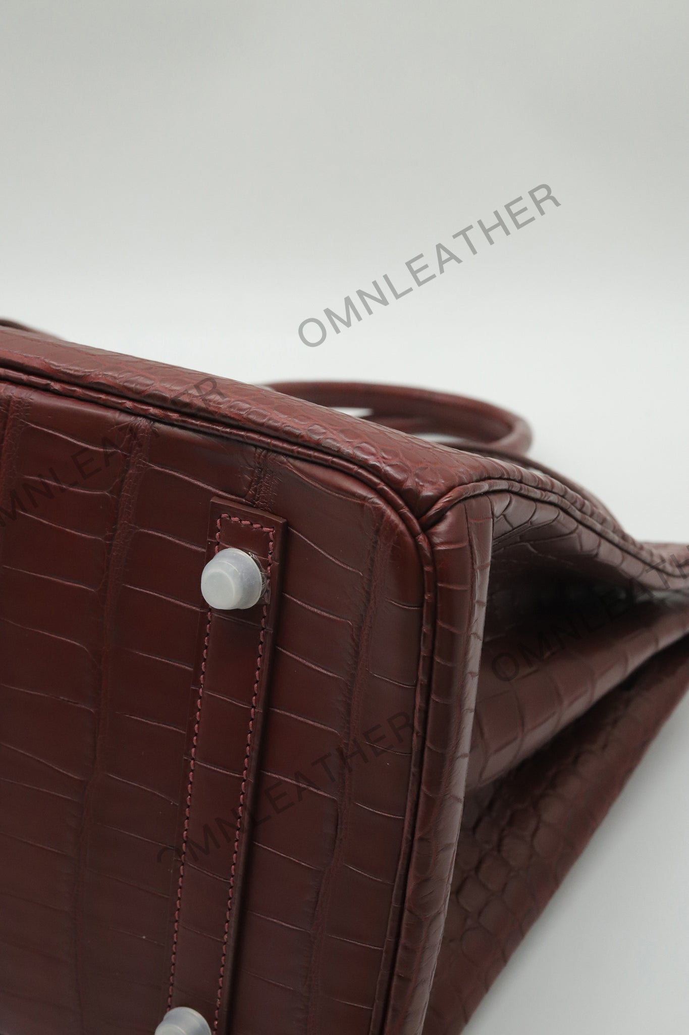 London 35 Birkin Style HCP Saltwater Croc Leather Opaque Burgundy Color Silver Hardware