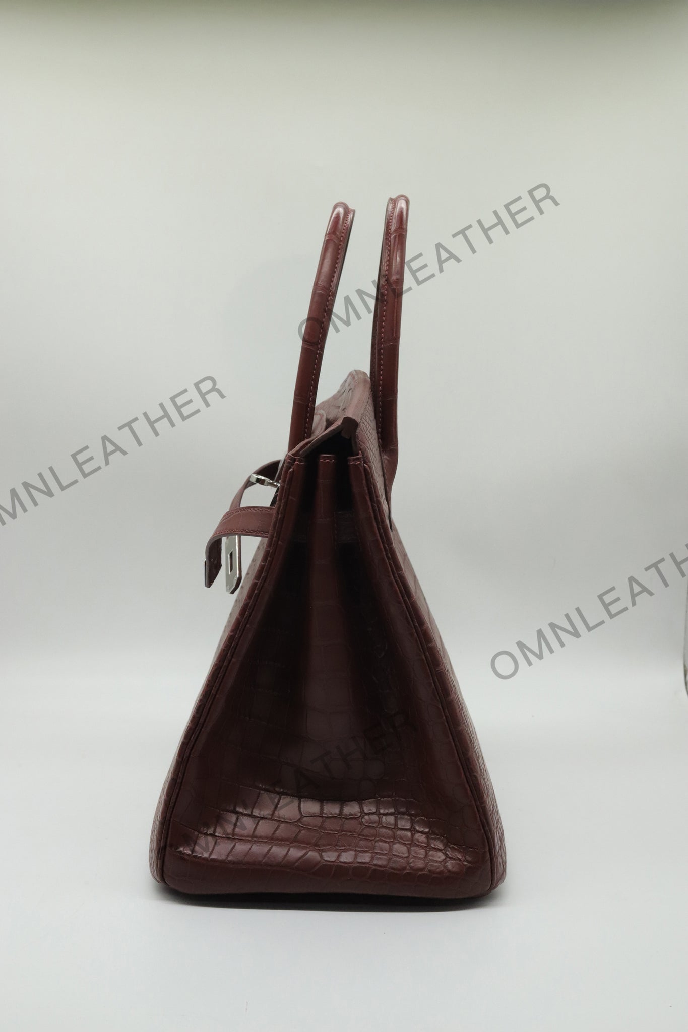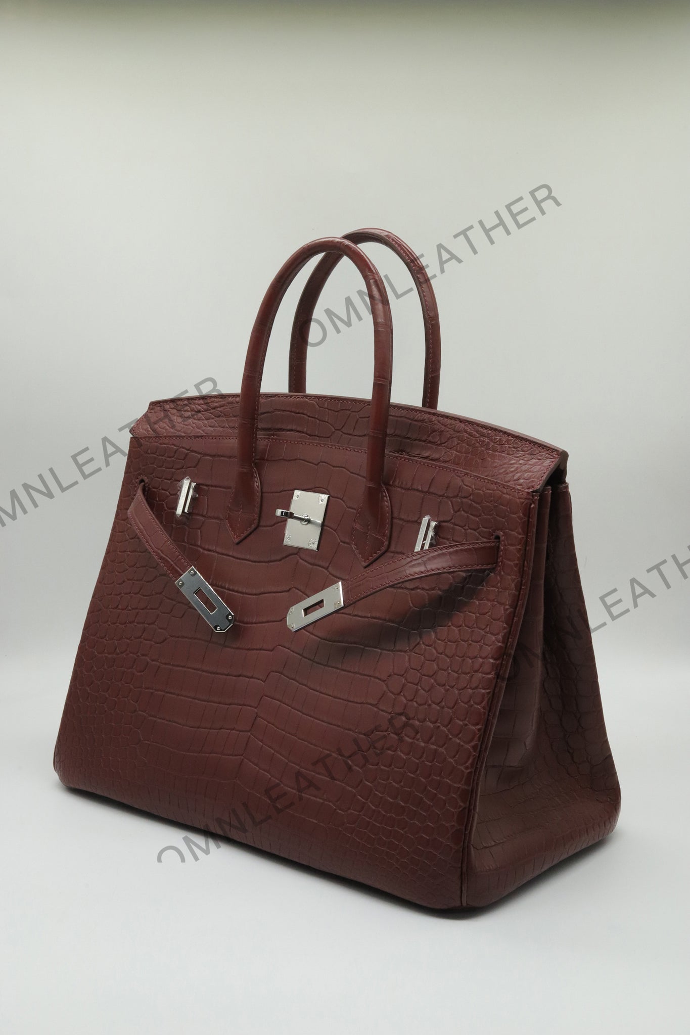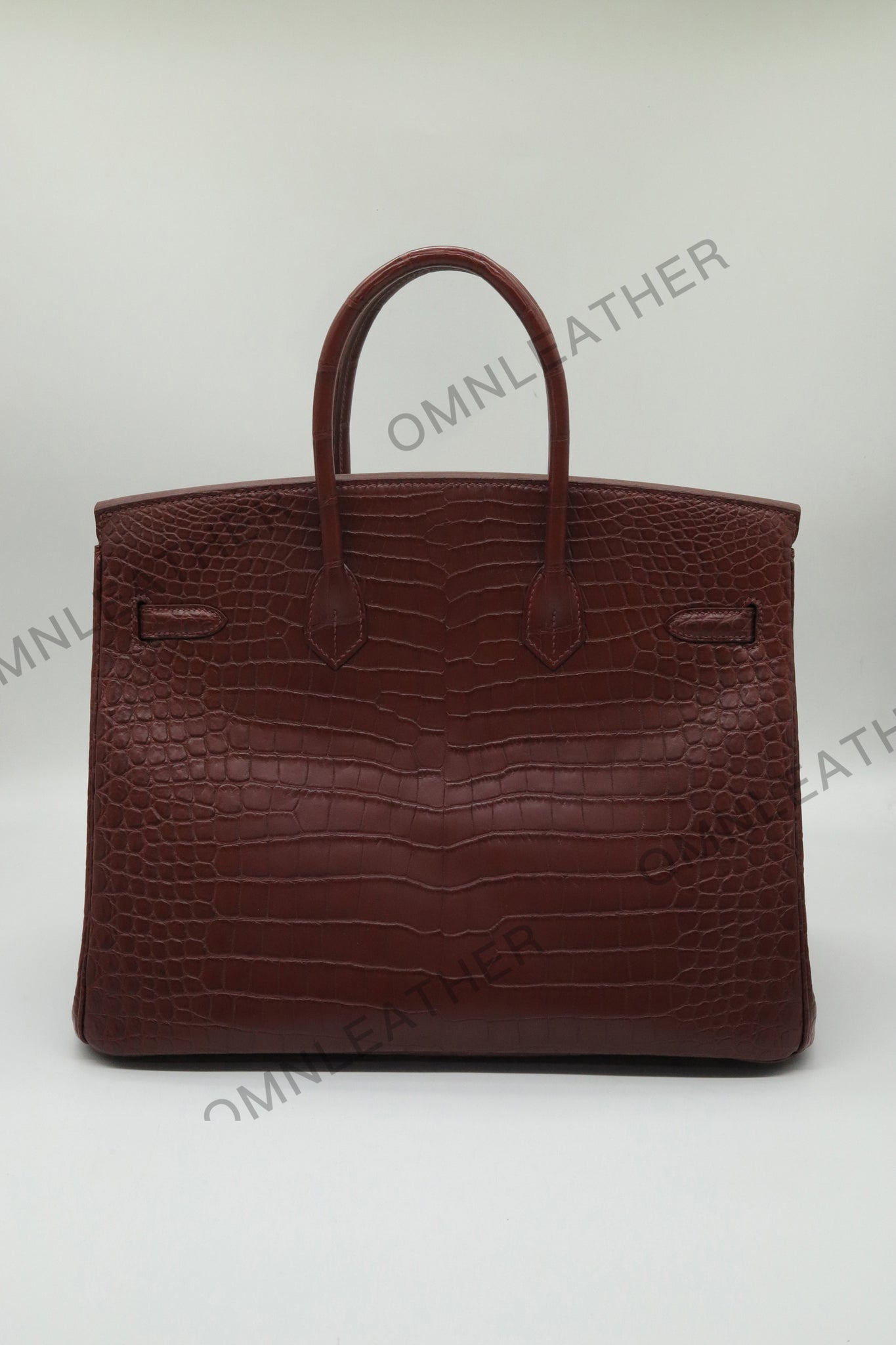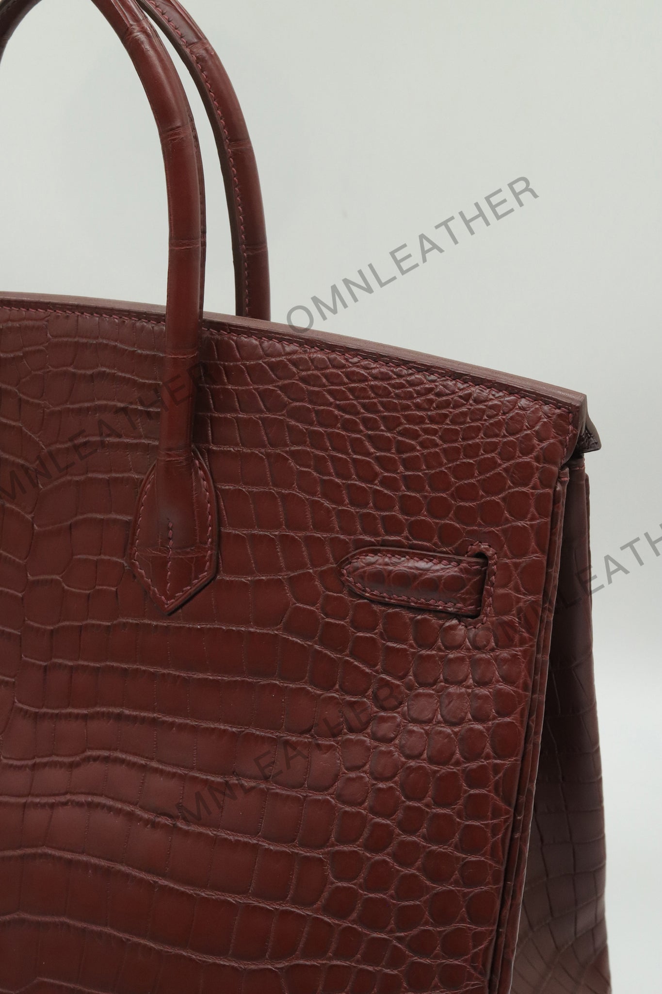 London 35 Birkin Style HCP Saltwater Croc Leather Opaque Burgundy Color Silver Hardware