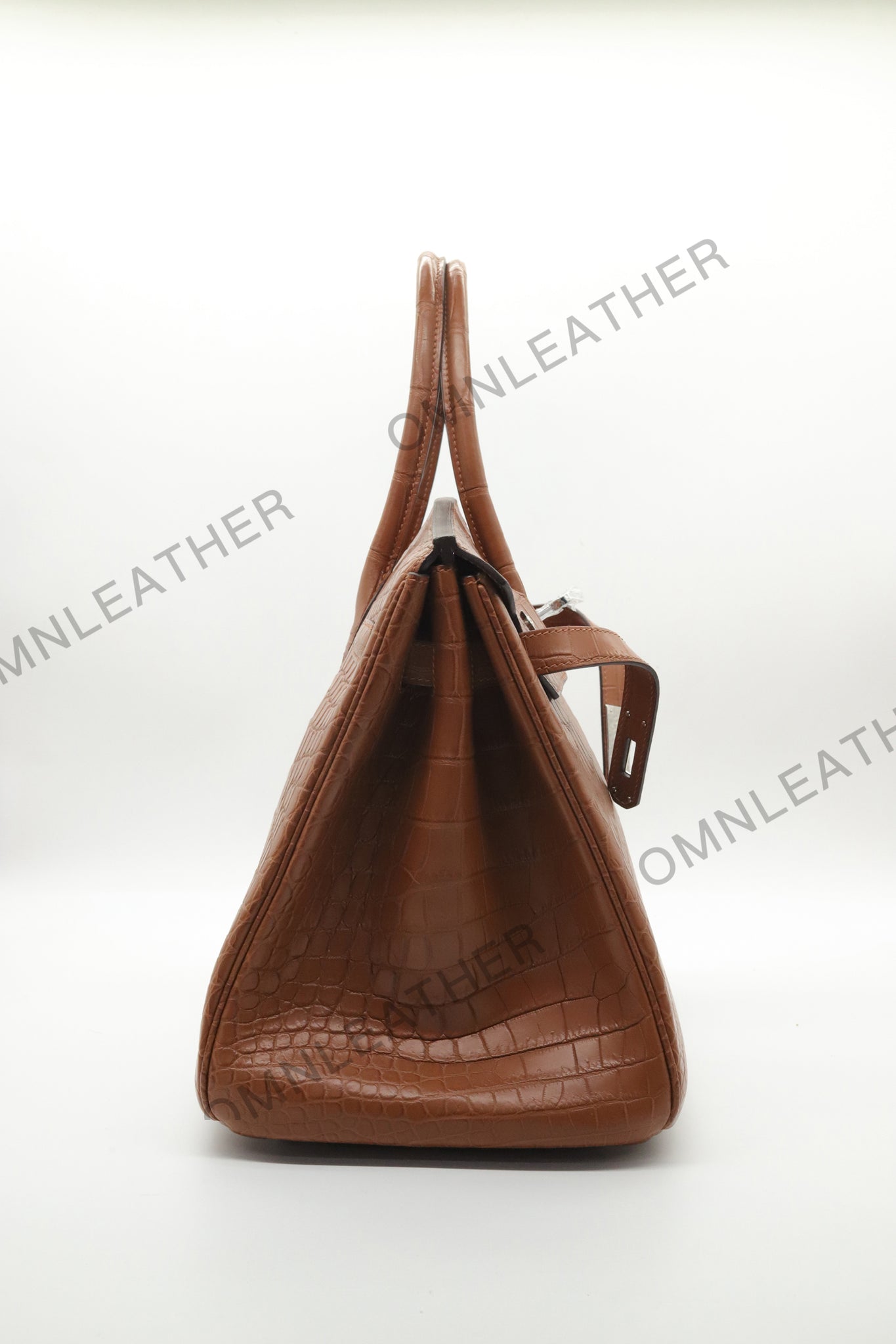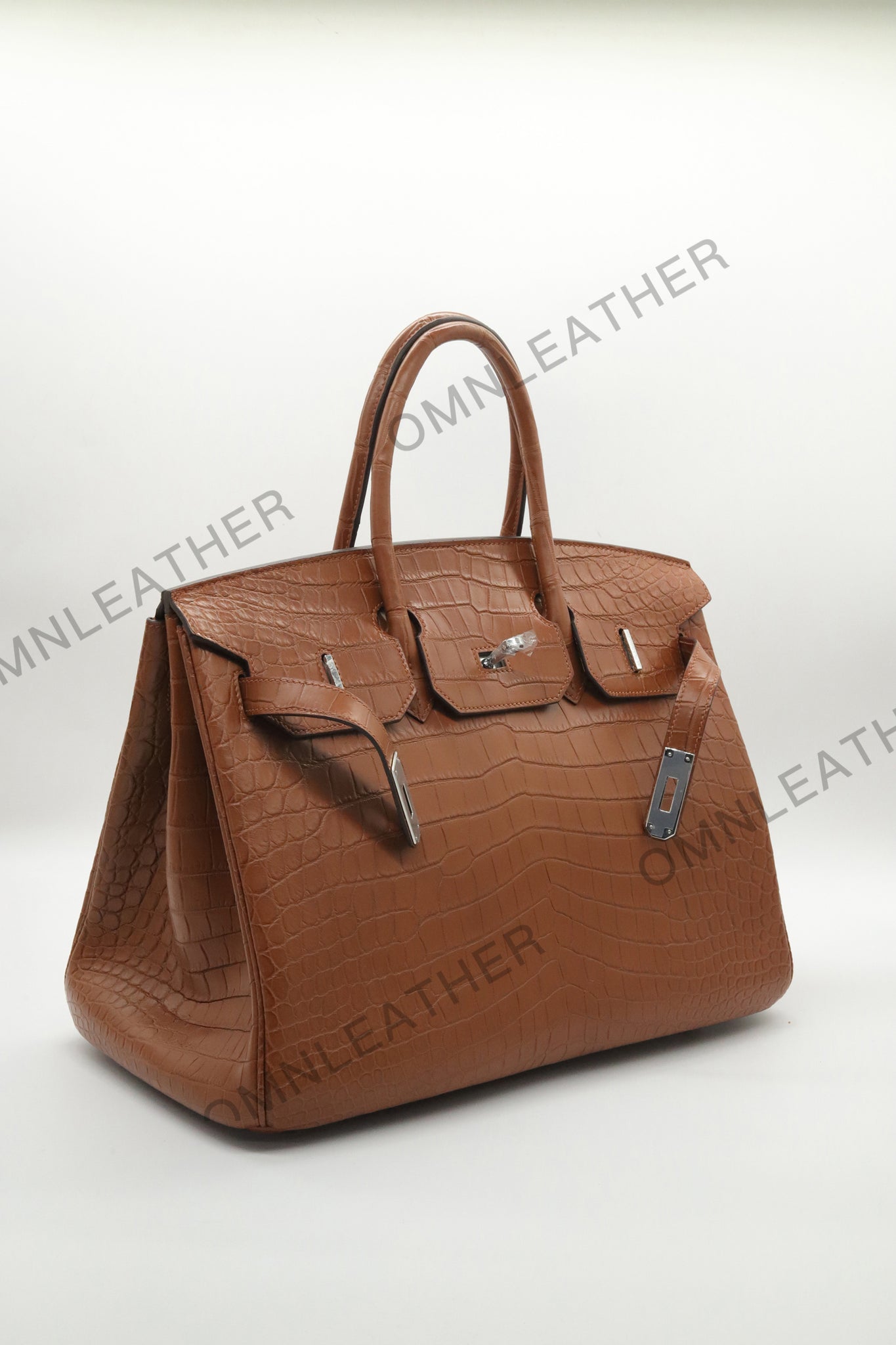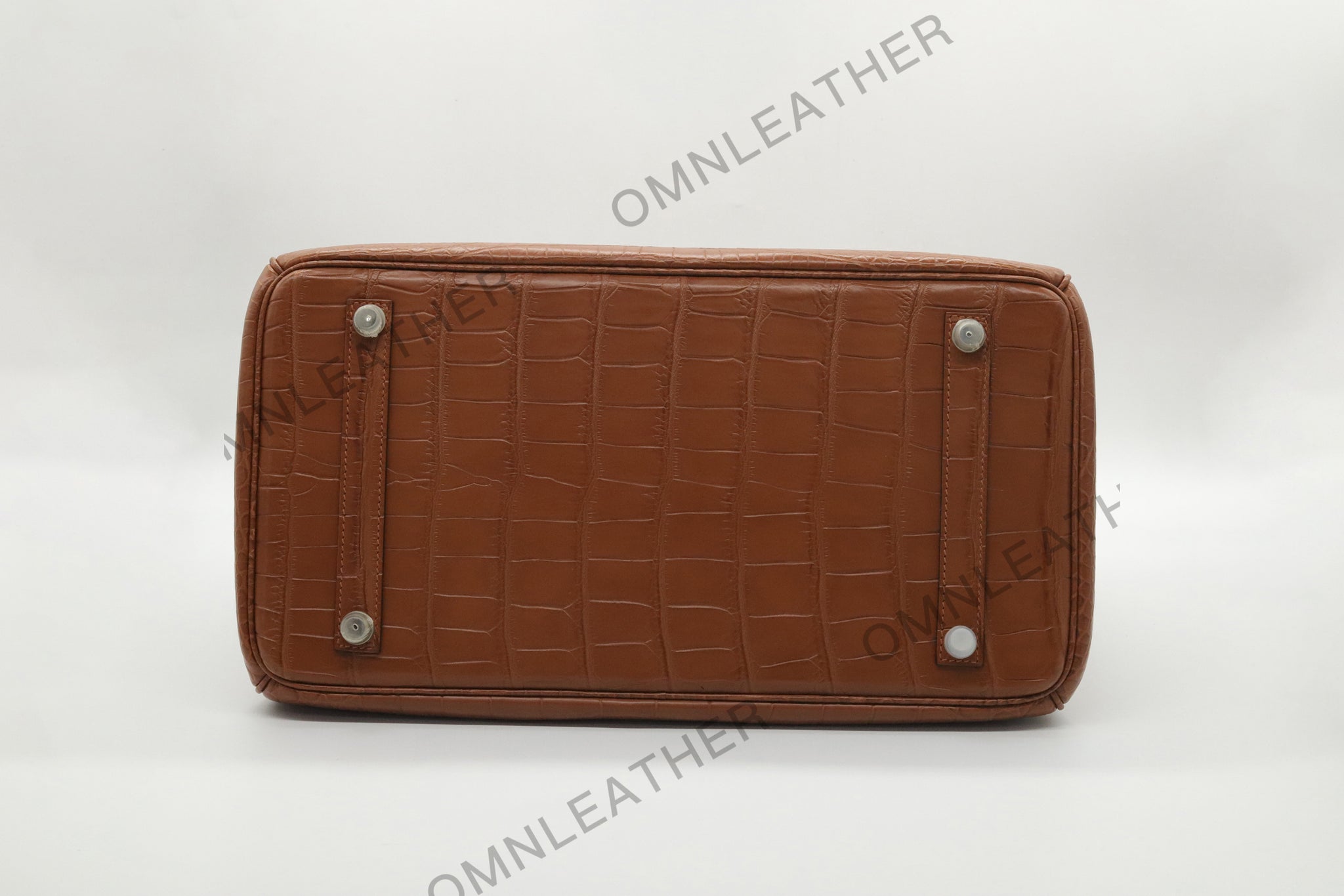 London 35 Birkin Style Saltwater Croc Leather Opaque Brown Color Silver Hardware