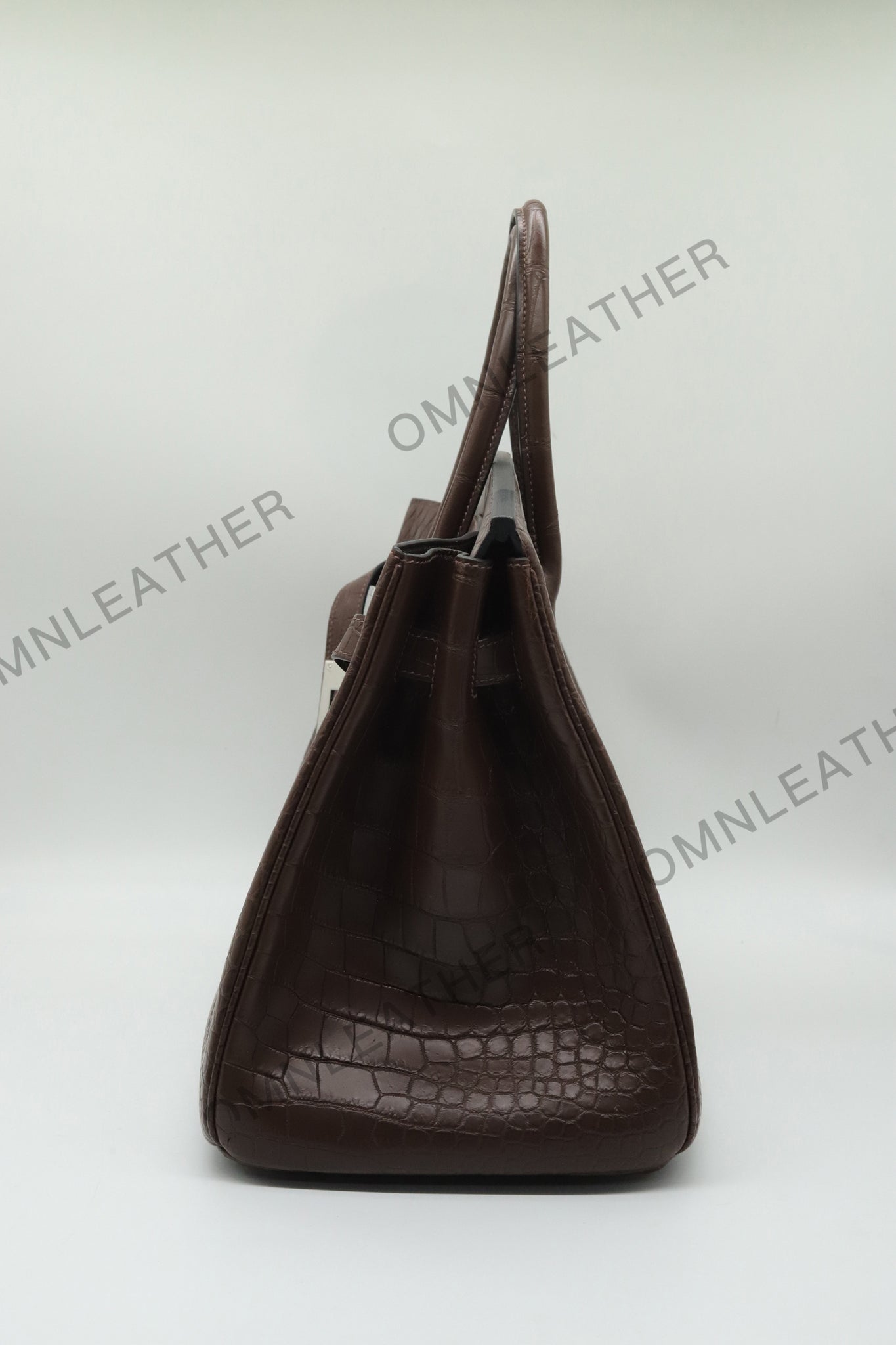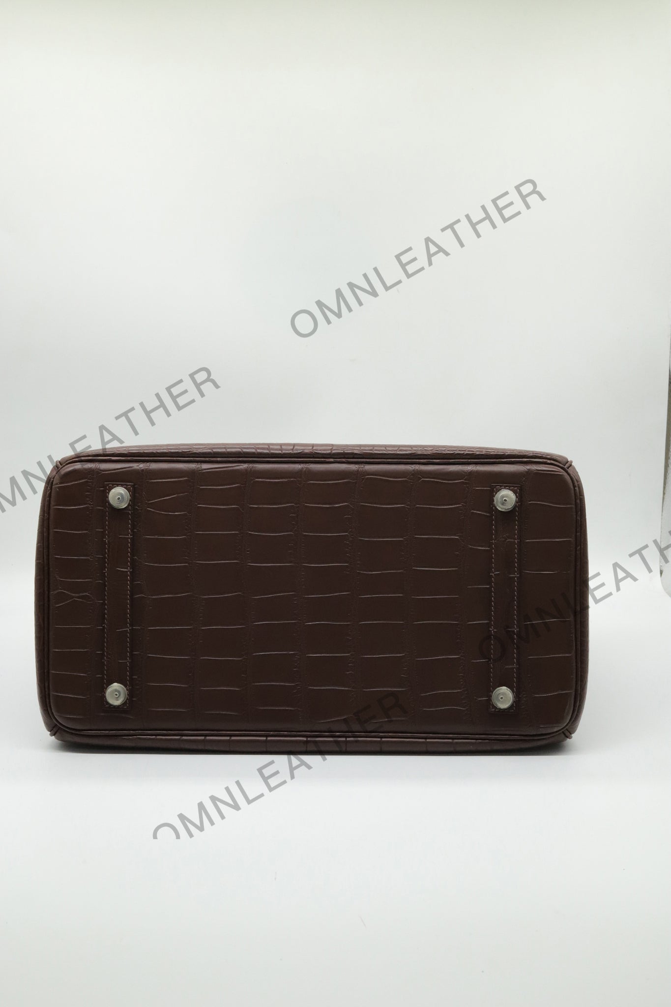 London 35 Birkin Style Saltwater Croc Leather Opaque Ebony Color Silver Hardware