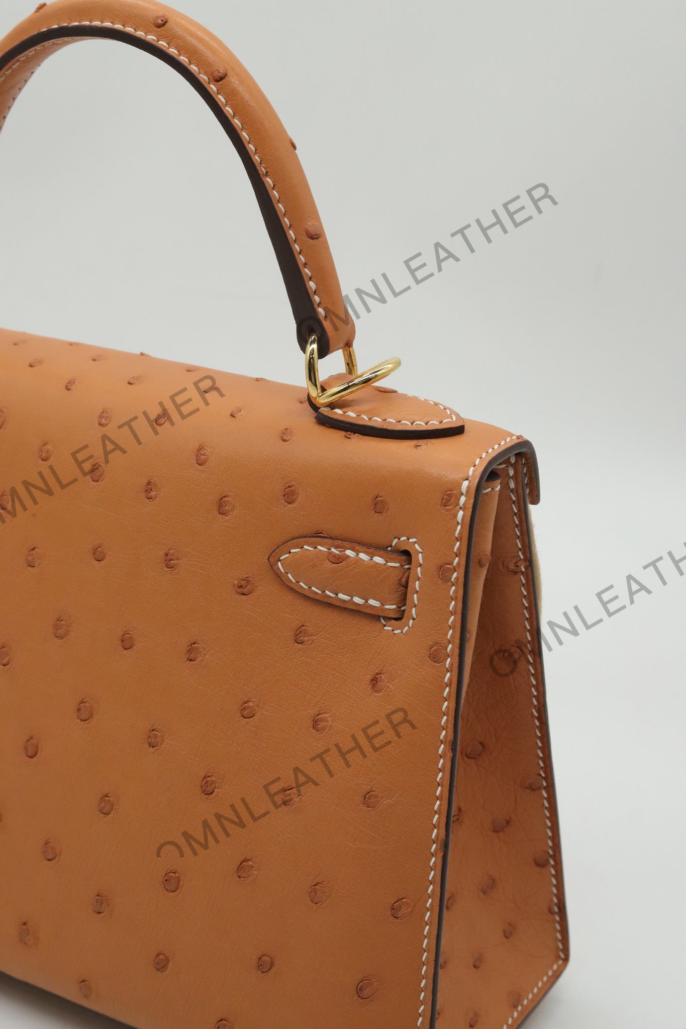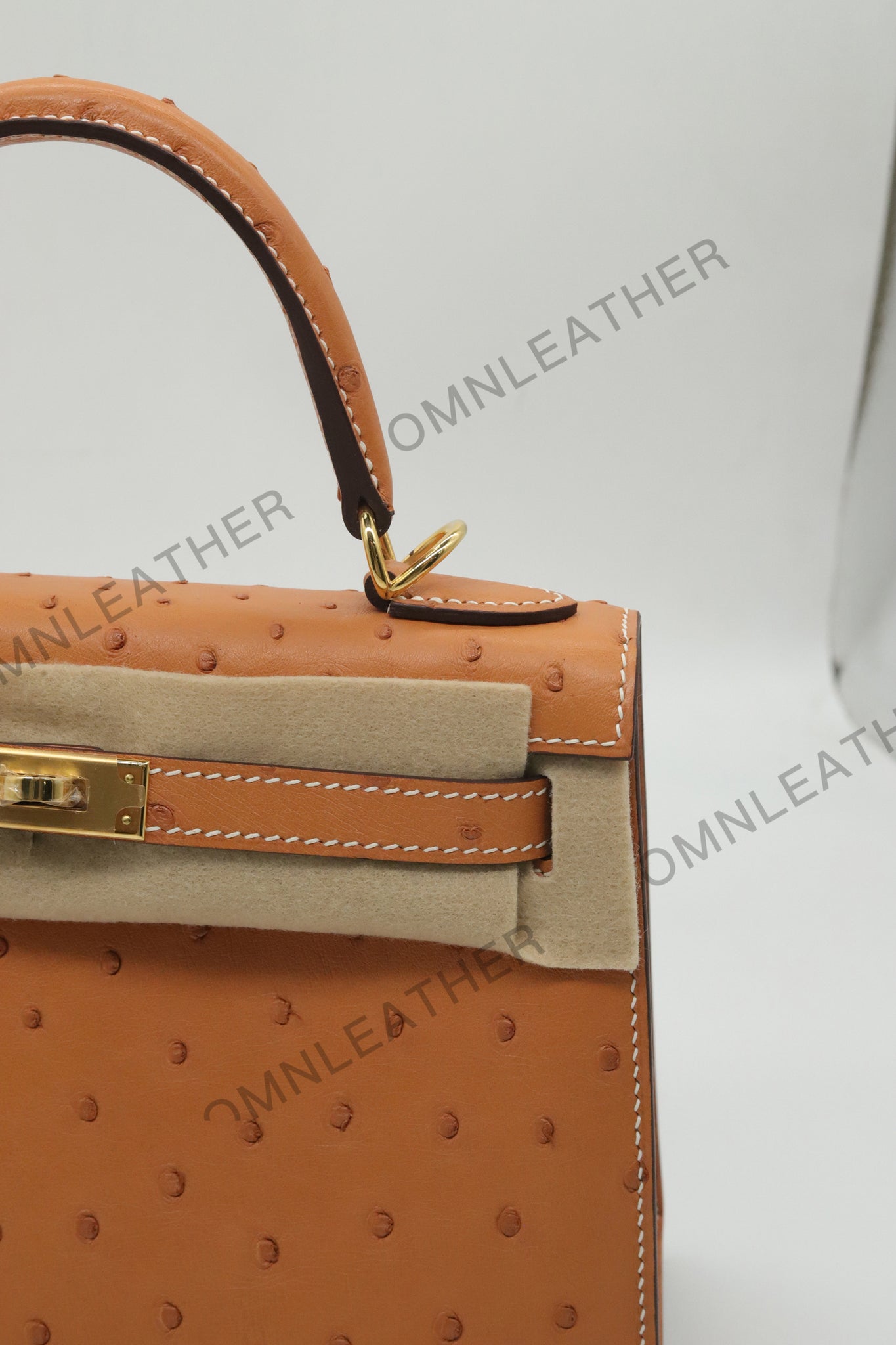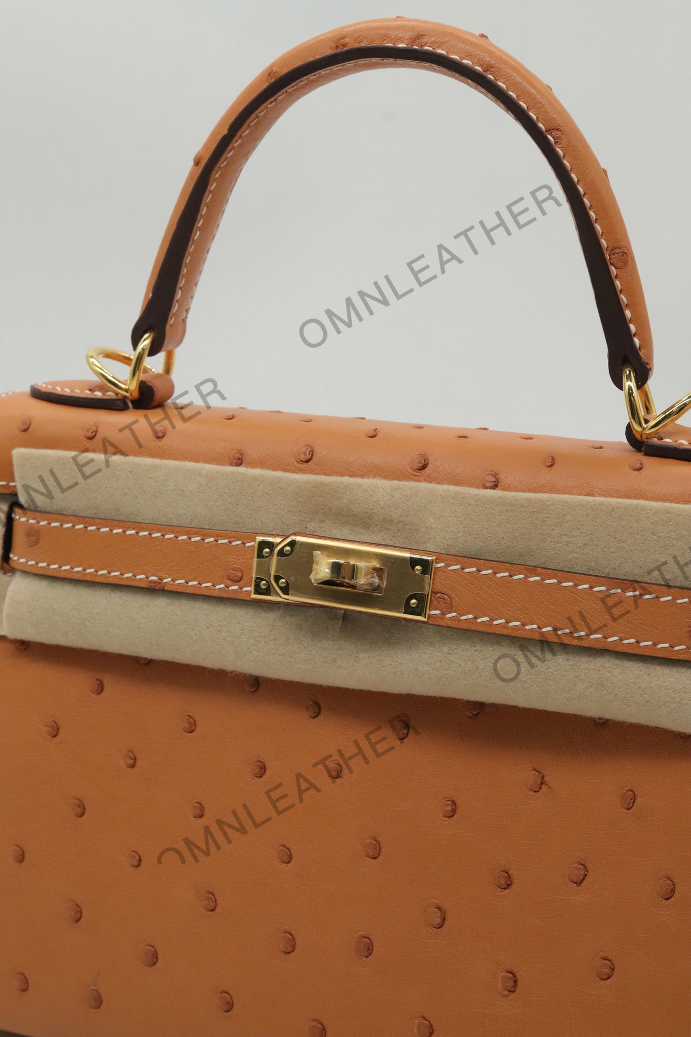 Verona 22 Kelly Style Ostrich Leather Brown Color Gold Hardware