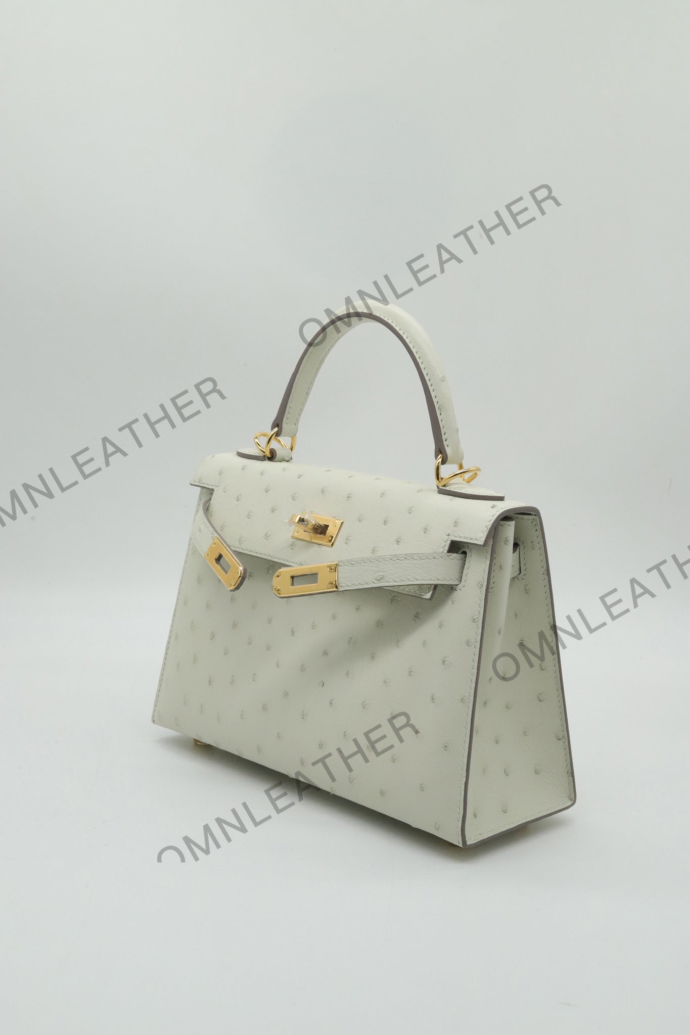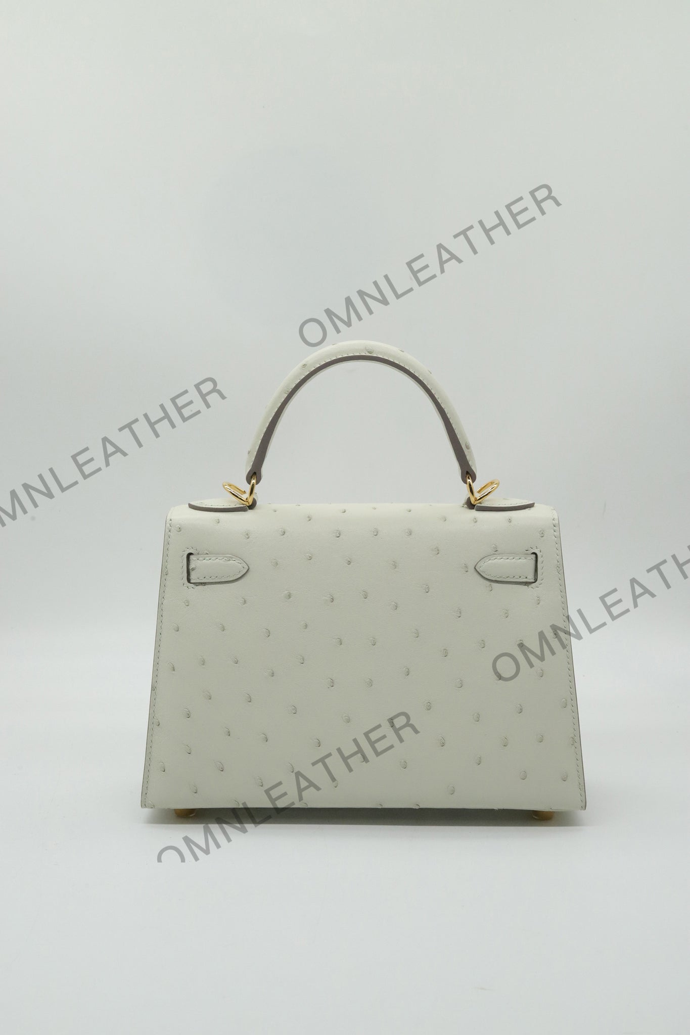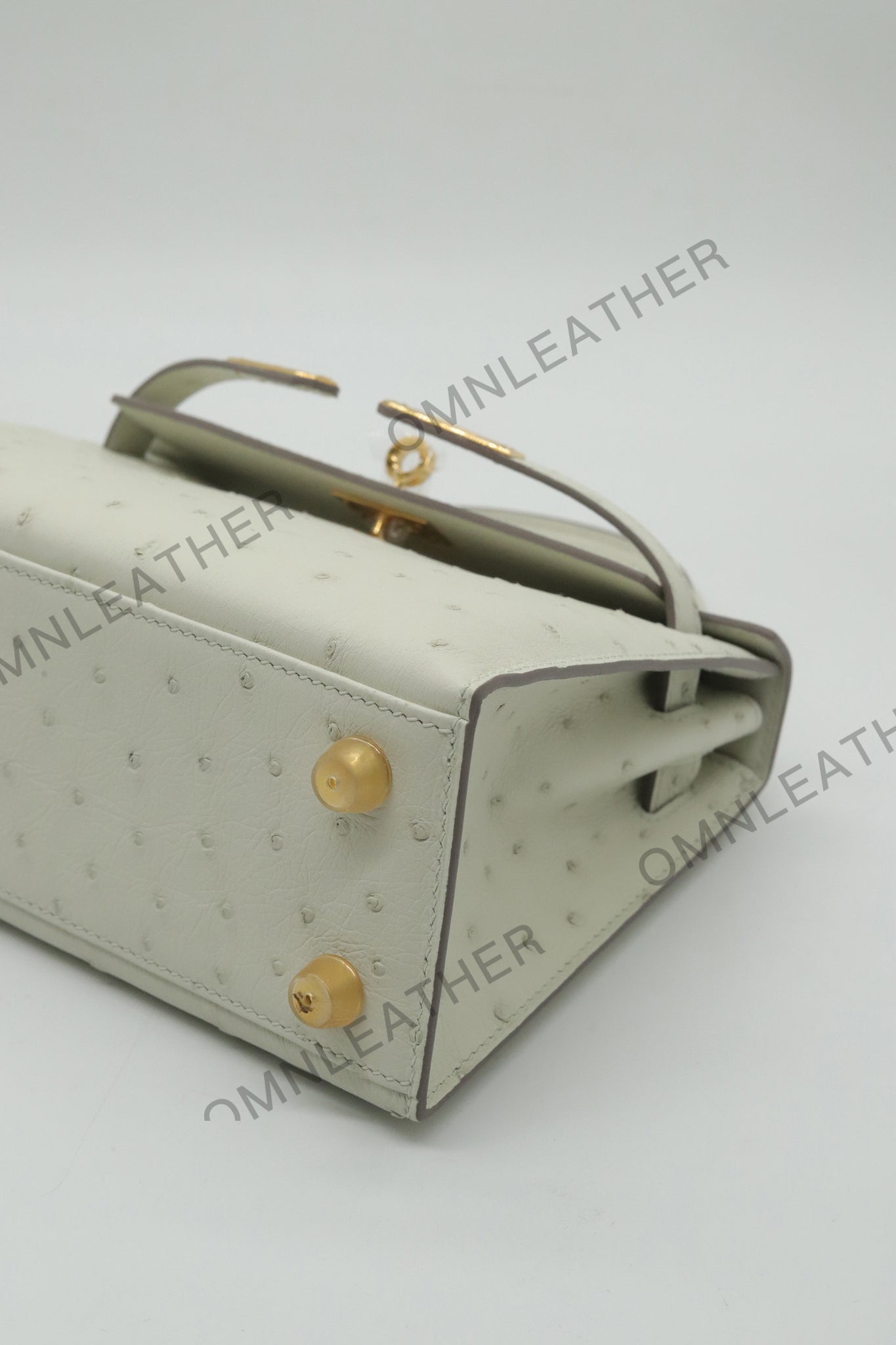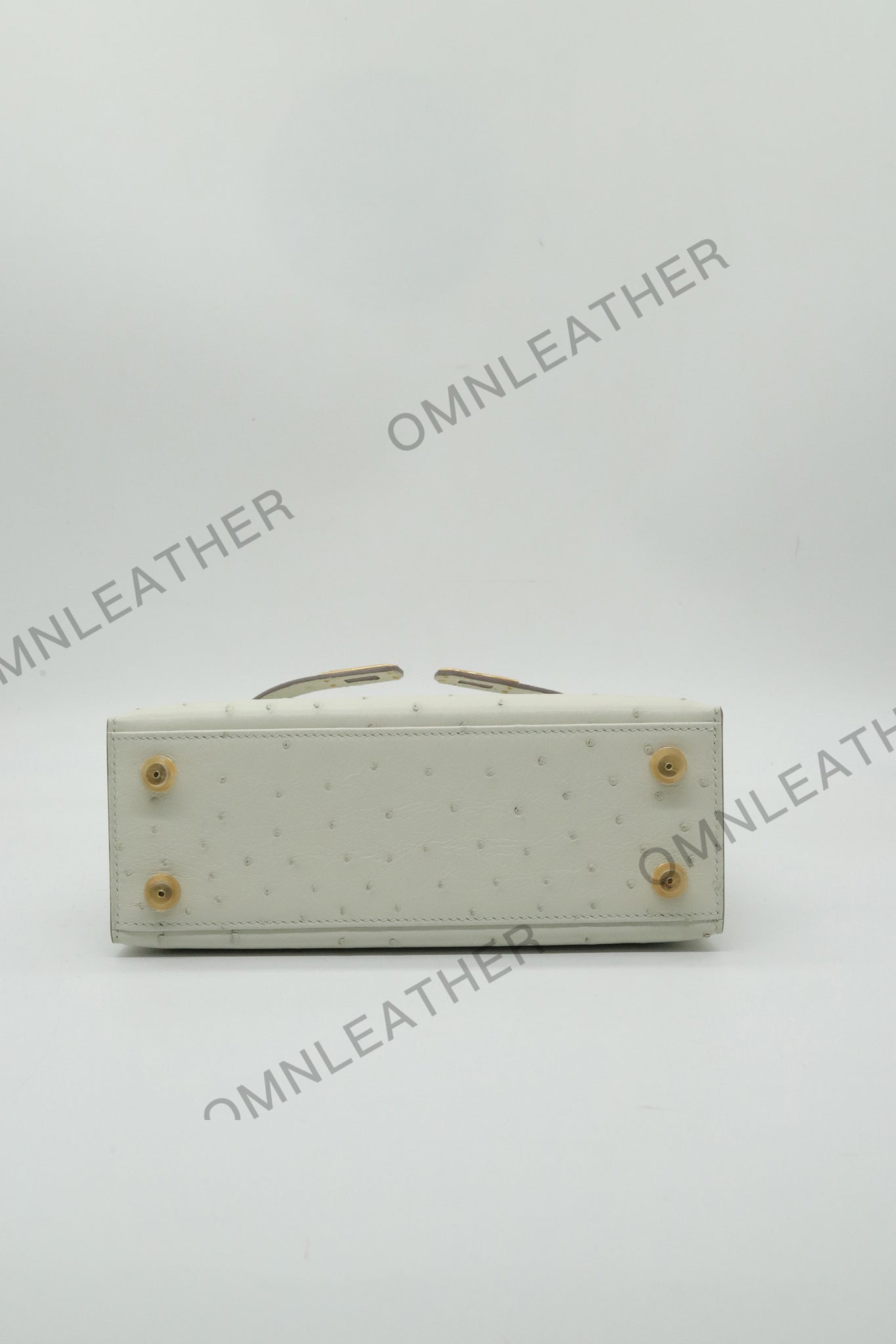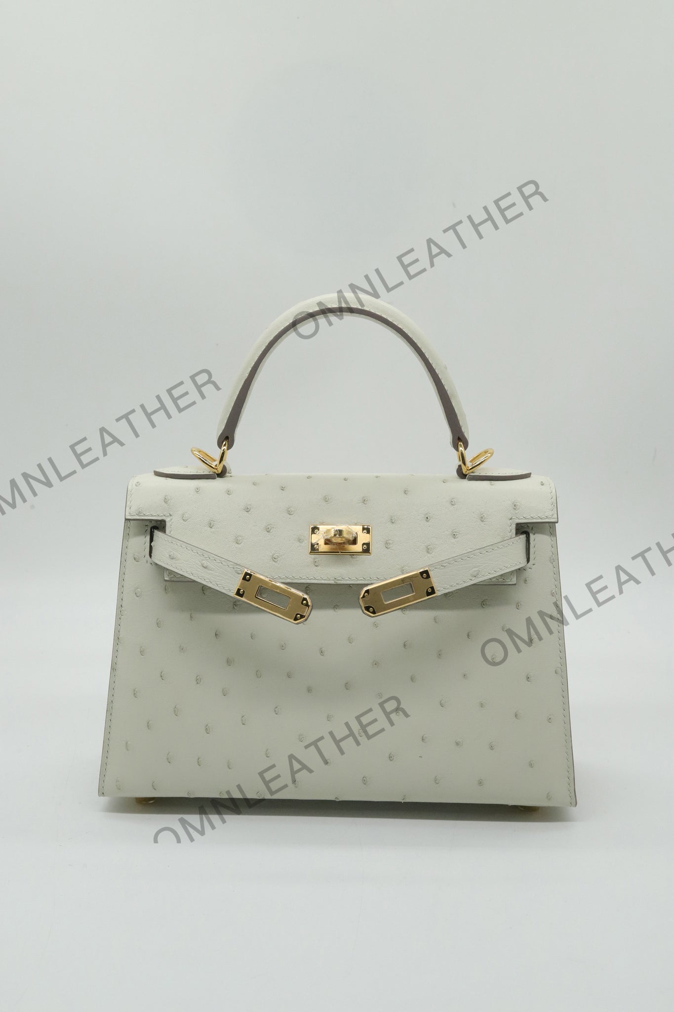 Verona 22 Kelly Style Ostrich Leather Cream Color Gold Hardware