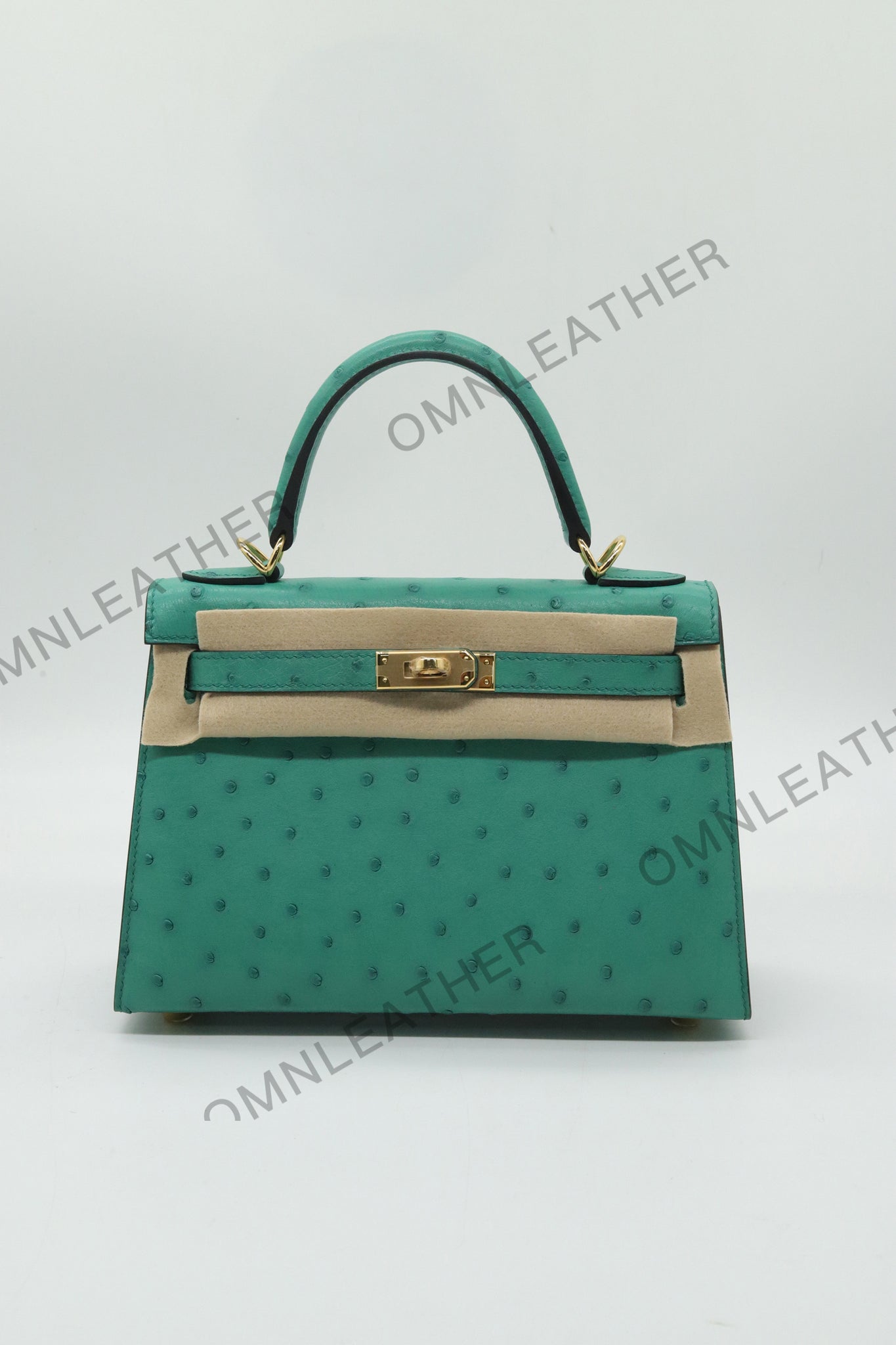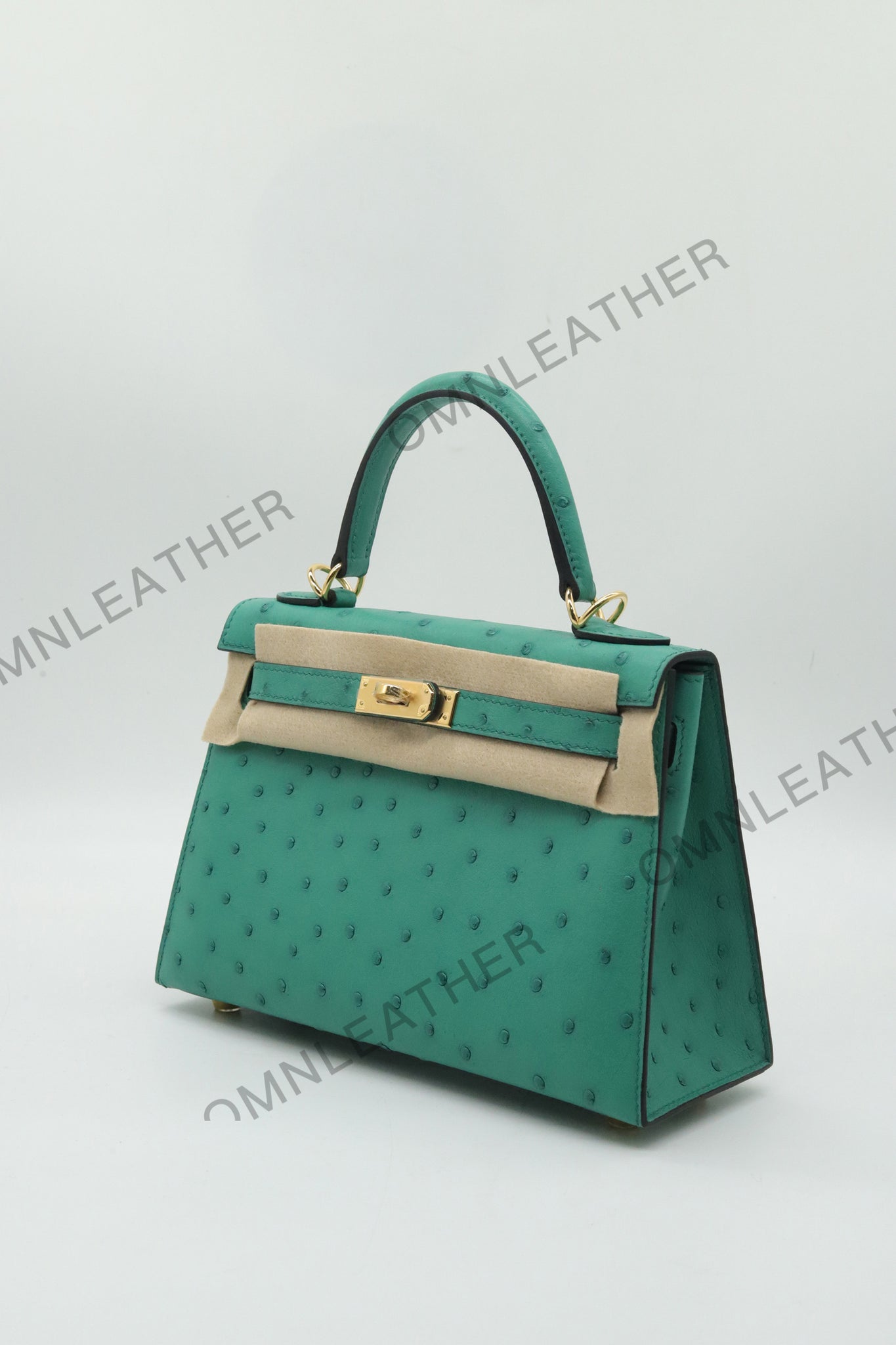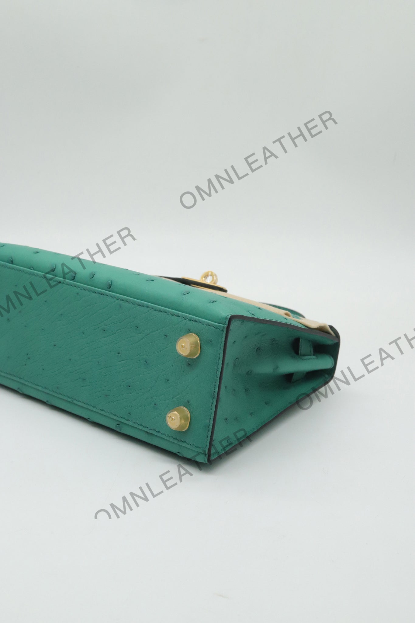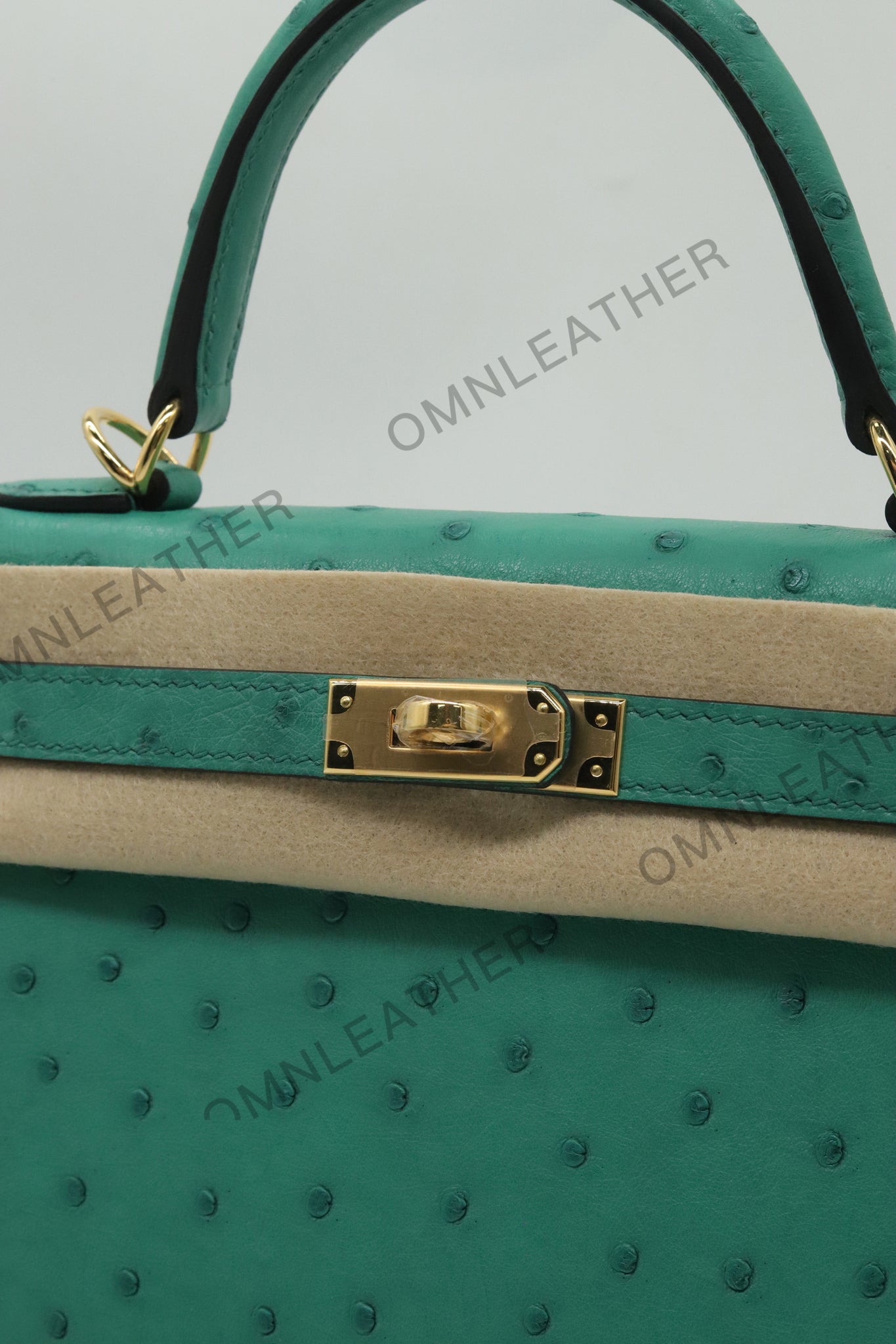 Verona 22 Kelly Style Ostrich Leather Green Color Gold Hardware