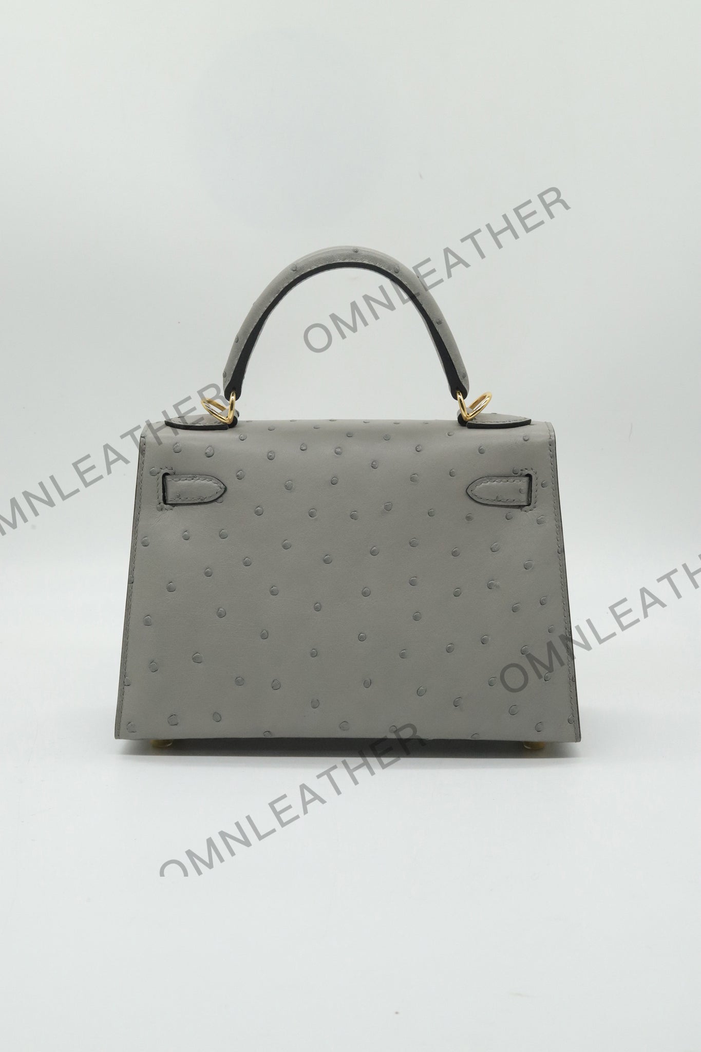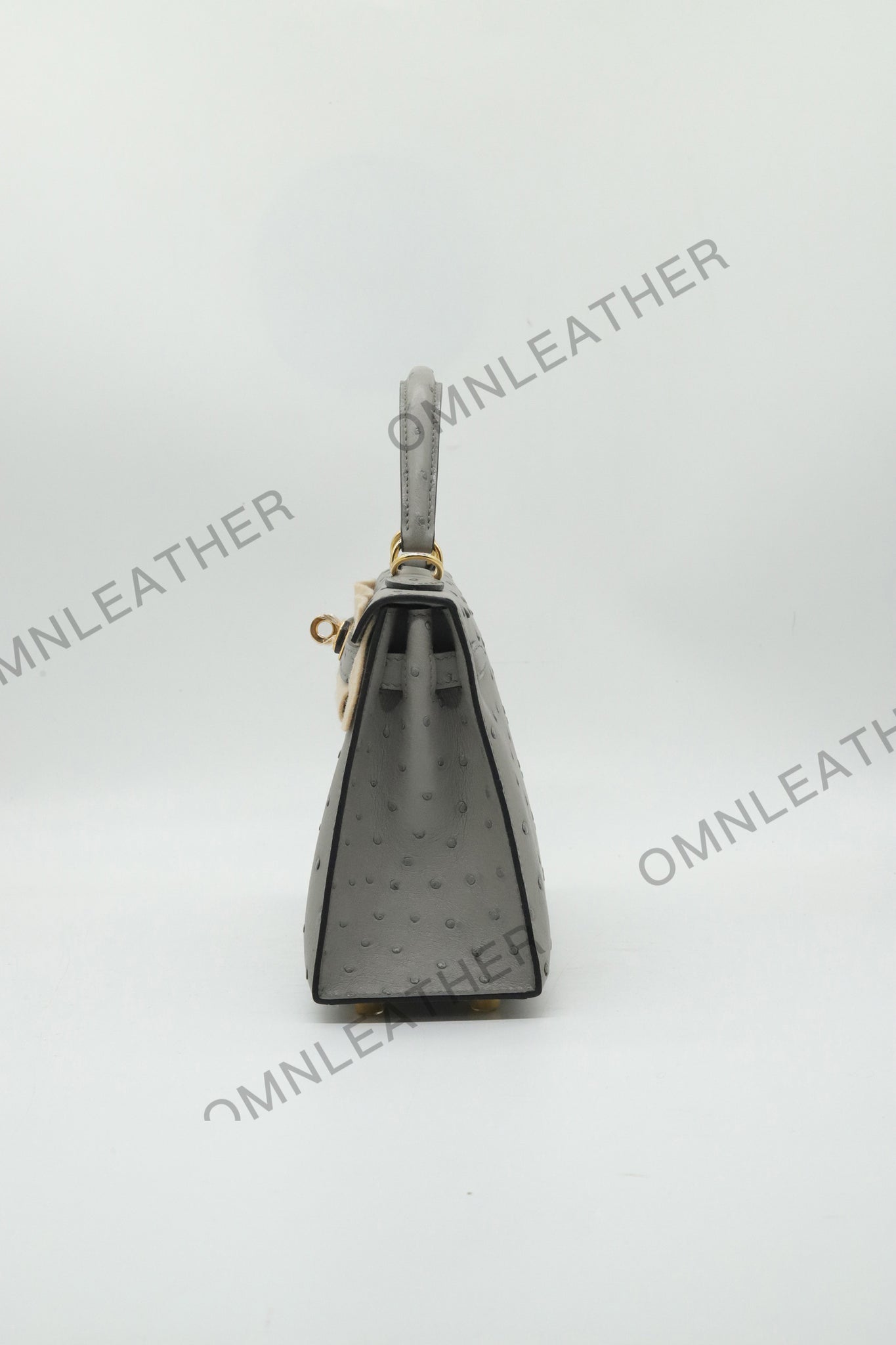 Verona 22 Kelly Style Ostrich Leather Grey Color Gold Hardware