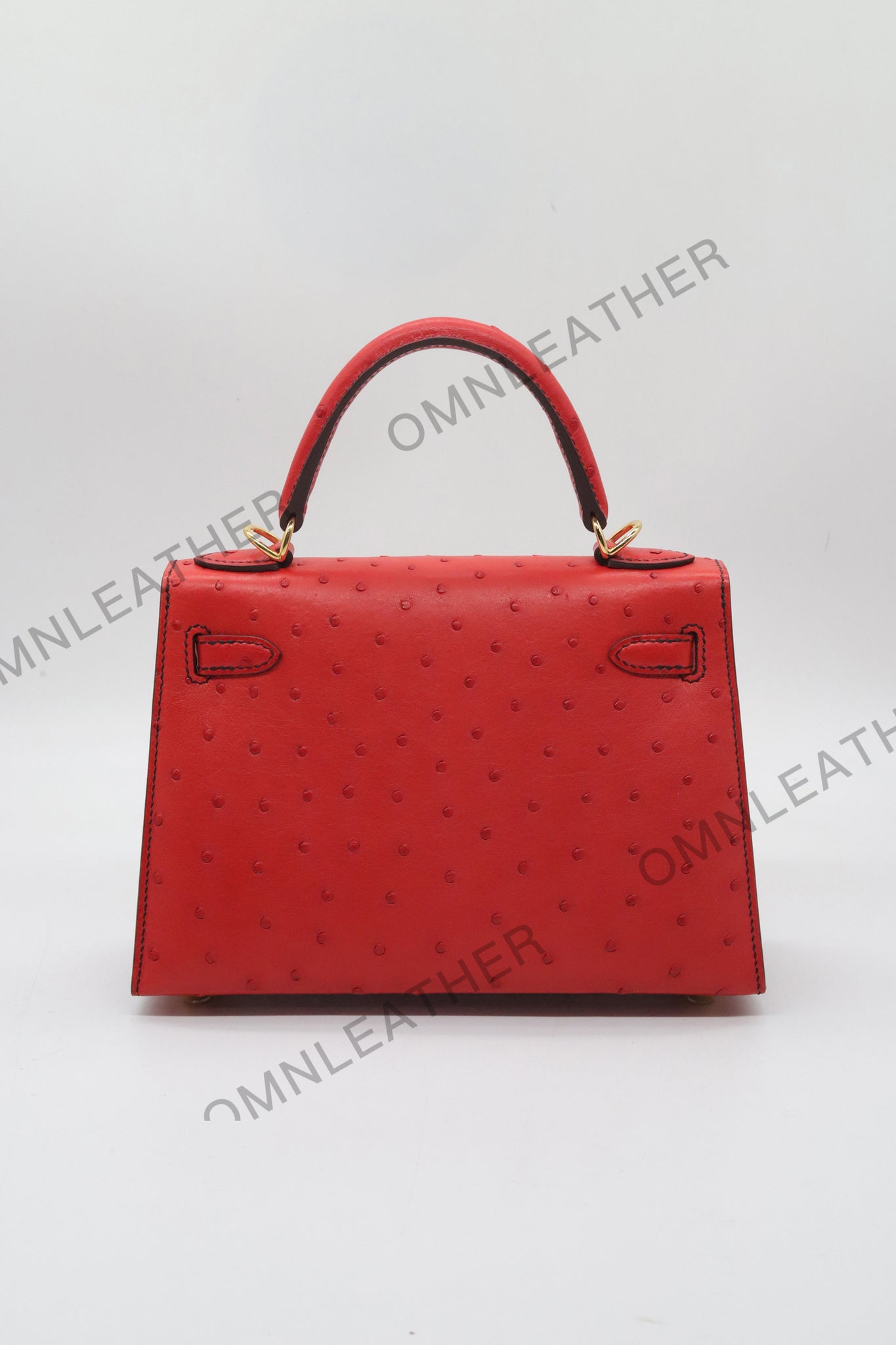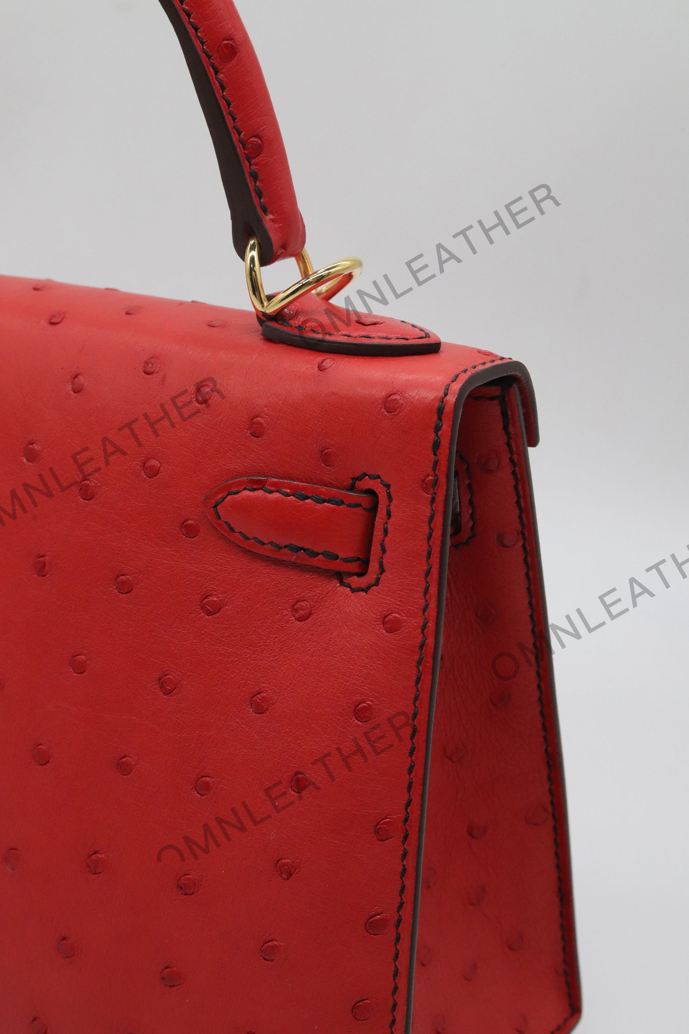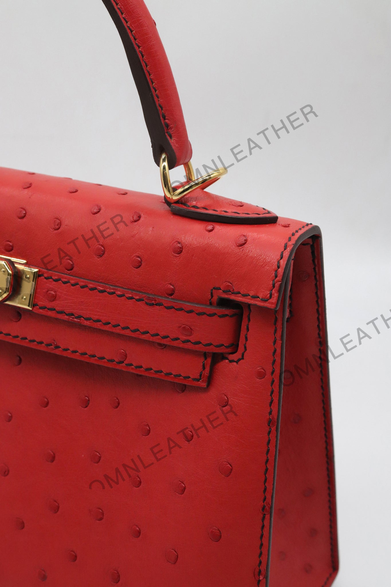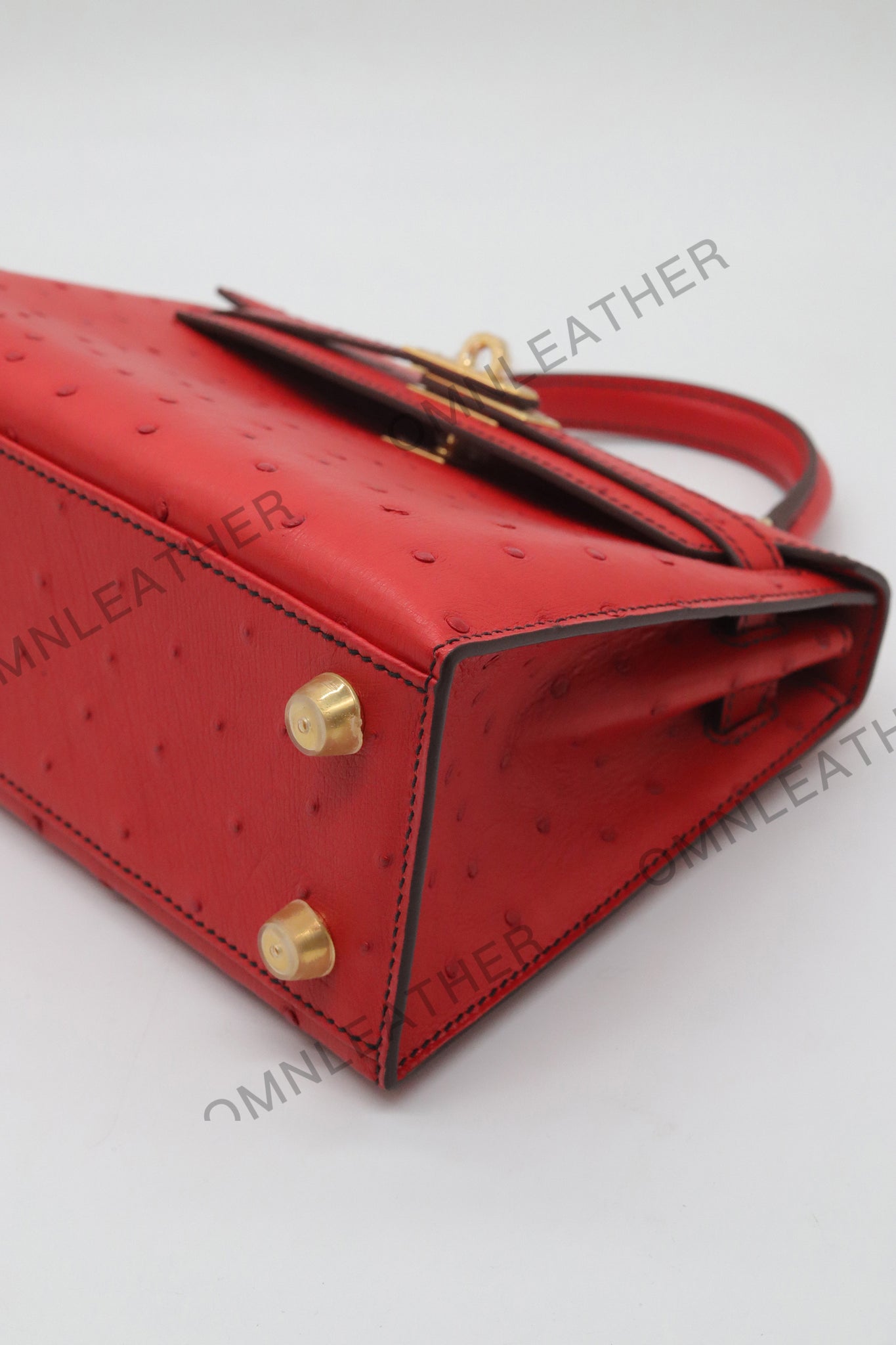 Verona 22 Kelly Style Ostrich Leather Red Color Gold Hardware